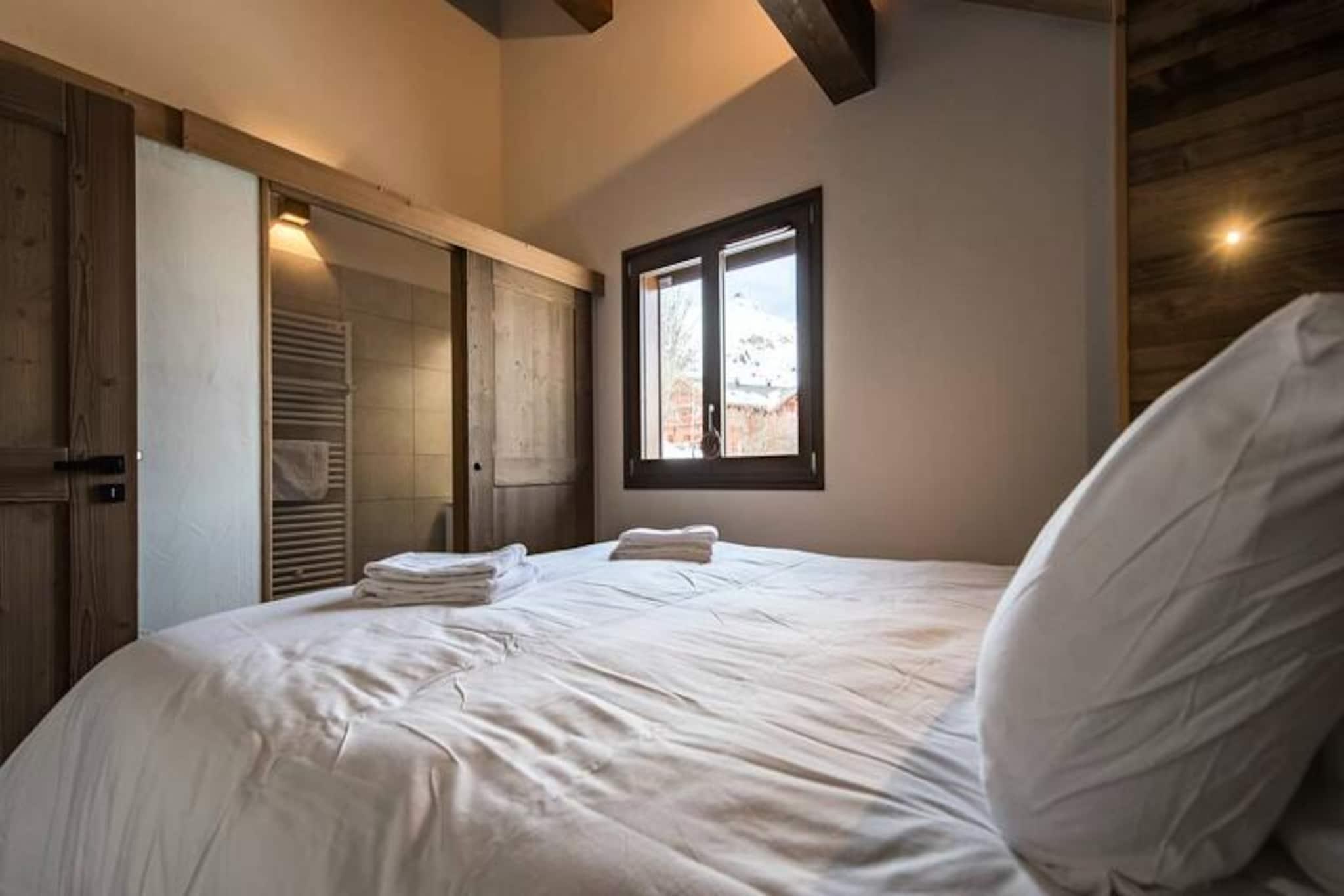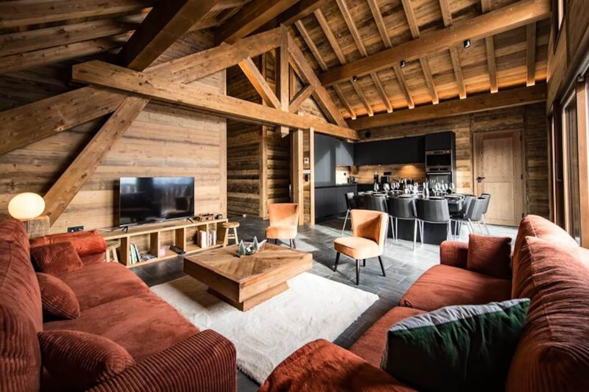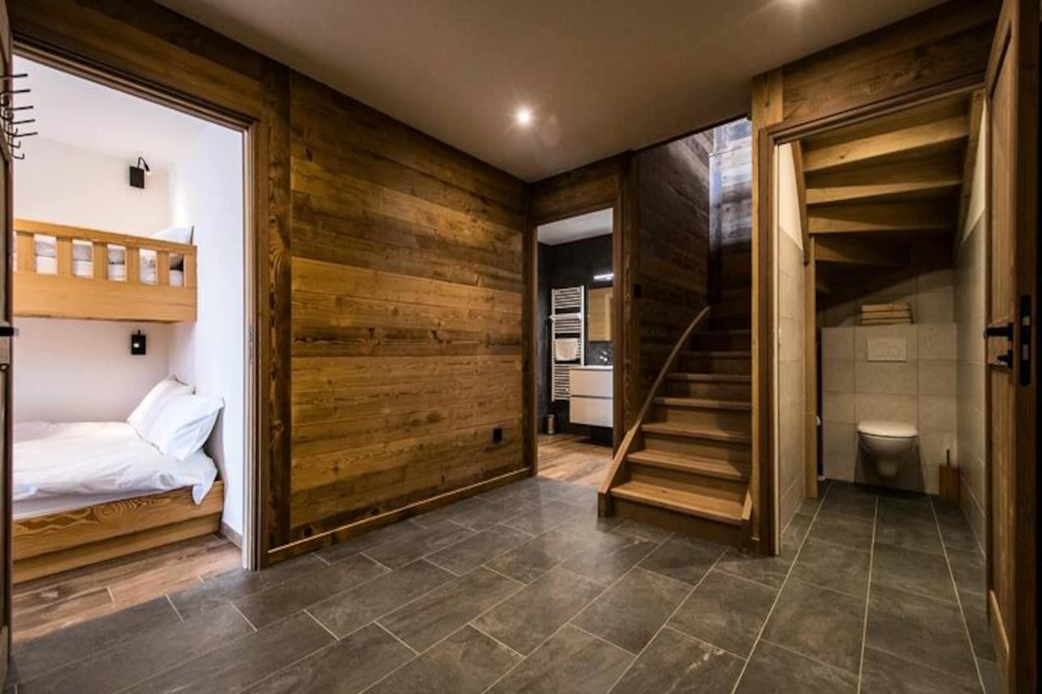 Hvor alpintoppene kysser himlen, og den friske bjergluft forfrisker dine sanser, tilbyder denne fantastiske hytte på Route des Champions et luksuriøst tilflugtssted kun få minutter fra hjertet af feriestedet. Forestil dig at vågne op til den bløde glød fra solopgangen, der kaster gyldne nuancer over de snedækkede bjerge, mens du nipper til din morgenkaffe på den sydøstvendte terrasse. Med sin varme og sofistikerede indretning er denne hytte et paradis for familier og venner, der søger både komfort og eventyr i de franske alper. Træd indenfor og oplev et gennemtænkt designet rum, der kombinerer moderne bekvemmeligheder med alpin charme. Indgangen i haveplan byder dig velkommen med et skirum til sikker opbevaring og et vaskerum for ekstra bekvemmelighed. Stueetagen har et hyggeligt soveværelse med dobbeltseng, en sovesal perfekt til børn eller grupper, og et badeværelse komplet med sauna for ultimativ afslapning. Ovenpå tilbyder to elegante master-suiter med eget brusebad og private toiletter et roligt tilflugtssted efter en dag på pisterne. Den åbne opholdsstue med hvælvede lofter inkluderer et fuldt udstyret køkken, en spiseplads og en stue med et tv-hjørne, hvilket skaber de perfekte rammer for fælles øjeblikke. Beliggende mindre end 5 minutters gang fra feriestedets centrum har du nem adgang til butikker, restauranter og skilifte. Med én indendørs parkeringsplads med ladeport og tre ekstra udendørspladser er bekvemmeligheden lige ved hånden. Derudover sikrer Altitude 1750 en problemfri oplevelse ved at levere forudbestilte liftkort og lektionskort direkte til din dør. Uanset om du snor dig gennem frisk puddersne, slapper af i saunaen eller nyder en hyggelig aften ved pejsen, lover denne hytte uforglemmelige minder i hjertet af Alperne. Book nu, og lad bjergenes magi fortrylle dig.