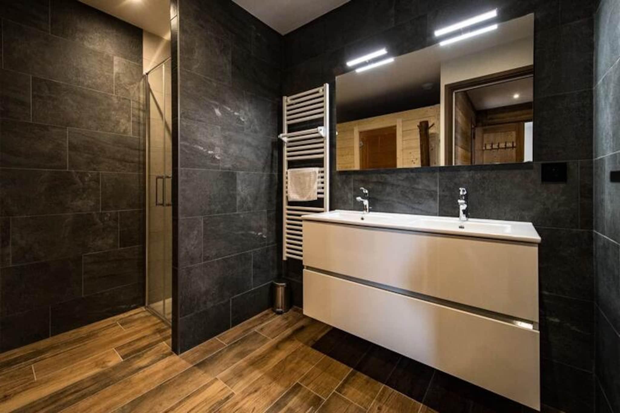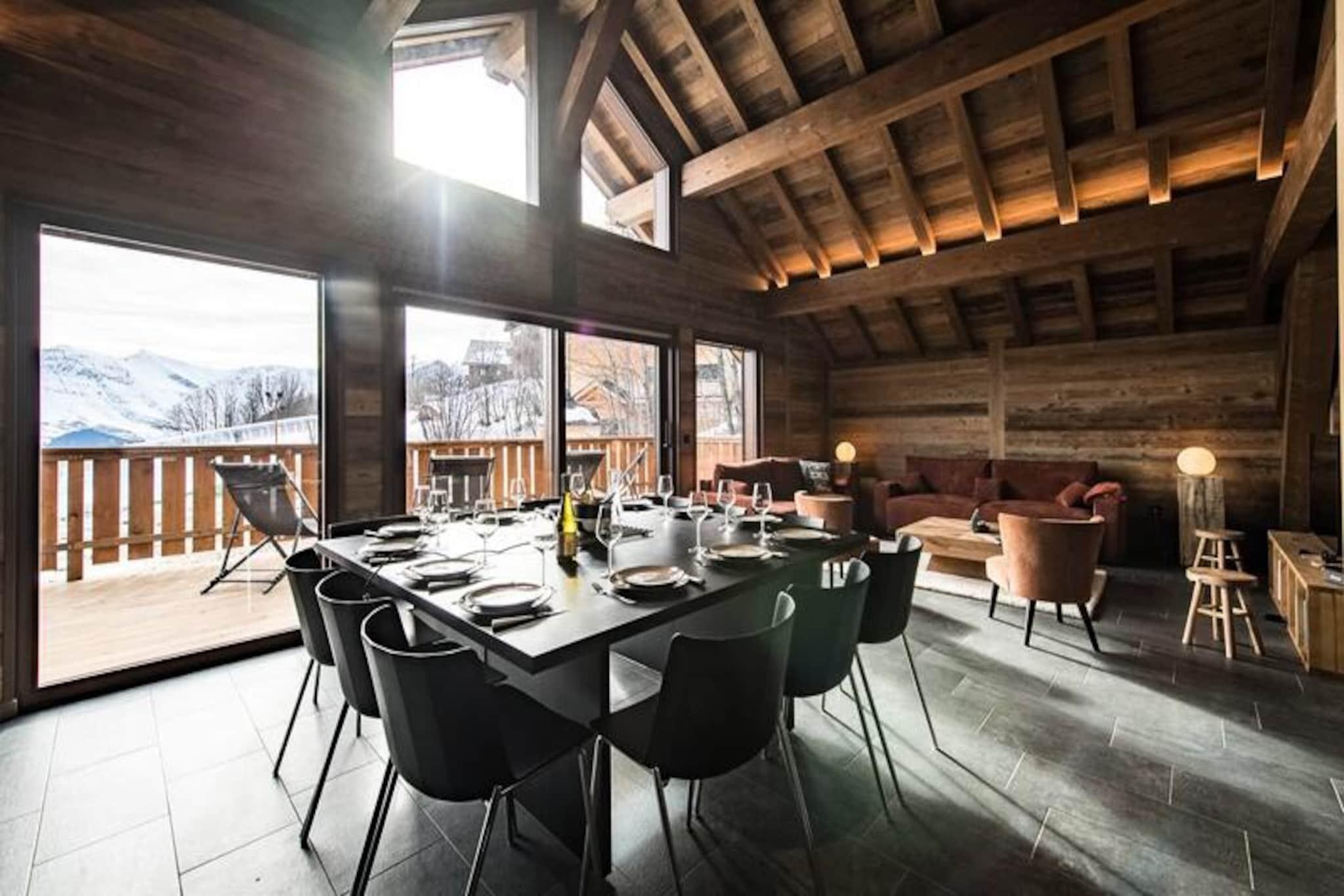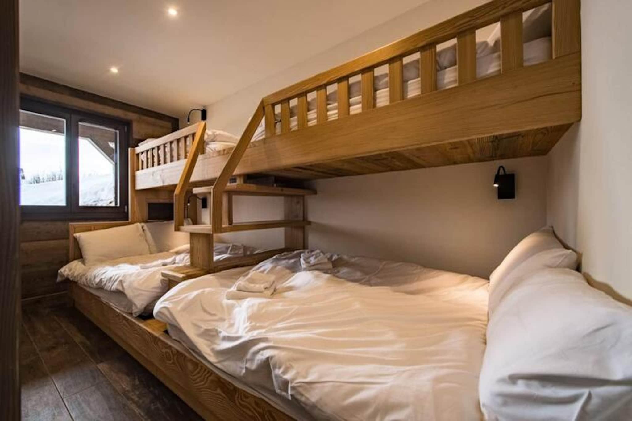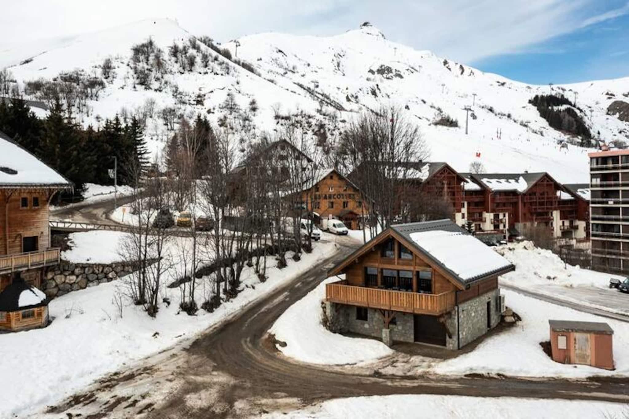 Hvor alpintoppene kysser himlen, og den friske bjergluft forfrisker dine sanser, tilbyder denne fantastiske hytte på Route des Champions et luksuriøst tilflugtssted kun få minutter fra hjertet af feriestedet. Forestil dig at vågne op til den bløde glød fra solopgangen, der kaster gyldne nuancer over de snedækkede bjerge, mens du nipper til din morgenkaffe på den sydøstvendte terrasse. Med sin varme og sofistikerede indretning er denne hytte et paradis for familier og venner, der søger både komfort og eventyr i de franske alper. Træd indenfor og oplev et gennemtænkt designet rum, der kombinerer moderne bekvemmeligheder med alpin charme. Indgangen i haveplan byder dig velkommen med et skirum til sikker opbevaring og et vaskerum for ekstra bekvemmelighed. Stueetagen har et hyggeligt soveværelse med dobbeltseng, en sovesal perfekt til børn eller grupper, og et badeværelse komplet med sauna for ultimativ afslapning. Ovenpå tilbyder to elegante master-suiter med eget brusebad og private toiletter et roligt tilflugtssted efter en dag på pisterne. Den åbne opholdsstue med hvælvede lofter inkluderer et fuldt udstyret køkken, en spiseplads og en stue med et tv-hjørne, hvilket skaber de perfekte rammer for fælles øjeblikke. Beliggende mindre end 5 minutters gang fra feriestedets centrum har du nem adgang til butikker, restauranter og skilifte. Med én indendørs parkeringsplads med ladeport og tre ekstra udendørspladser er bekvemmeligheden lige ved hånden. Derudover sikrer Altitude 1750 en problemfri oplevelse ved at levere forudbestilte liftkort og lektionskort direkte til din dør. Uanset om du snor dig gennem frisk puddersne, slapper af i saunaen eller nyder en hyggelig aften ved pejsen, lover denne hytte uforglemmelige minder i hjertet af Alperne. Book nu, og lad bjergenes magi fortrylle dig.