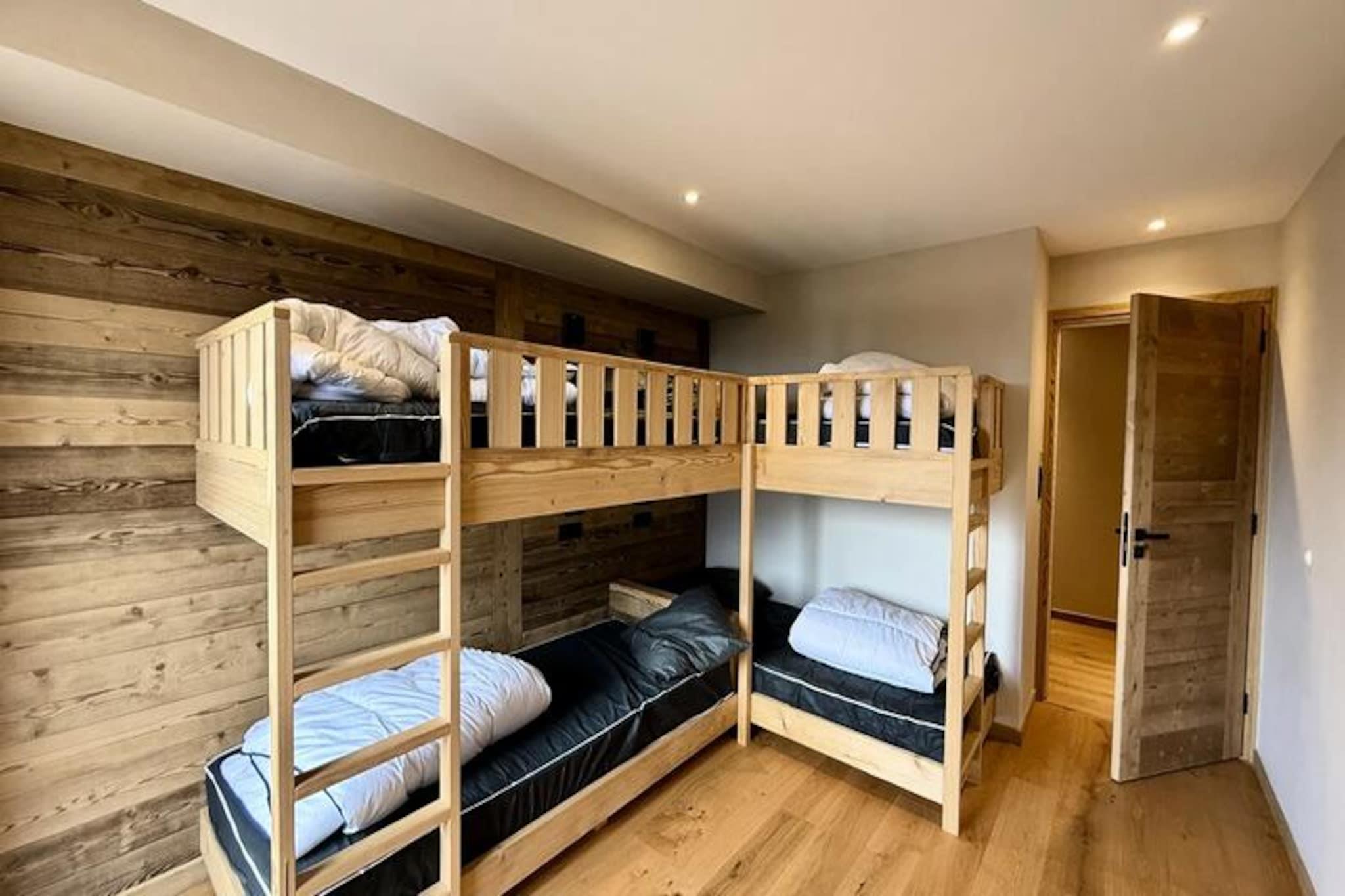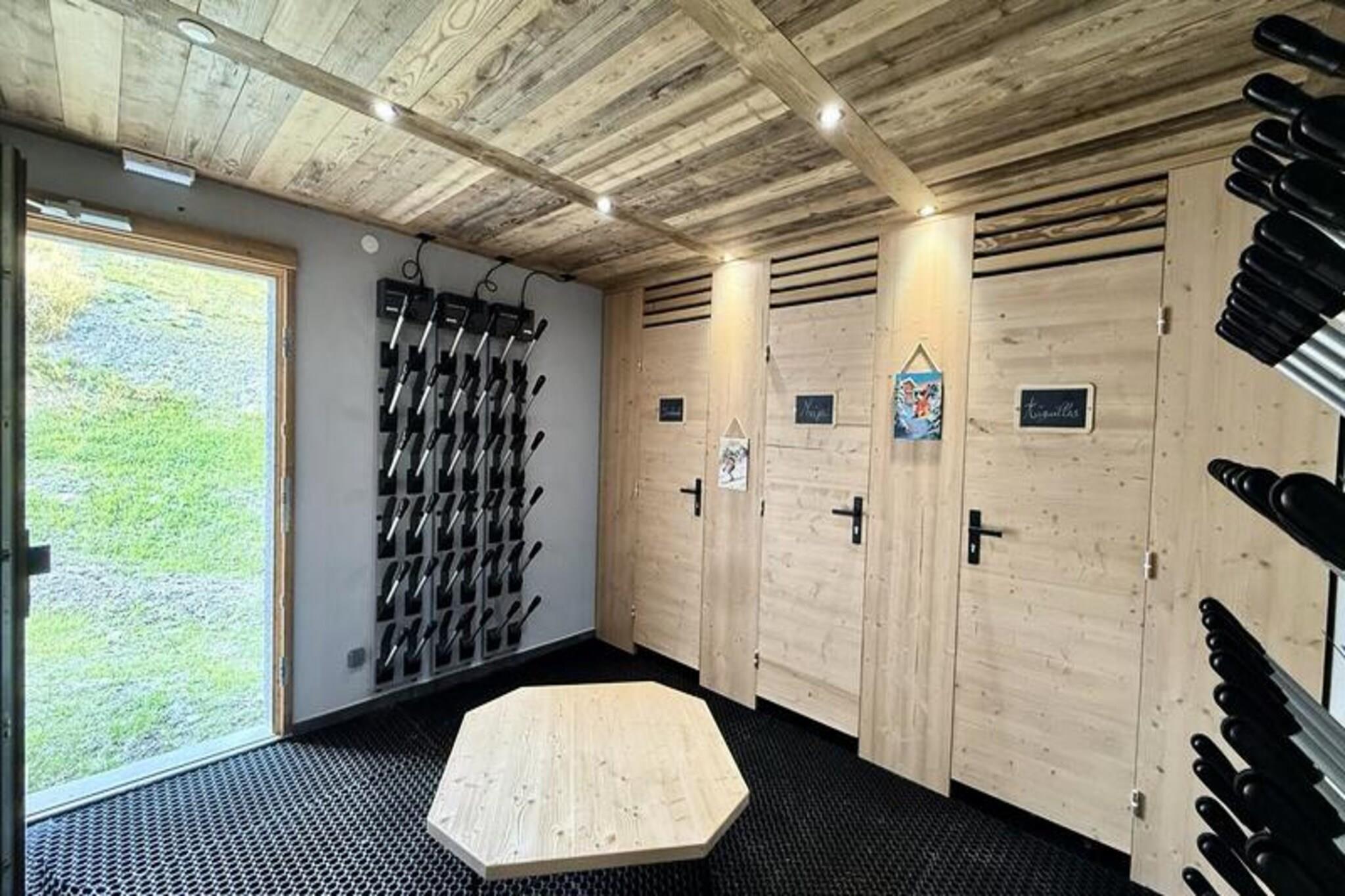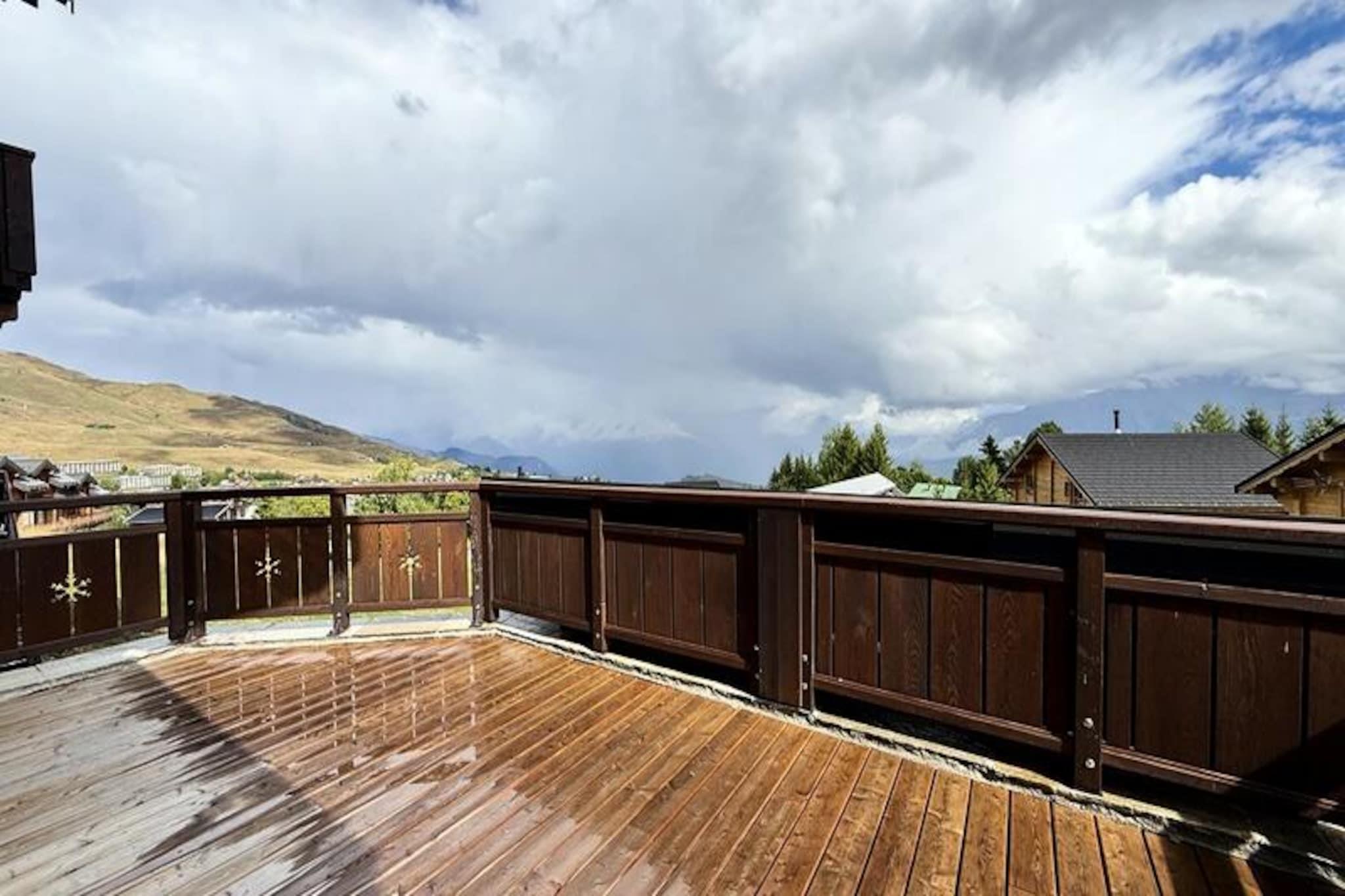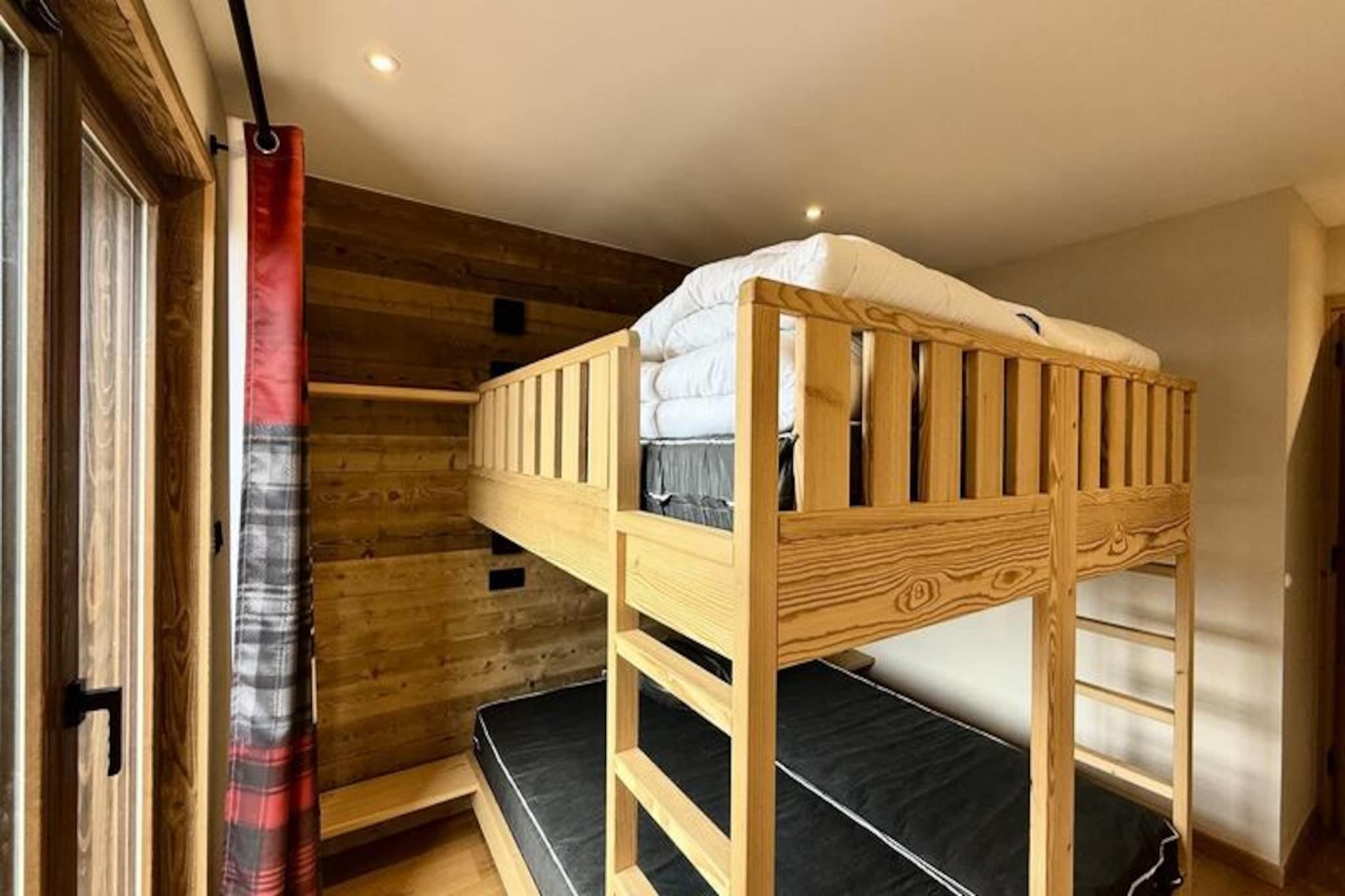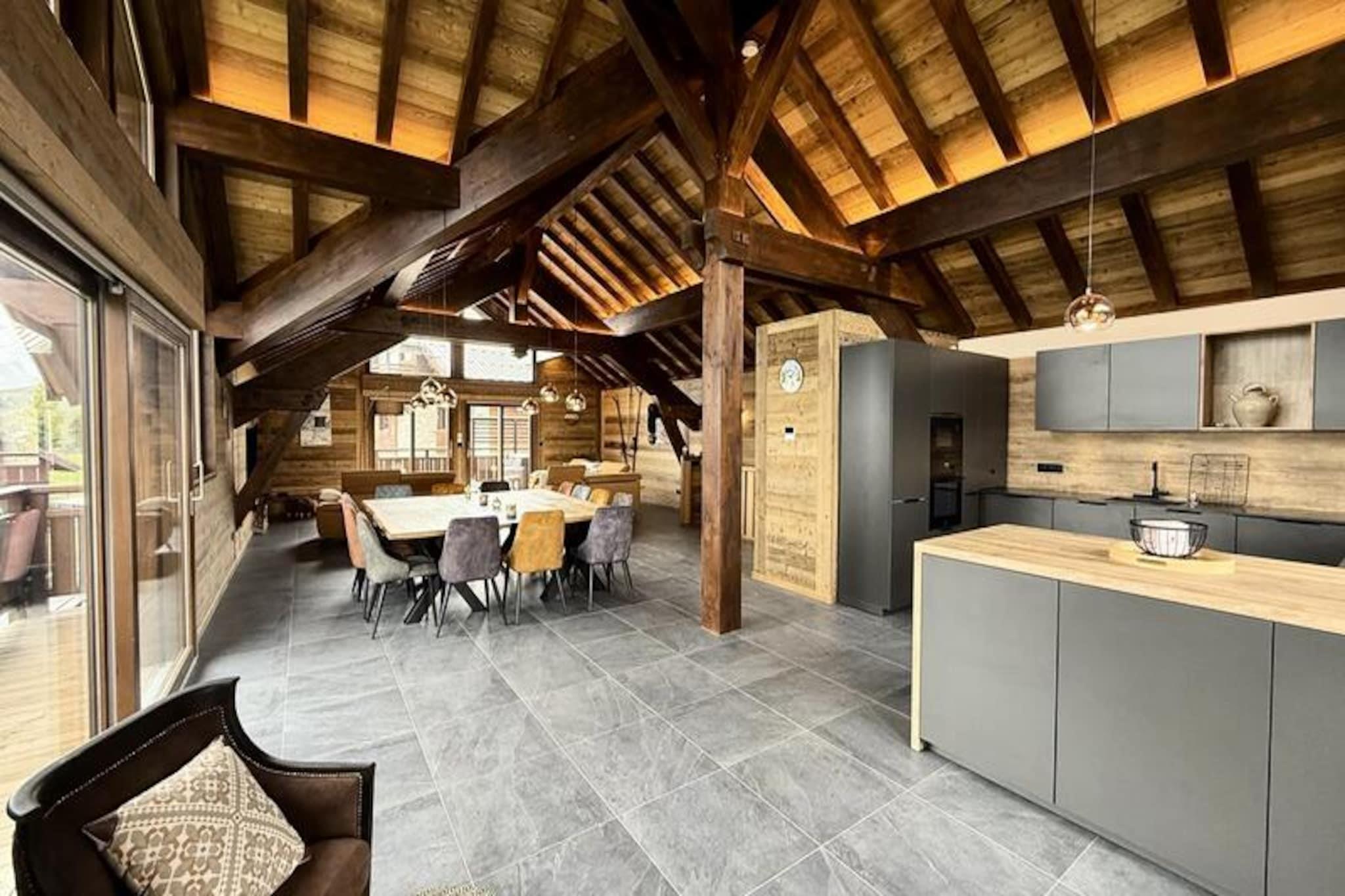 Højt over dalen, hvor den alpine luft føles frisk og forfriskende, tilbyder Chalet Aiguilles et luksuriøst tilflugtssted med en betagende udsigt over de omkringliggende tinder. Denne exceptionelle hytte på 219 m² kombinerer den rustikke charme fra traditionelt alpint design med moderne elegance og skaber et rum, der føles både hyggeligt og sofistikeret. Når solen går ned over bjergene, bliver den vestvendte terrasse det perfekte sted at slappe af, med en panoramisk jacuzzi, der inviterer dig til at nyde aftenhimlens skønhed. Uanset om du er her for eventyr eller afslapning, lover denne hytte en uforglemmelig oplevelse. \n\nChalet Aiguilles er designet til at rumme op til 14 gæster og kan prale af en imponerende planløsning. Første sal har tre dobbeltværelser, hver med eget badeværelse, og to sovesale med køjesenge, ideelle til familier eller grupper. Et vaskerum, fælles badeværelse og separate toiletter sikrer bekvemmelighed for alle. På øverste etage er den rummelige opholdsstue badet i naturligt lys, med synlige bjælker, der tilføjer et strejf af alpin autenticitet. Det åbne køkken er fuldt udstyret, hvilket gør det nemt at tilberede måltider til nydelse omkring det store spisebord. Herfra kan du gå ud på terrassen for at nyde udsigten over bjergene eller slappe af i jacuzzien efter en dag på pisterne. \n\nBeliggende direkte på Comborcière-pisten tilbyder chaleten ski-in/ski-out adgang, hvilket gør den til en drøm for vintersportsentusiaster. Gæsterne kan også nyde fælles faciliteter såsom et fitnesscenter og skirum med støvletørrer. Med overdækkede parkeringspladser, Wi-Fi og slutrengøring inkluderet er hver eneste detalje blevet omhyggeligt overvejet. Altitude 1750 sikrer et problemfrit ophold og leverer liftkort og lektionskort direkte til din chalet. Uanset om du står på ski, vandrer eller blot nyder den alpine ro, er Chalet Aiguilles den perfekte destination til at skabe varige minder.