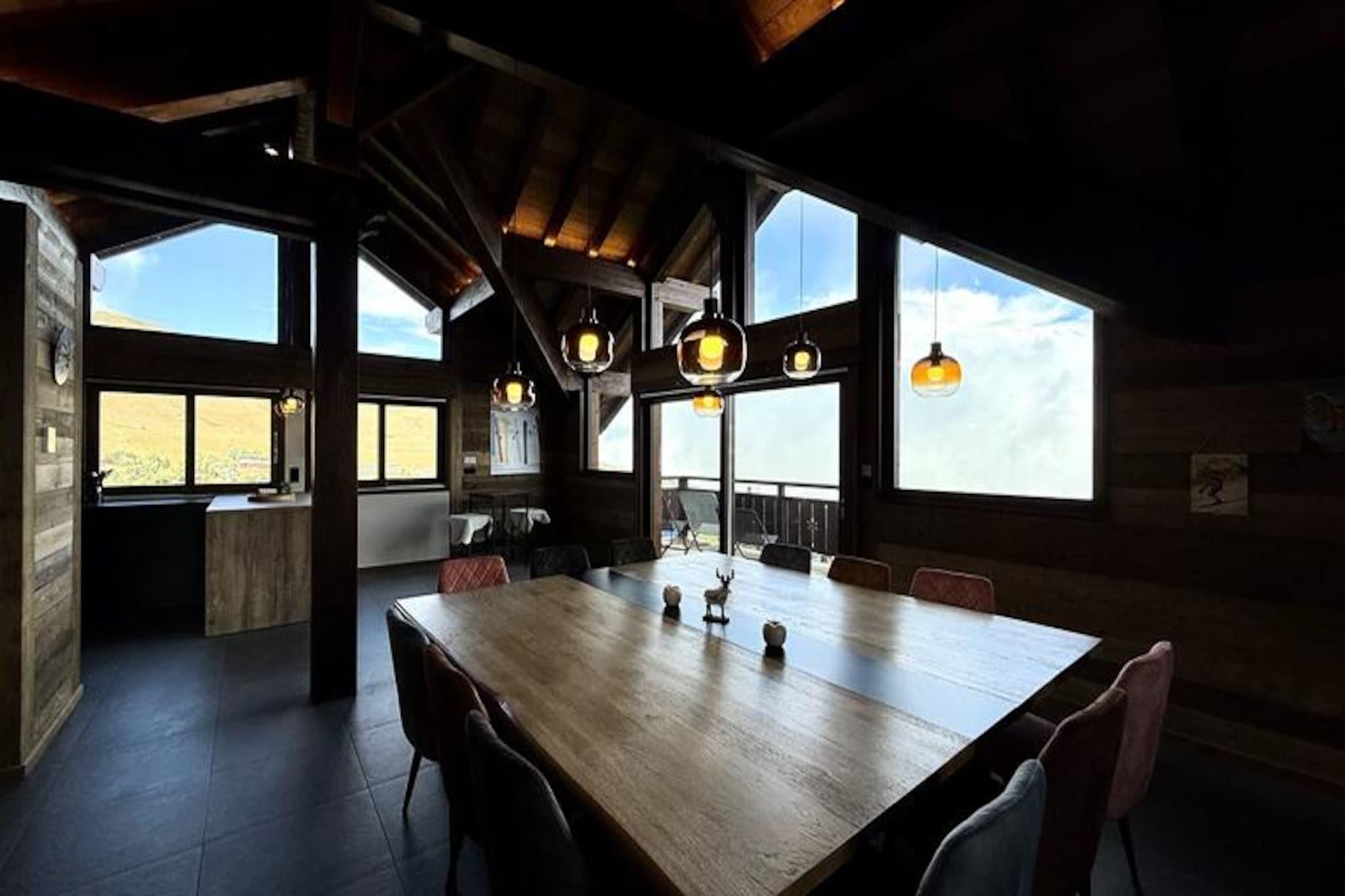 Højt over de snedækkede tinder i Saint-Sorlin-d’Arves tilbyder Chalet l’Étendard et uovertruffent alpint tilflugtssted, hvor luksus møder spændingen ved pisterne. Forestil dig at vågne op til det bløde morgenlys, der strømmer gennem panoramavinduerne, og træde ud på din private balkon for at nyde en betagende 180° udsigt over de omkringliggende bjerge. Uanset om du står på ski direkte til hytten eller nyder den nærliggende Comborcière-piste, lover dette tilflugtssted en uforglemmelig flugt i hjertet af de franske alper. \n\nMed et imponerende areal på 210 m² er hytten omhyggeligt designet til at rumme op til 12 gæster i suveræn komfort. Første sal kan prale af fire elegante soveværelser, herunder et tilpasset gæster med nedsat mobilitet, hver med eget badeværelse. En sovesal med to køjesenge tilbyder et hyggeligt rum til yngre rejsende, mens den fælles balkon har en panoramisk jacuzzi - et perfekt sted at slappe af efter en dag på pisterne. Øverste etage afslører en lys opholdsstue med synlige bjælker, et moderne åbent køkken og et stort spisebord, der er ideelt til at samle familie og venner. Yderligere faciliteter inkluderer Wi-Fi, et privat vaskerum og adgang til fælles wellnessfaciliteter og et skirum med støvletørrer. \n\nBeliggende kun få minutter fra snefronten tilbyder chaleten problemfri adgang til skiløb, mens den charmerende landsby Saint-Sorlin-d'Arves inviterer til udforskning med sine traditionelle Savoyard-restauranter og lokale butikker. Om sommeren forvandles regionen til et paradis for vandrere og cyklister, med stier, der snor sig gennem frodige alpine enge og forbi krystalklare søer. Med liftkort og lektioner, der bekvemt arrangeres af Altitude 1750, er din ferie lige så ubesværet, som den er mindeværdig. \n\nUanset om du søger eventyr eller ro, er Chalet l'Étendard den ultimative destination for at skabe værdsatte øjeblikke i Alperne. Book nu, og lad bjergenes magi omslutte dig.