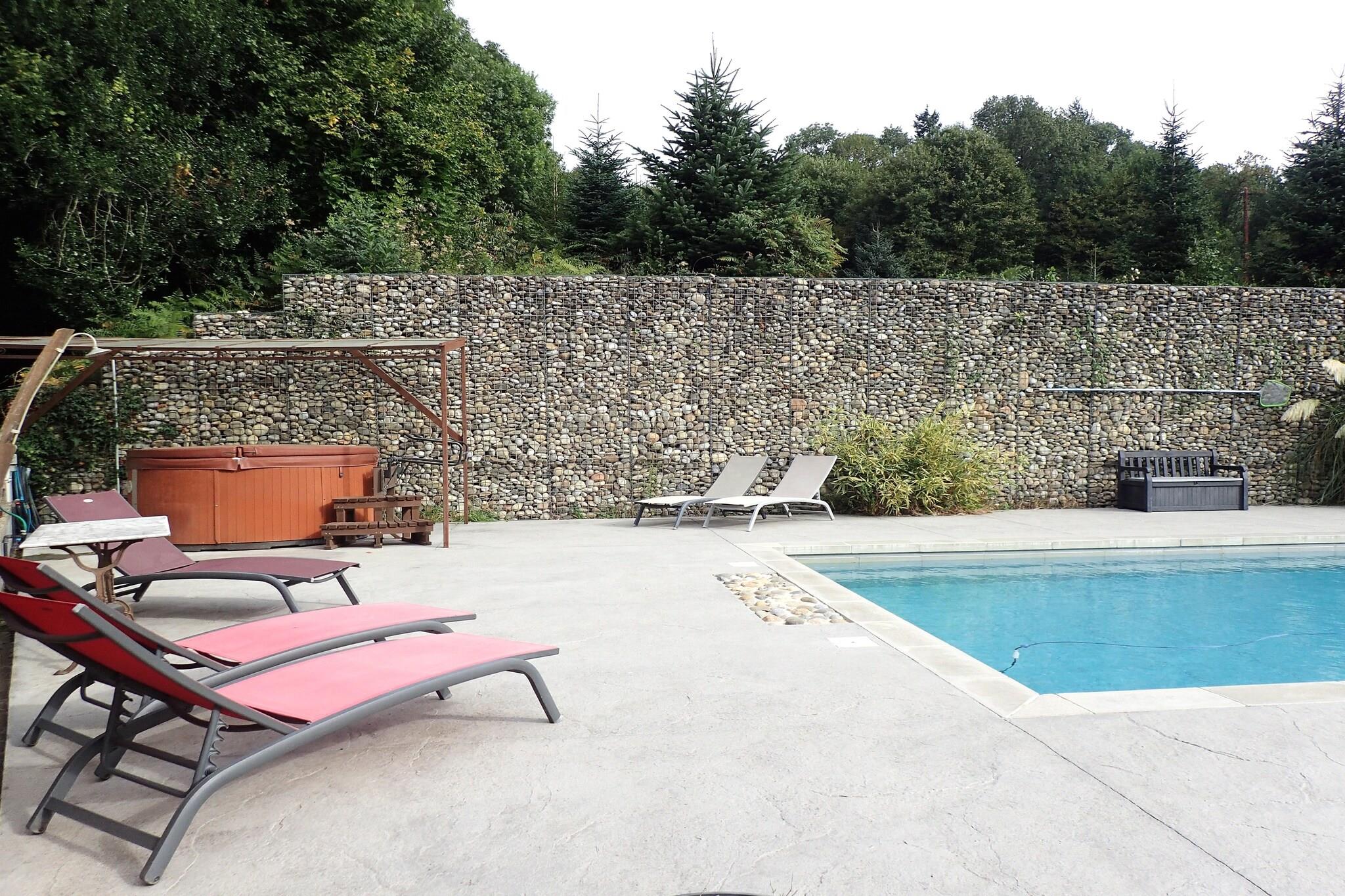 Gemt væk i den fredfyldte Montagne Noire-region, kun 25 minutter fra Carcassonnes middelalderlige charme, byder dette rummelige feriehus velkommen til op til 14 gæster, der kan slappe af midt i naturens ro. Omgivet af enge, skove og glitrende søer, der engang blev formet af Paul Riquet for at forsyne Canal du Midi, er det en oase af fred og autenticitet, perfekt til familiesammenkomster eller en ferie med venner. Træd udenfor og oplev en smukt anlagt, lukket have, hvor fritid møder luksus. Nyd solrige eftermiddage ved den private swimmingpool, slap af i den beroligende jacuzzi med 5 pladser, eller se de små grine og lege på deres egen legeplads. Om aftenen inviterer du til at spise på terrassen under pergolaen og dele historier over en grill, mens himlen bliver gylden. Indenfor udstråler hjemmet rustik elegance og varme. Det fuldt udstyrede køkken åbner ud til terrassen, mens den rummelige opholds- og spisestue med sin hyggelige pejs og charmerende bar sætter tonen for samvær. Ovenpå venter fem indbydende soveværelser, herunder en munter sovesal til børn og komfortable dobbeltværelser til voksne. Moderne badeværelser og gennemtænkte detaljer sikrer al komfort. Og lige ved siden af ligger en hyggelig lille kro med terrasse ved dammen, der tilbyder det perfekte sted til en drink eller et måltid med udsigt, der fuldender den idylliske landskabsoplevelse.