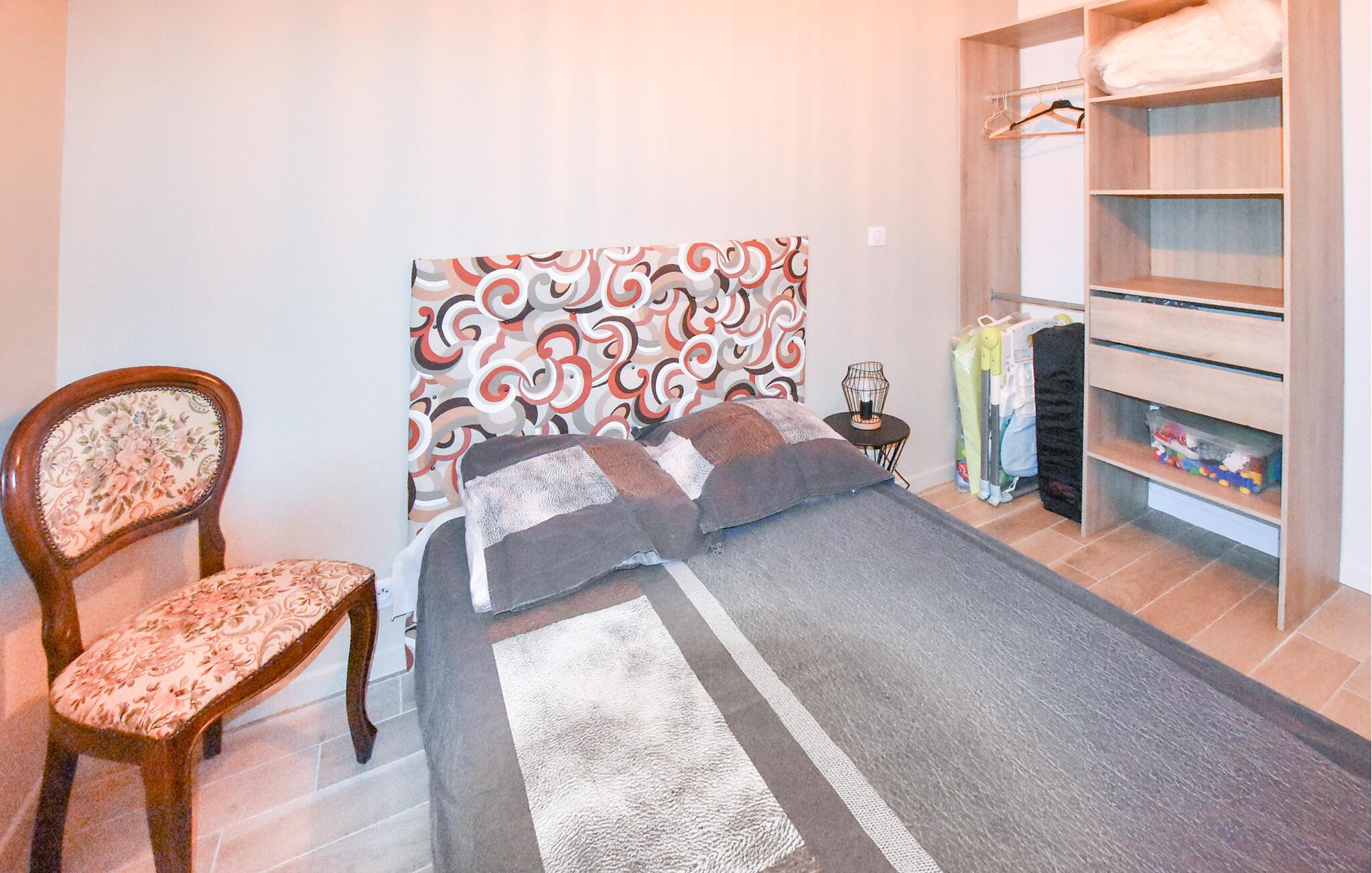 Nyd det lyse, velholdte og funktionelt møblerede interiør. Sæt jer til rette i den hyggelige stue med komfortable lænestole og en sofa, og slap af med en bog eller en samtale. Brug det lille sofabord til en aperitif om aftenen. Tilbered jeres måltider i det praktisk designede køkken. Lav mad med regionale produkter fra Provence og nyd morgenmaden ved den tilstødende disk med barstole.