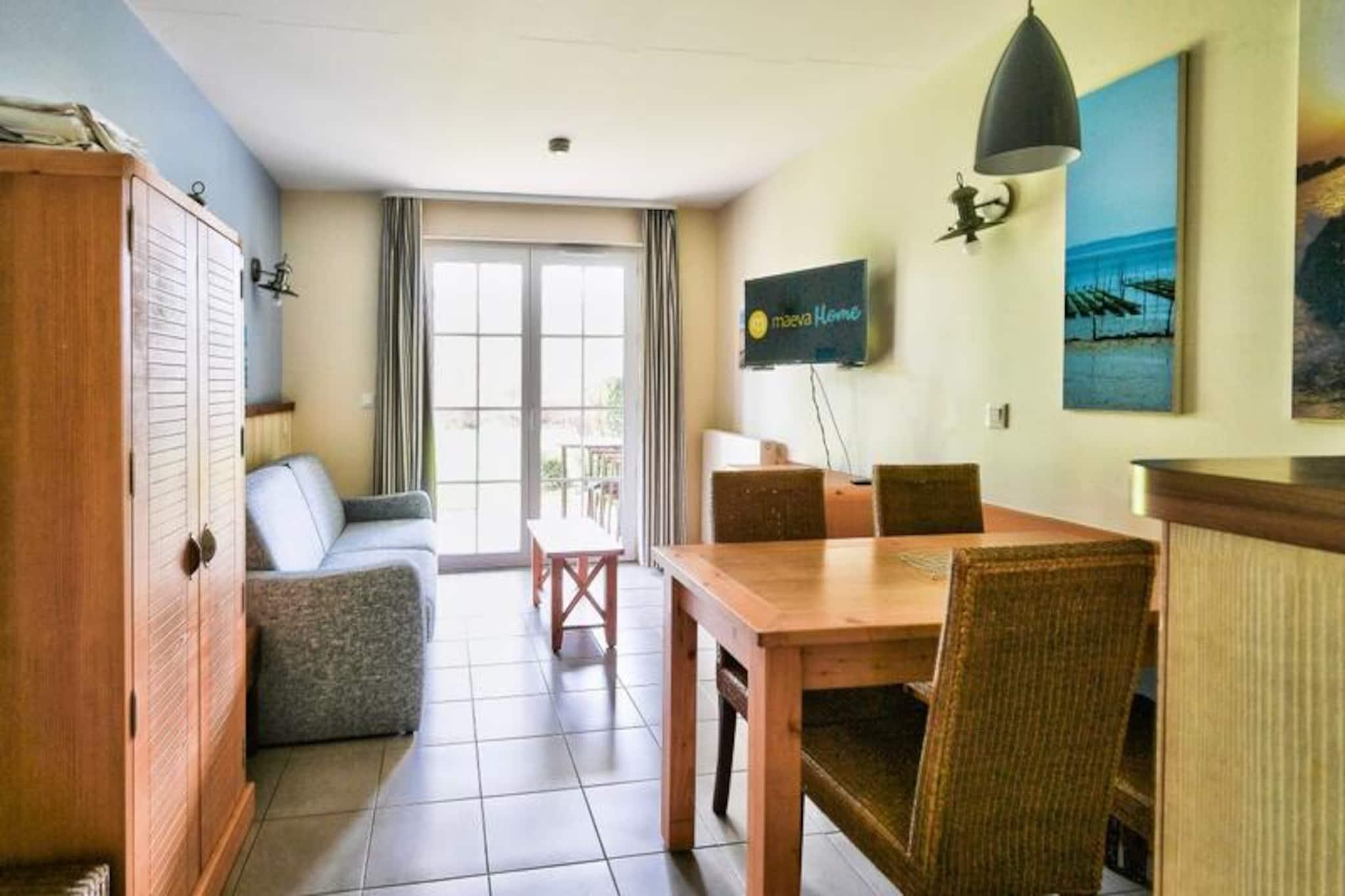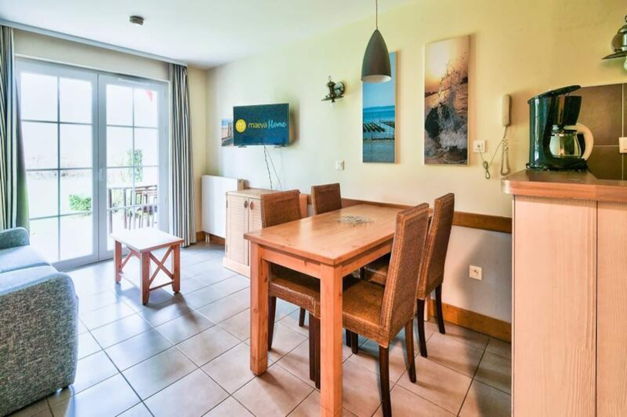 Residence Belle Dune, una ecoaldea en el corazón de una encantadora estación balnearia Ubicada al borde de un espléndido campo de golf de 18 hoyos y a dos pasos del mar, la residencia Belle Dune ofrece apartamentos y casas diseñadas para servir como un verdadero refugio para usted durante su estancia en la costa de Picardía. Cada alojamiento ofrece servicios adaptados a las necesidades de cada uno. Entre el estudio con capacidad para 4 personas o la casa para 8 personas, disfrutará de un verdadero confort para pasar unas agradables vacaciones en familia, con amigos o en pareja. De inspiración picardía, las diferentes viviendas se reúnen en un pueblo peatonal y ecorresponsable perfectamente integrado en su entorno. Entre lagos, dunas y pinos marítimos, su alquiler de vacaciones se encuentra en el corazón de una naturaleza infinitamente rica y variada, sea cual sea la estación. Desde el estudio hasta la casa, cada espacio está personalizado con buen gusto y cuenta con todas las comodidades necesarias para su bienestar. Dividido en seis distritos distintos, el “pueblo” de Belle Dune tiene un restaurante y varias tiendas que adornan la plaza central. Un pueblo de vacaciones integrado en la bonita localidad costera de Fort-Mahon-Plage, la Résidence Belle Dune goza de la proximidad de parajes naturales excepcionales, entre Somme y Authie. Desde su residencia de vacaciones podrá pasear por el corazón de los encantadores valles de Picardía, admirar la infinita diversidad de fauna y flora de los parques naturales regionales y explorar a su gusto la costa y sus interminables paisajes de dunas. vista... El alojamiento No maeva Home se beneficia del acceso al AQUACLUB (cargo extra) A tener en cuenta: Apertura del Aquaclub a principios de julio. El Aquaclub incluye la zona acuática cubierta, la piscina de olas, el acceso a los toboganes, el acceso a la sauna y al hammam y al snack bar. Su alquiler vacacional incluye: 1 salón, 1 cocina, 1 dormitorio, 1 baño, 1 aseo y 1 jardín. Las ventajas de su alquiler: Apartamento para 4 personas con jardín con vistas al bosque, cerca del lago y situado en el centro de la ciudad, cerca de los comercios. Superficie: 35 m². Ubicación: Planta de alojamiento: Planta baja Acceso a playa o pista: No Centro de la ciudad o pueblo: Centro del pueblo Distancia de las pistas al mar: >500m Distancia comercial: <100m Actividades a distancia: <100m Número de niveles de vivienda: Una sola planta Composición de la estancia: Sofá estándar: No Sofá convertible: Sí Número de camas en el sofá convertible: 2 Mesa en el comedor: Sí Número de sillas (o taburetes): 4 Mesa de centro: Sí Chimenea: No Lado de la comida: Tipo de cocina: americana Mesa en la cocina: No Número de sillas en la cocina: No Composición de las habitaciones: Dormitorio 1: Camas individuales dormitorio 1: 2 Camas dobles dormitorio 1: No Literas dormitorio 1: No Composición del baño: Estado del baño principal: Buen estado Un inodoro privado dentro del alojamiento: Sí Un segundo baño privado con acceso independiente: No Un segundo inodoro: No Exteriores: Jardín: Sí Con vistas al jardín: No Vista al jardín: Bosque Orientación del jardín: Norte Aparcamiento dedicado al alojamiento: No ¿Cómo describiría la luminosidad del alojamiento en su conjunto? : Normal Etiqueta de selección de hogar maeva: Apartamentos mantenidos, al día y con equipamiento de calidad. Para unas vacaciones exitosas y confortables. Acceso Wifi - Cargo adicional - sujeto a disponibilidad. Se admiten mascotas - Además, consultar precios directamente con la residencia. Kit Bebé - Con suplemento - sujeto a disponibilidad. Ropa de cama - Incluida - el contenido puede variar según la residencia: sábana bajera, sábana o funda nórdica y funda de almohada. Toallas - Cargo extra. Limpieza final de estancia - Servicio de limpieza obligatorio a pagar al realizar el check-in o a la llegada. Aparcamiento - Descubrimiento gratuito en cada distrito del pueblo. Tasa turística (cargo adicional) - El pago de la tasa turística se realiza a través de su espacio personal: https://mon-compte.maeva.com, el importe varía según la ubicación. Gratis para menores de 18 años. Depósito (en euros) - 500 Limpieza final de estancia - Servicio de limpieza obligatorio a pagar al realizar el check-in o a la llegada.