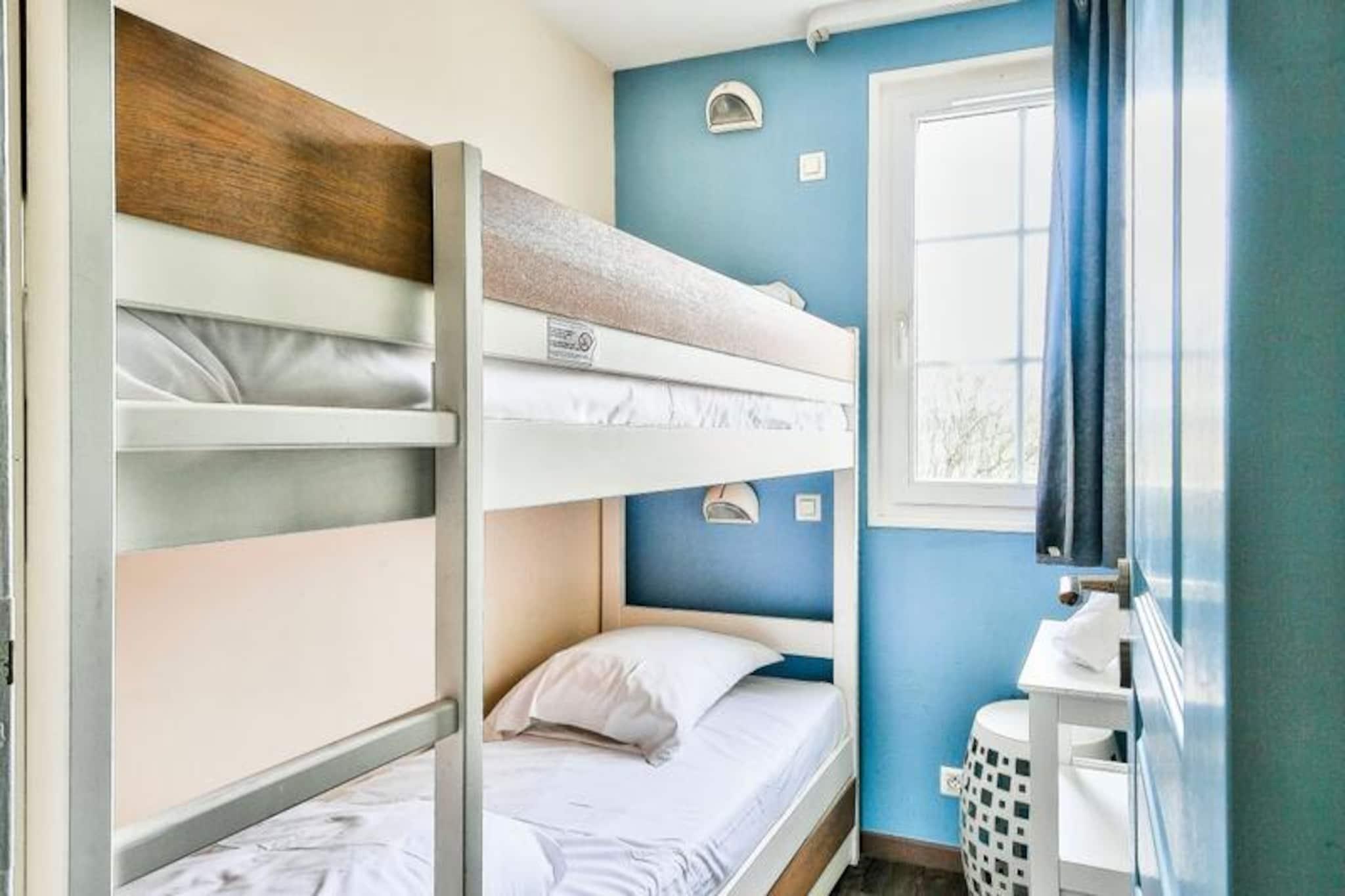 Oplev en afslappende ferie i dette charmerende feriehus i Fort-Mahon, beliggende i en fredfyldt, fodgængervenlig landsby inspireret af Picardiets arkitektur. Huset kan rumme op til seks gæster og har tre soveværelser: et dobbeltværelse, et dobbeltværelse med to enkeltsenge og et køjeværelse ideel til børn. Et badeværelse med badekar-bruser, separat bruser og toilet giver bekvemmelighed. Kæledyr er velkomne mod et ekstra gebyr, og sengetøj er inkluderet for et problemfrit ophold. En reserveret parkeringsplads sikrer nem adgang. Ejendommen ligger i en livlig landsby og tilbyder nærhed til en række attraktioner og aktiviteter. Udforsk den omkringliggende naturlige skønhed, nyd vandsport, eller deltag i betalte landsbyaktiviteter såsom tennis, fitnesstimer og Zumba. Nærliggende caféer og markeder byder på lokale delikatesser og væsentlige ting, mens stranden ligger kun en kort køretur væk. I juli og august kan beboerne i Maisons de la Plage-distriktet nyde en privat swimmingpool, perfekt til afkøling. Den åbne planløsning omfatter en hyggelig opholds- og spisestue med plads til seks og et fuldt udstyret køkken, komplet med moderne apparater som en opvaskemaskine, mikroovn og køleskab. En terrasse tilbyder et fredeligt sted til udendørs spisning eller til at slappe af i den friske luft. Højhastigheds-Wi-Fi, en hårtørrer og obligatorisk slutrengøring sikrer, at dit ophold er behageligt og uden bekymringer.