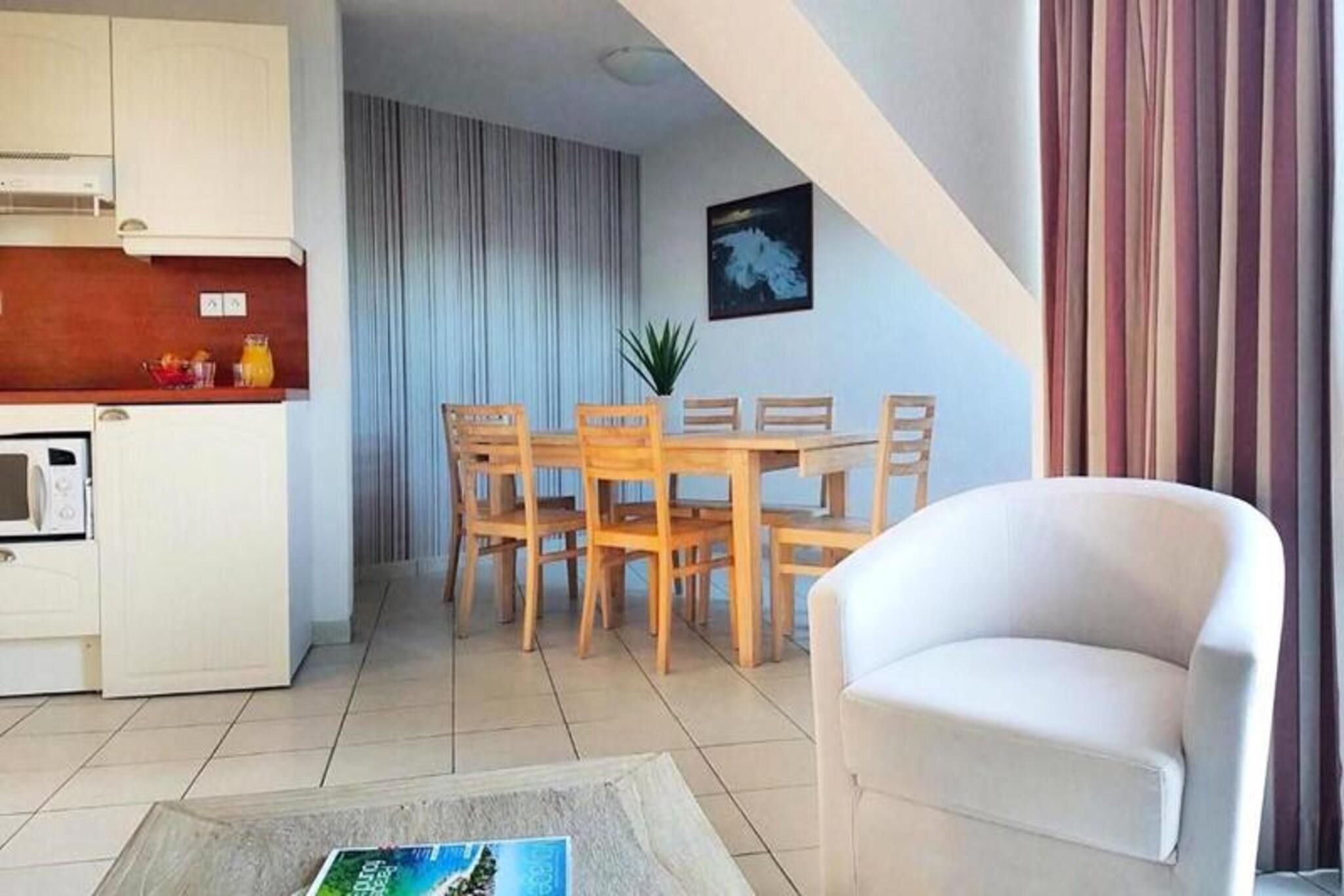 Résidence Goélia Domaine des Glénan**** ligger overfor Glénan-øgruppen og i byen Fouesnant, Beg-Meil, og tilbyder dig en charmerende beliggenhed i et naturligt og beskyttet miljø mellem klitter, bugter og poldere. Det ligger et stenkast fra det livlige centrum, butikker og 100 meter fra den fine sandstrand og det nautiske centrum. Boligen består af omkring tres lejligheder fordelt på 2 bygninger (med elevatorer), som er struktureret omkring en opvarmet udendørs swimmingpool og dens børnepool (åben fra april til september afhængigt af vejrforholdene) og en anlagt park. Du vil også finde et morgenmadslokale (ekstra gebyr skal forudbestilles dagen før i receptionen) med udsigt over swimmingpoolen, gratis lukket udendørs parkering (1 plads pr. overnatning). 200 m fra boligen kan du dyrke vandaktiviteter såsom sejlads, havkajaksejlads, katamaran, windsurfing eller endda jollesejlads. Derudover afgår adskillige vandrestier og cykelstier fra havnen i Beg Meil. Hvis du rejser gennem regionen, må du ikke gå glip af: krydstogtet til Glénan-øgruppen, Audierne-akvariet eller endda Quimper og dets arv. 3 værelser Duplex 6/7 personer Pooludsigt Stue med 2-personers sovesofa 1 soveværelse med to enkeltsenge på mezzaninen 1 soveværelse med dobbeltseng 1 kahyt med enkeltseng Badeværelse, separat toilet Udstyret køkken Altan Wifi-adgang - 6€ per dag / 12€ 3 dage / 22€ uge / 35€ 2 uger / 33€ familietilbud 1 uge (3 enheder) / 42€ 2 ugers familietilbud Kæledyr tilladt - EURO 10,50/nat, EURO 49/uge (anti-rabies certifikat påkrævet). Angrebshunde (pitbull) og 2. kat. (vagt/forsvar) er forbudt. Kun 1 dyr pr. overnatning. Depositum (ekstra) - 250 Slutrengøringsgebyr - 60€ til 79€ afhængig af boligen (ekskl. tekøkken) Babysæt - (seng, stol, bad) 5 EURO/ophold, forudbestilles samtidig med overnatning og afhængig af tilgængelighed (begrænset antal) Sengelinned - 12,50 EURO/seng/uge Håndklæder - 10EURO/sæt/uge (1 stort håndklæde, 1 lille håndklæde) Parkering - gratis og lukket udvendigt (1 parkeringsplads pr. lejlighed) Opvarmet swimmingpool - gratis adgang til den opvarmede udendørs swimmingpool og børnepool (åben fra 04/06/24 til 09/21/24) Turistskat (ekstra gebyr) - betales på stedet i henhold til gældende takst Fjernsyn - inkluderet