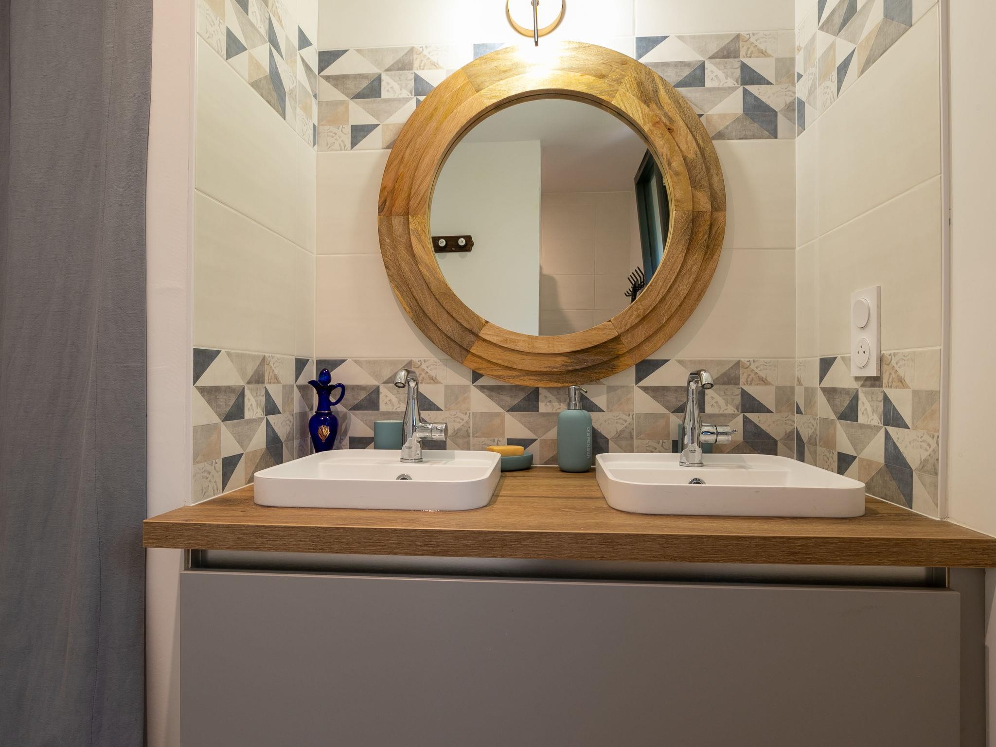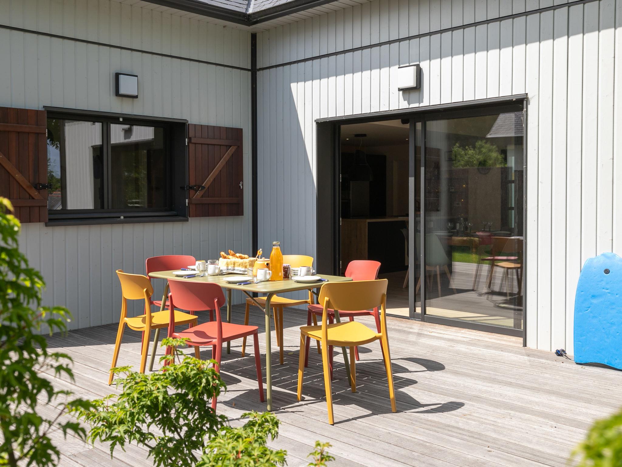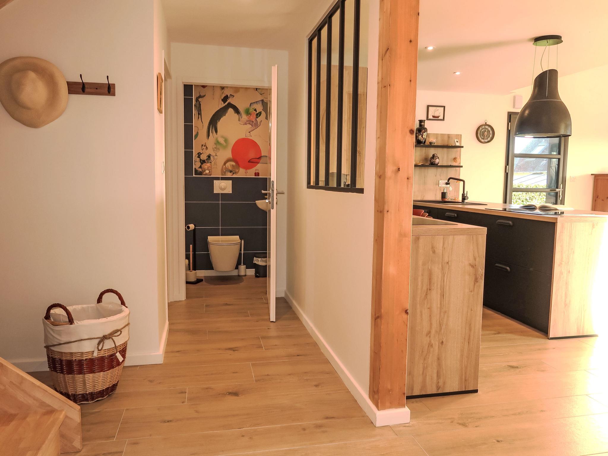 "Ty'vonne", 4-room house 120 m2 on 2 levels. Bright, beautiful and tasteful furnishings: living/dining room 30 m2. Exit to the terrace. 1 room 12 m2 with 1 french bed (140 cm, length 200 cm). Exit to the terrace. 1 room 12 m2 with 1 french bed (160 cm, length 200 cm). Open kitchen 15 m2 (oven, dishwasher, 4 induction hot plates, toaster, kettle, microwave, freezer, electric coffee machine). Shower, shower/WC, sep. WC. Upper floor: large living/sleeping room 30 m2, with sloping ceilings with 4 beds (90 cm, length 200 cm). Large terrace 50 m2, south facing position and, east facing position. Terrace furniture. Facilities: washing machine, dryer, children's high chair, baby cot for up to 2 year olds, hair dryer. Internet (WiFi, free). Please note: suitable for families. Non-smoking house. Smoke alarm. Offer by a private individual according to Art. 155, IV of CGI.