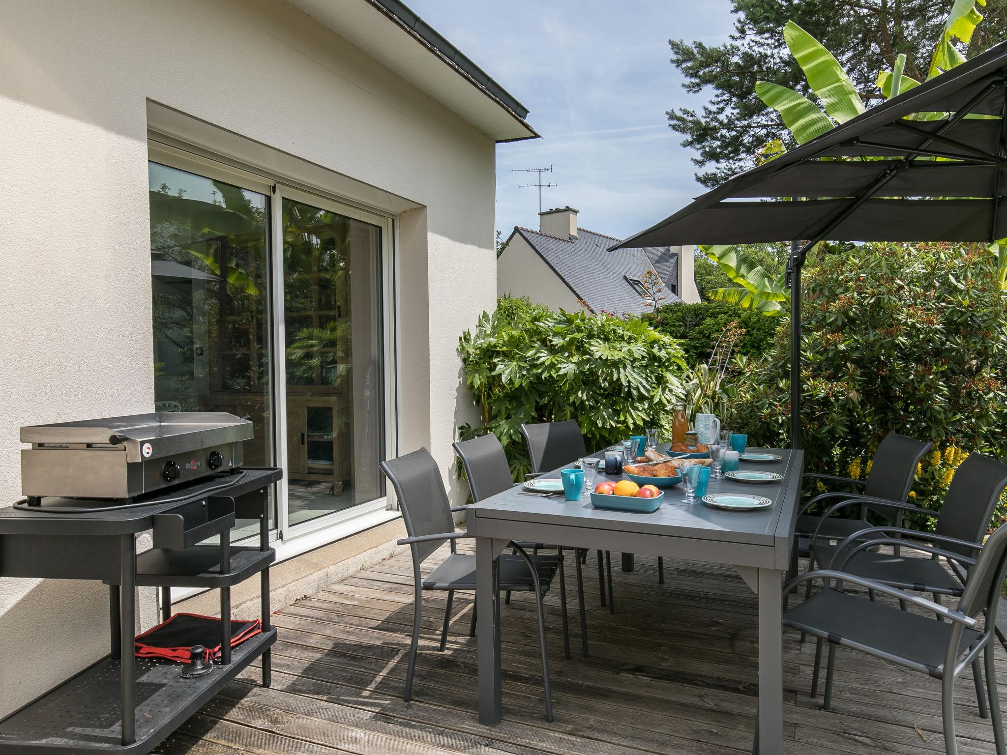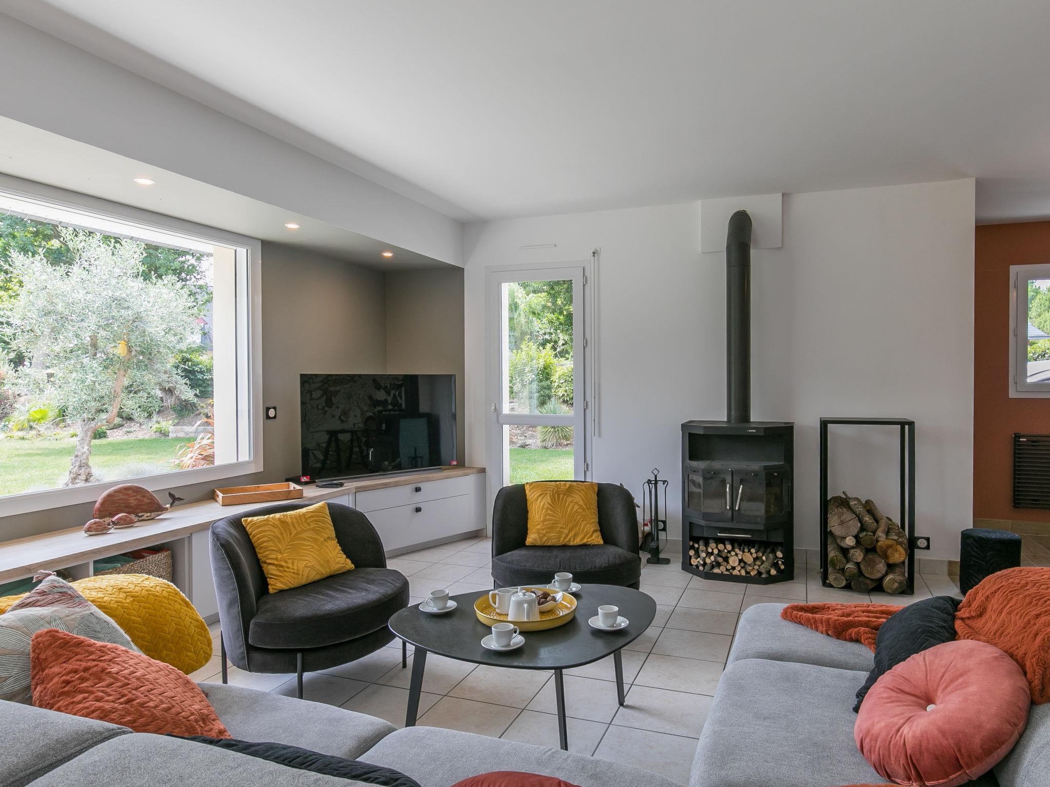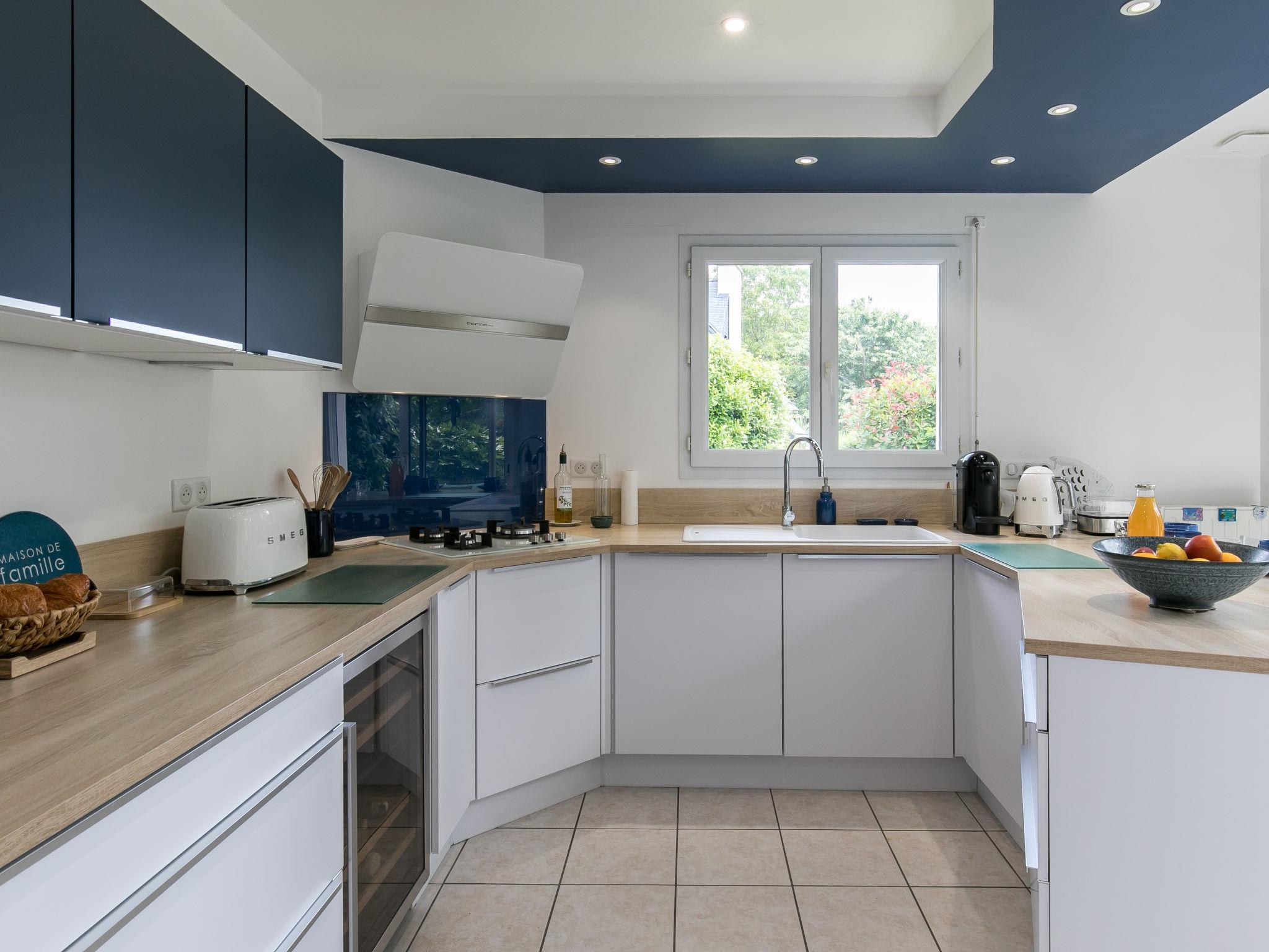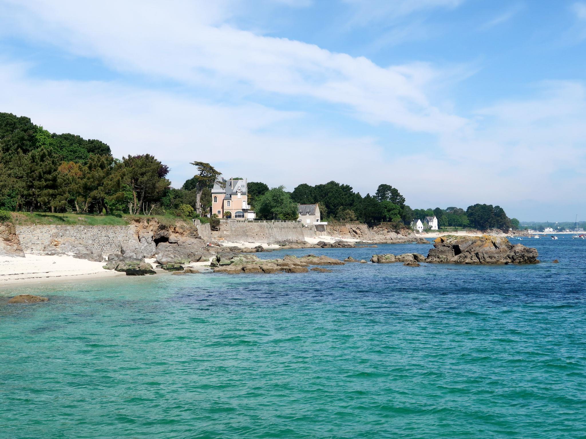 Very beautiful, luxurious house "L'échappée". In the district of Mousterlin 4.3 km from the centre of Fouesnant, 16 km from the centre of Quimper, 2.4 km from the sea, 2.4 km from the beach. Private: property 1'500 m2, well-kept garden, parking (for 2 cars) on the premises. Shop 4 km, grocery 4 km, shopping centre 5.5 km, restaurant 1.8 km, bakery 1.4 km, bus stop 1.3 km, sandy beach "Plage et Dunes de Kerler" 2.4 km, thermal baths "Thalasso benodet" 5.5 km. Marina 10 km, golf course (18 hole) 4.3 km, surf school 5 km, sailing school 7 km. Nearby attractions: Benodet,départ Odet,Archipel des Glénans 6 km, Le Cap Coz 7.5 km, Concarneau et Ville Close 15 km, Pont Aven 29 km, Pointe de la Torche 28 km, Locronan 34 km. Hiking paths: GR34, sentier des douaniers 2 km.