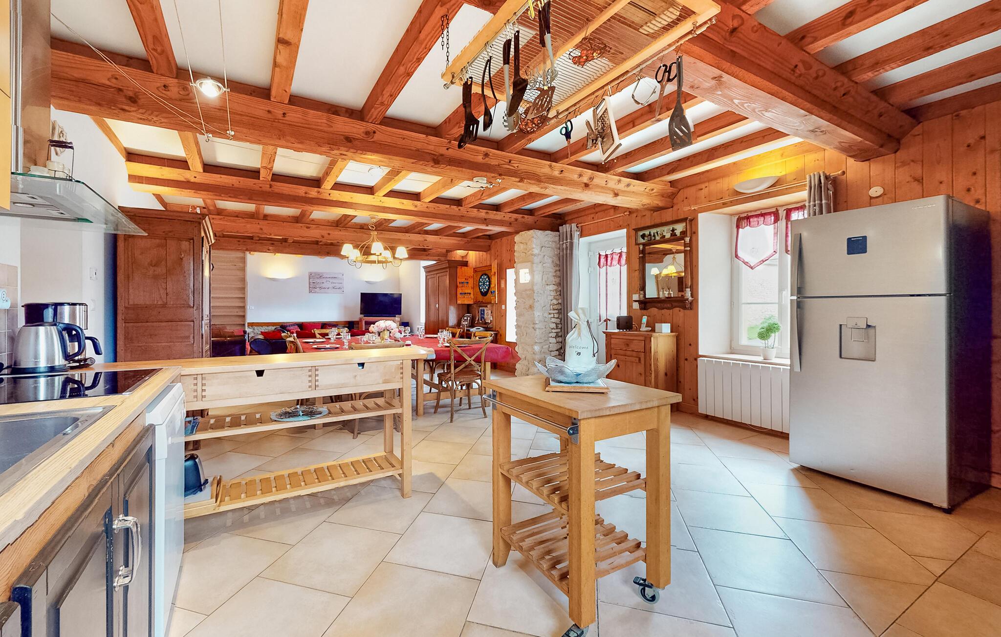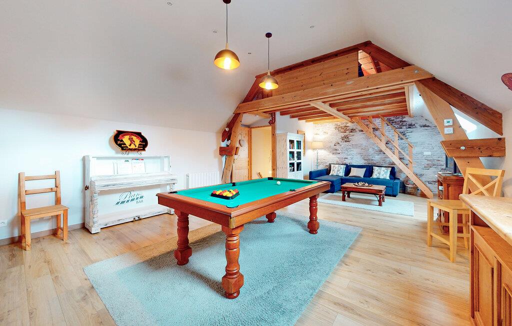 Velkommen til dette smukke feriehus bygget i den karakteristiske Caen-sten, ideelt til familier og vennegrupper, der søger afslapning og fælles oplevelser. De rummelige opholdsarealer med to stuer og et billardbord skaber en indbydende atmosfære. Et soveværelse i stueetagen gør huset velegnet til gæster med nedsat mobilitet.