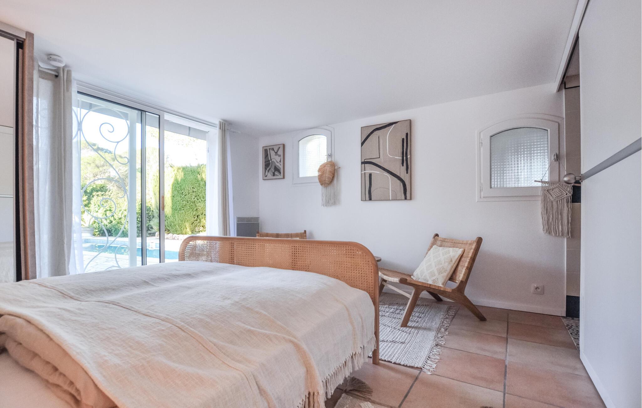 I dette skønne feriehus i Fréjus venter jer denne oase, hvor design og komfort mødes for at give jer den bedst mulige boligoplevelse.
