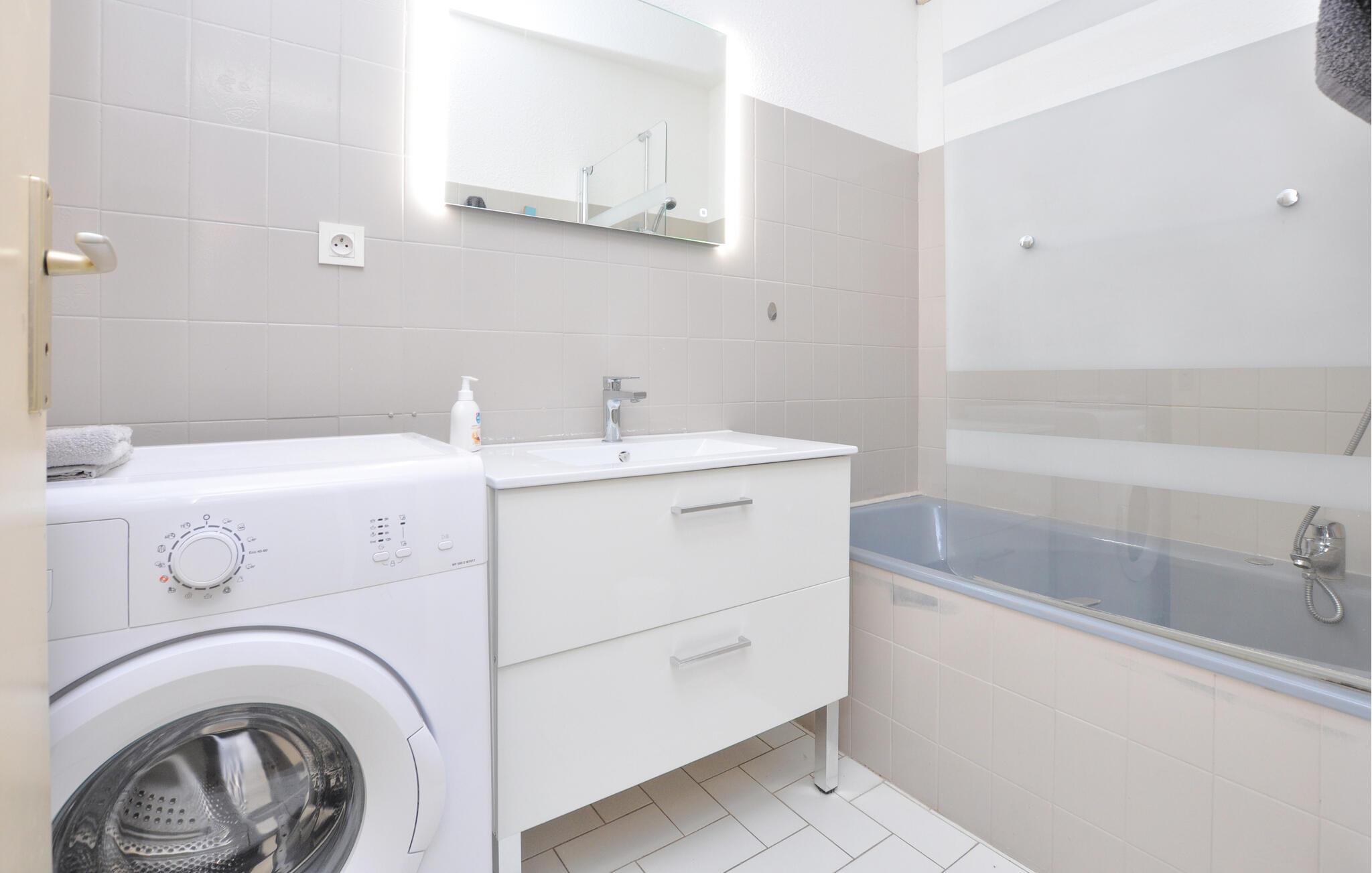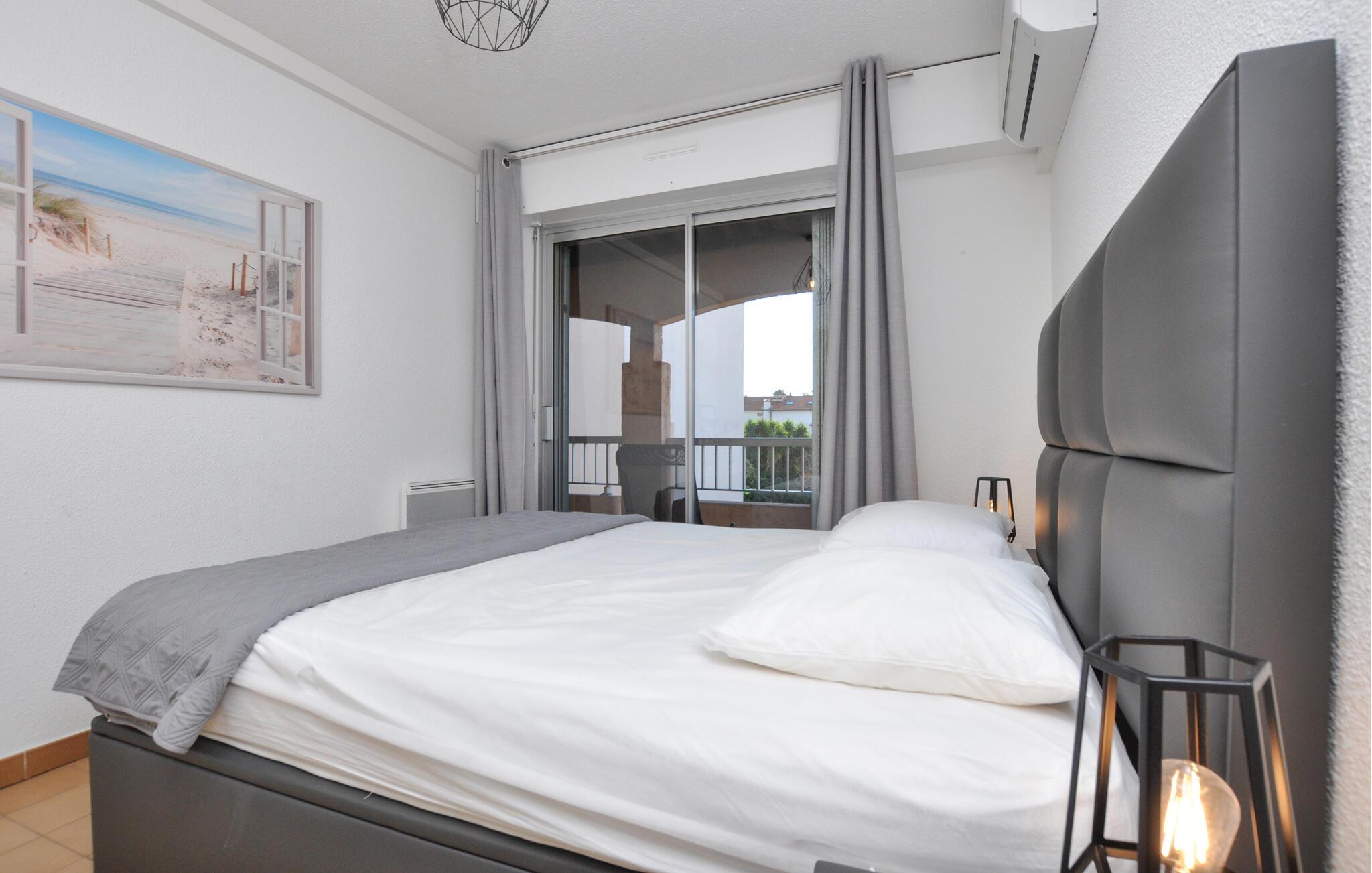 Kun en kort gåtur fra den lange sandstrand i Fréjus inviterer denne smagfuldt indrettede ferielejlighed til en vidunderlig ferie nær Côte d'Azur. Tilbered dagens måltider i det veludstyrede køkken og gør jer godt tilpas i den lyse spiseplads. Efter en begivenhedsrig dag kan I læne jer tilbage i sofaen og bruge tid sammen på at spille et brætspil.