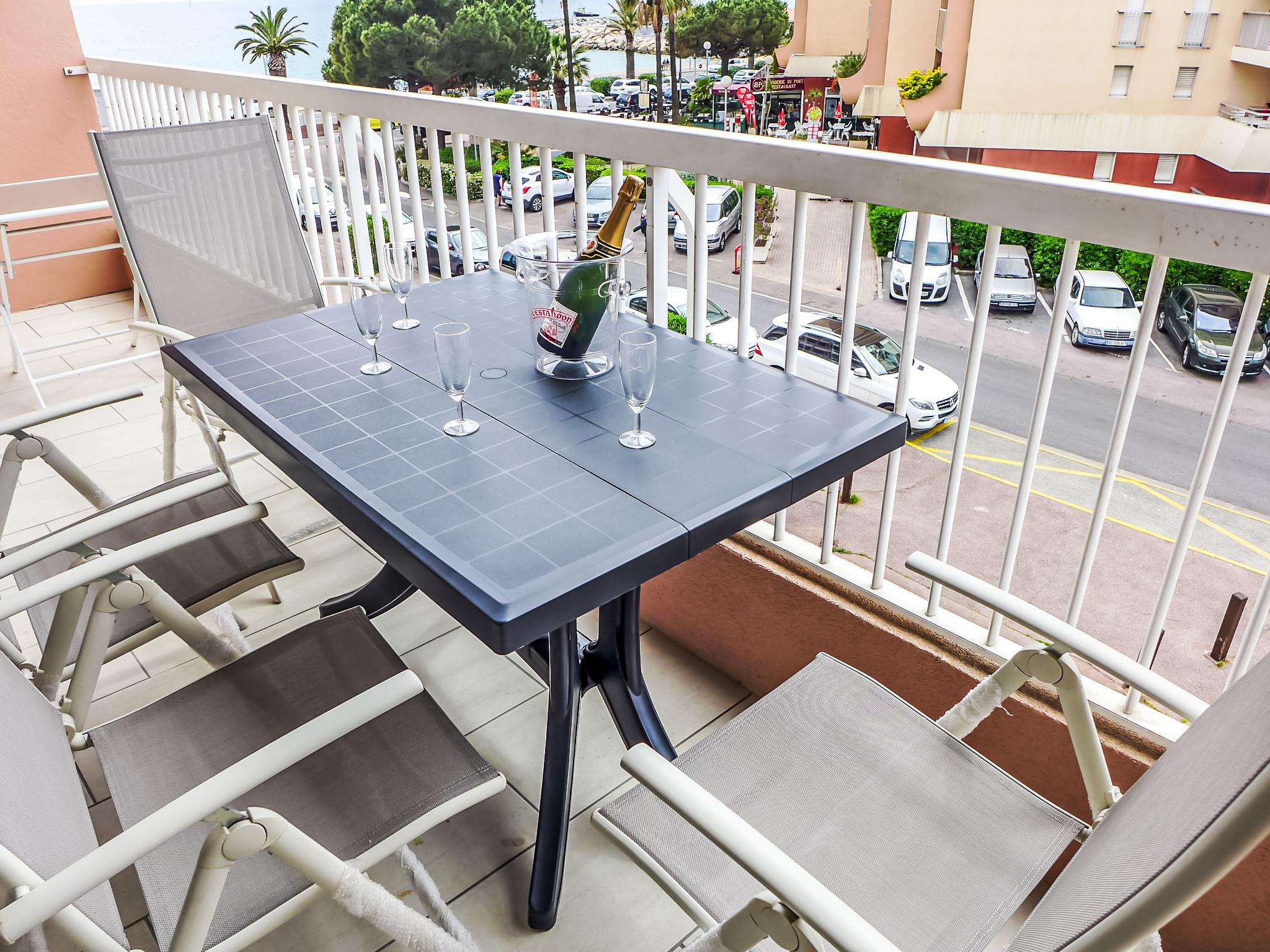 Fréjus Plage: Apartment house "Le Méditerranée", 7 storeys. 40 m from the sea, 40 m from the beach. Supermarket, restaurant 50 m, bakery 5 m, bus stop "Oasis" 290 m, railway station "Saint-Raphaël Valescure" 2 km, sandy beach "Plages de Fréjus" 40 m, diving center 200 m. Sports harbour 100 m, golf course (18 hole) 6 km. Nearby attractions: Cannes 40 km, Saint-Tropez 40 km, Nice 70 km, Gorges du Verdon 90 km. Well-known lakes can easily be reached: Sainte-Croix 90 km. Hiking paths: Estérel 8 km.