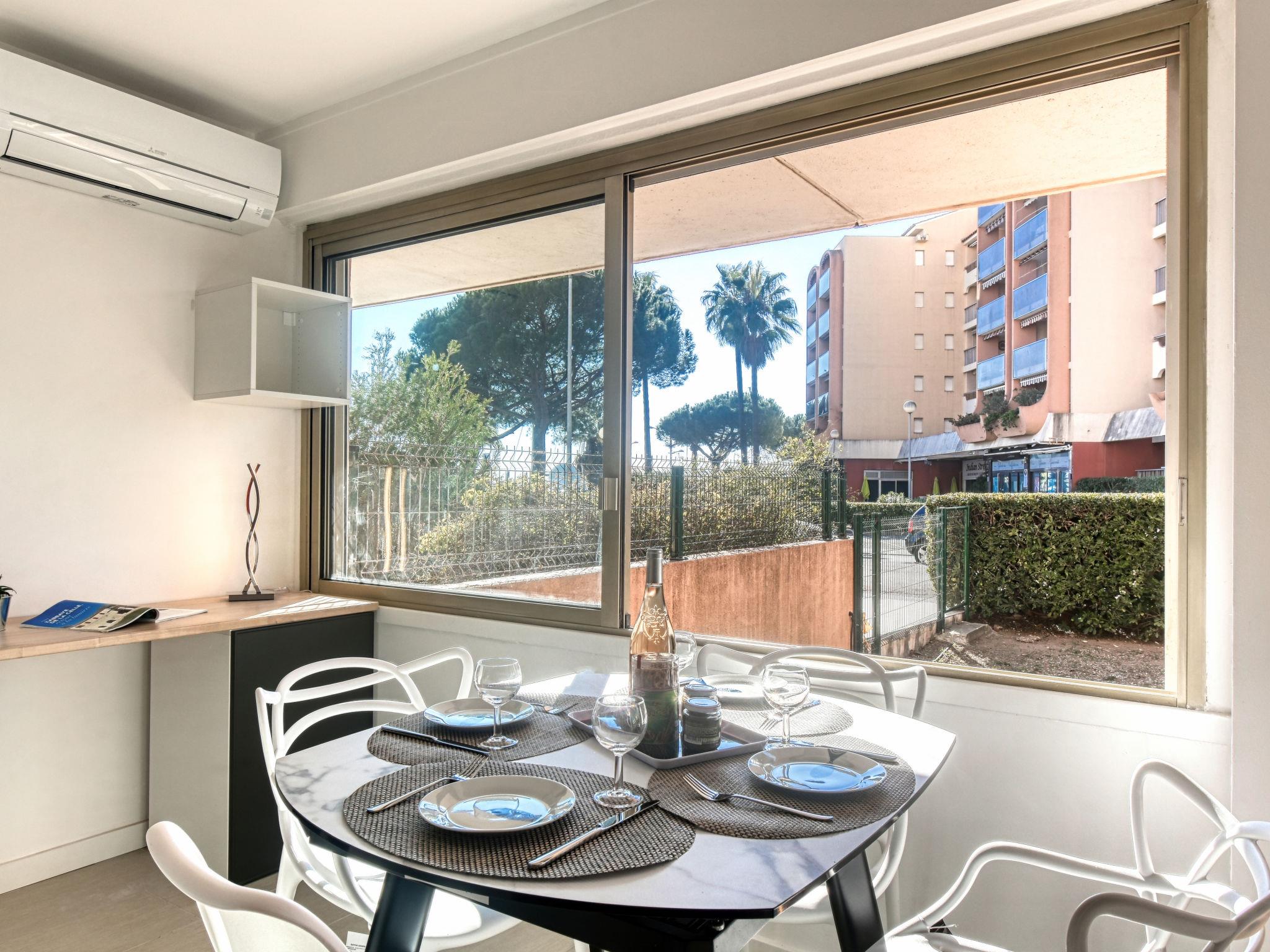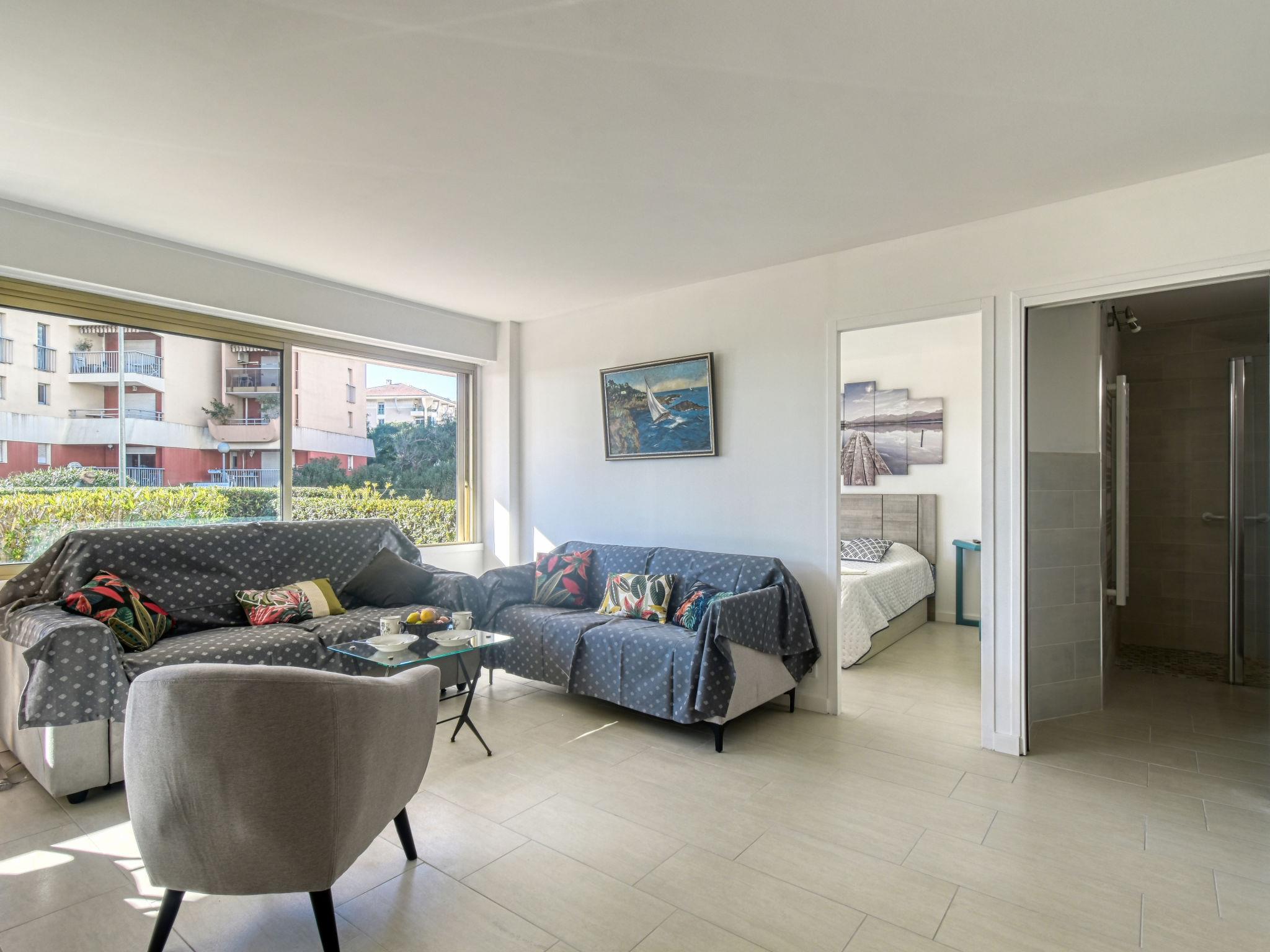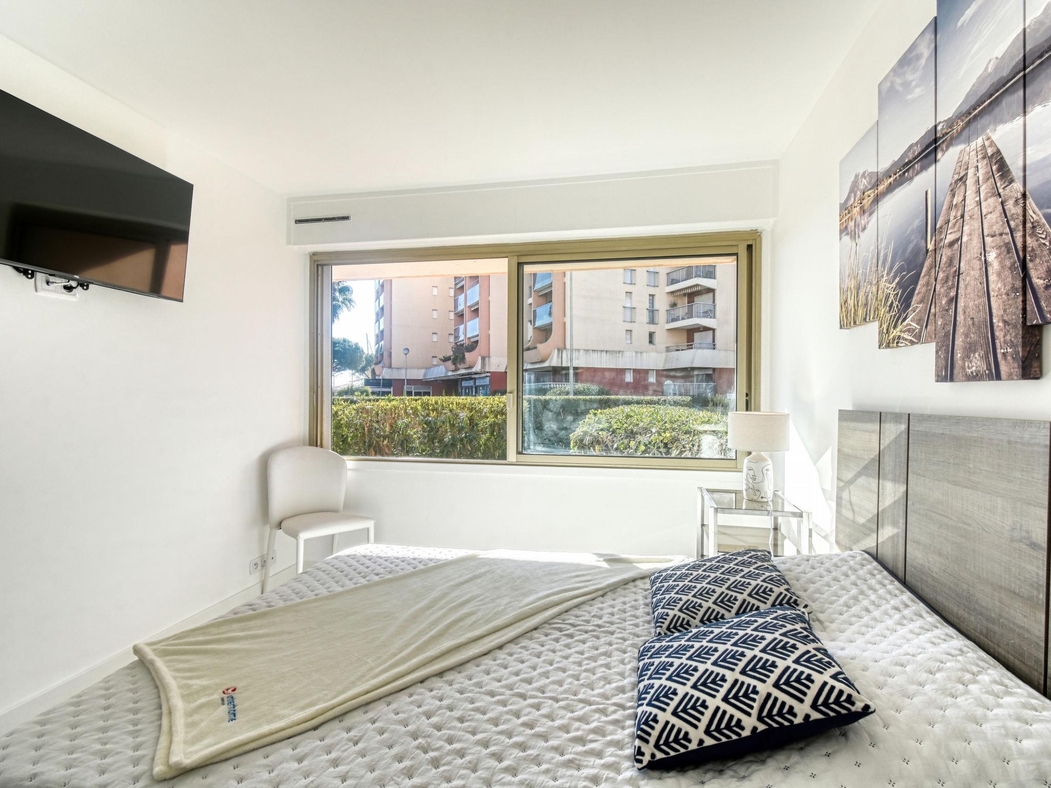 2-room apartment 46 m2, on the ground floor. Fully renovated in 2023: living/dining room with 1 double sofabed (1 x 140 cm, length 190 cm), TV and air conditioning. 1 room with 1 french bed (1 x 140 cm, length 190 cm), TV. Open kitchen (oven, dishwasher, 4 induction hot plates, toaster, kettle, microwave, freezer, electric coffee machine). Shower/WC. Electric heating. Side view of the sea. Facilities: washing machine, iron, hair dryer. Internet (WiFi, extra). Please note: non-smokers only. Maximum 1 small pet/ dog allowed. TV only FR. Smoke alarm. Offer by a private individual according to Art. 155, IV of CGI.