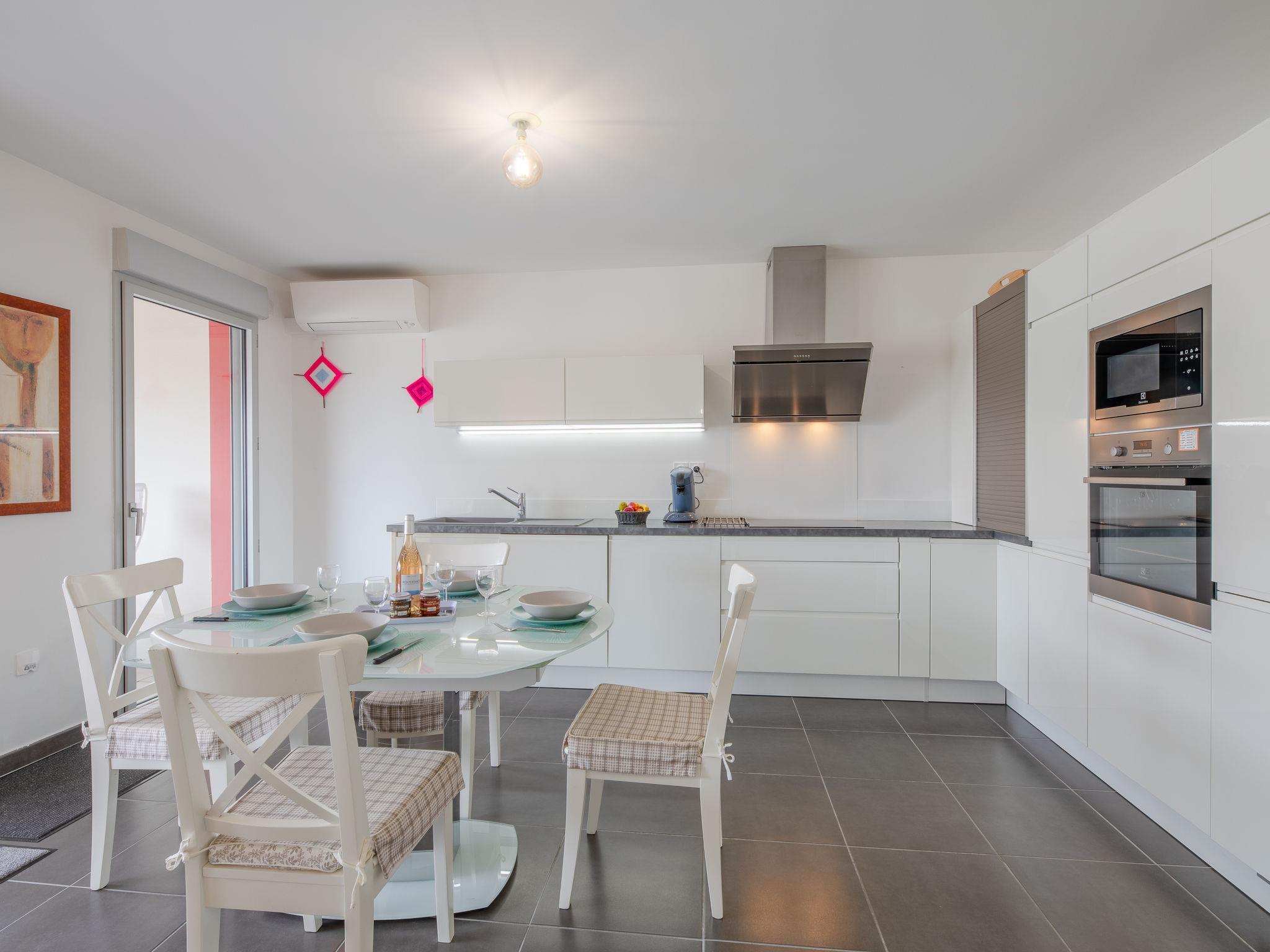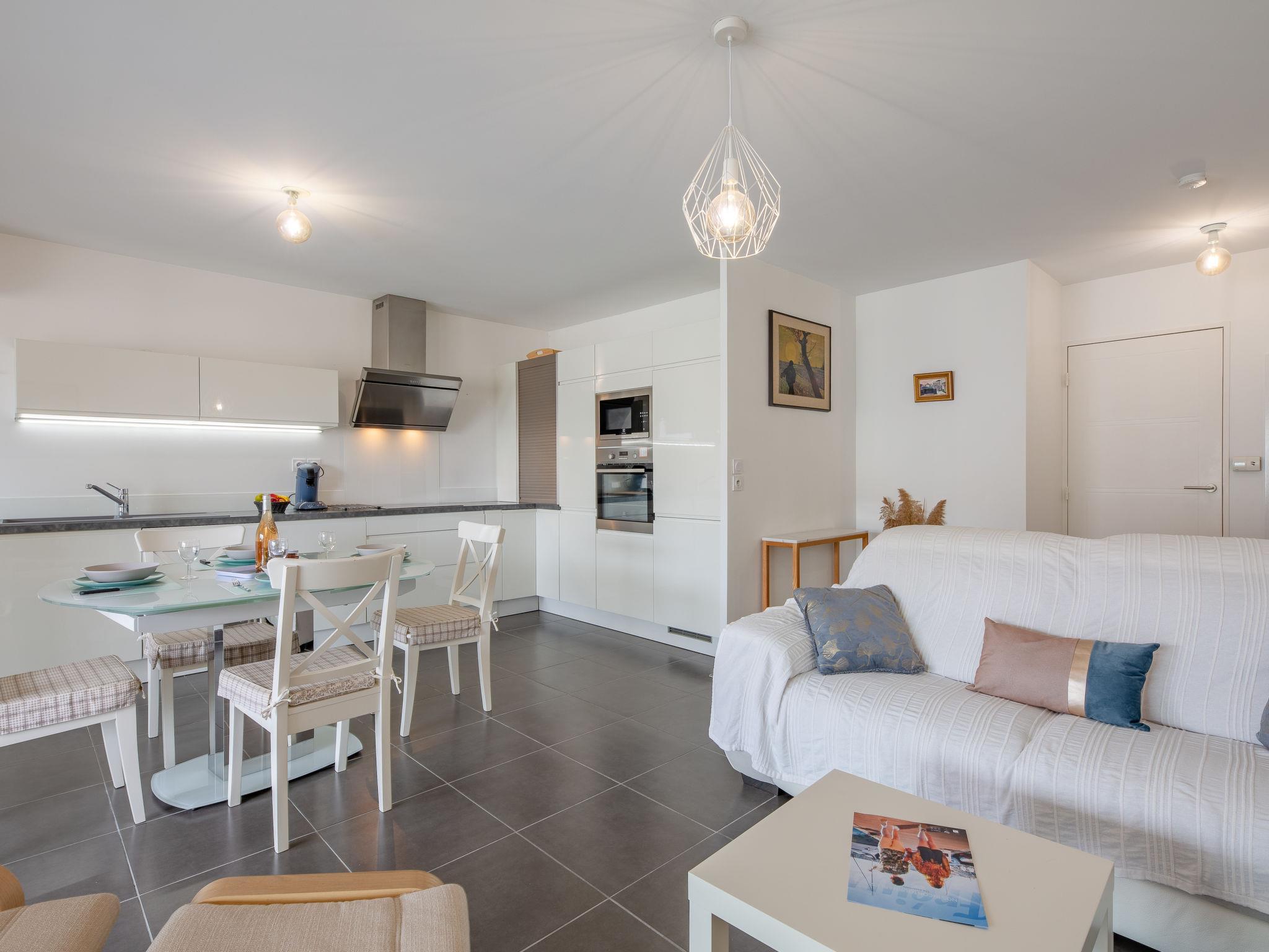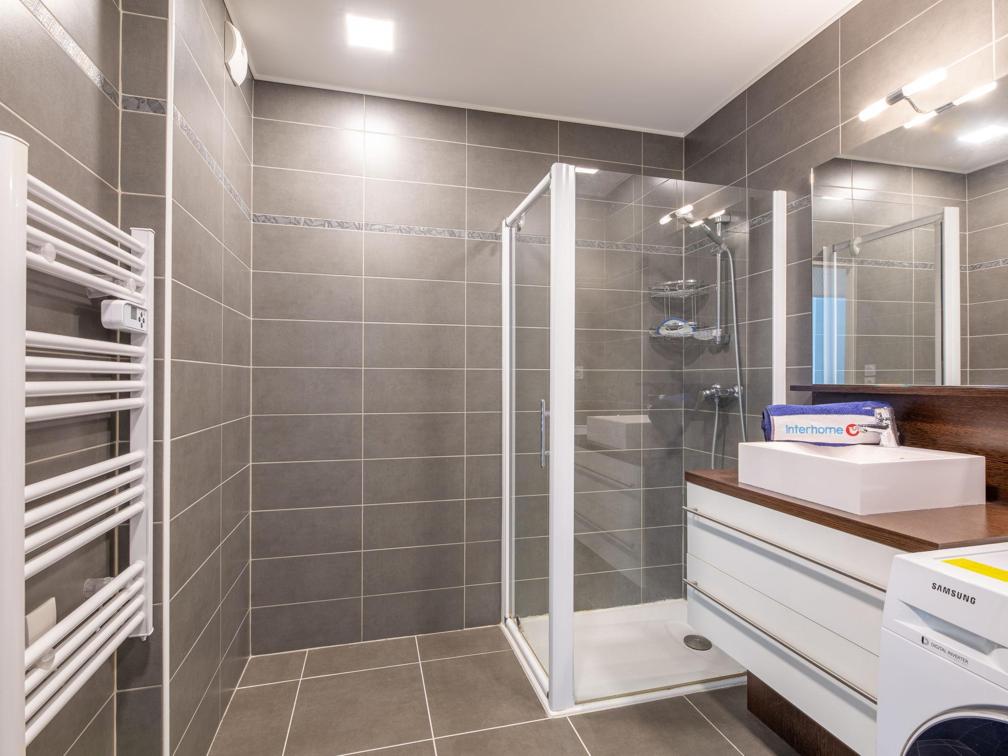 3-room apartment 66 m2 on 4th floor. Modern furnishings: living/dining room with TV, flat screen, electric heating and air conditioning. Exit to the terrace. 1 room with 1 french bed (1 x 160 cm, length 200 cm), electric heating. 1 room with 2 beds (80 cm, length 200 cm), electric heating. Open kitchen (oven, dishwasher, 4 ceramic glass hob hotplates, microwave, freezer, electric coffee machine, Capsules for coffee machine (Senseo) extra). Exit to the terrace. Shower, sep. WC. Electric heating. Terrace 13 m2. Terrace furniture. Beautiful view of the countryside. Facilities: washing machine. Internet (WiFi, free). Garage space n 104 (1 car), height 185 cm, width 240 cm. Please note: non-smokers only. Smoke alarm. Offer by a private individual according to Art. 155, IV of CGI. J02286Z