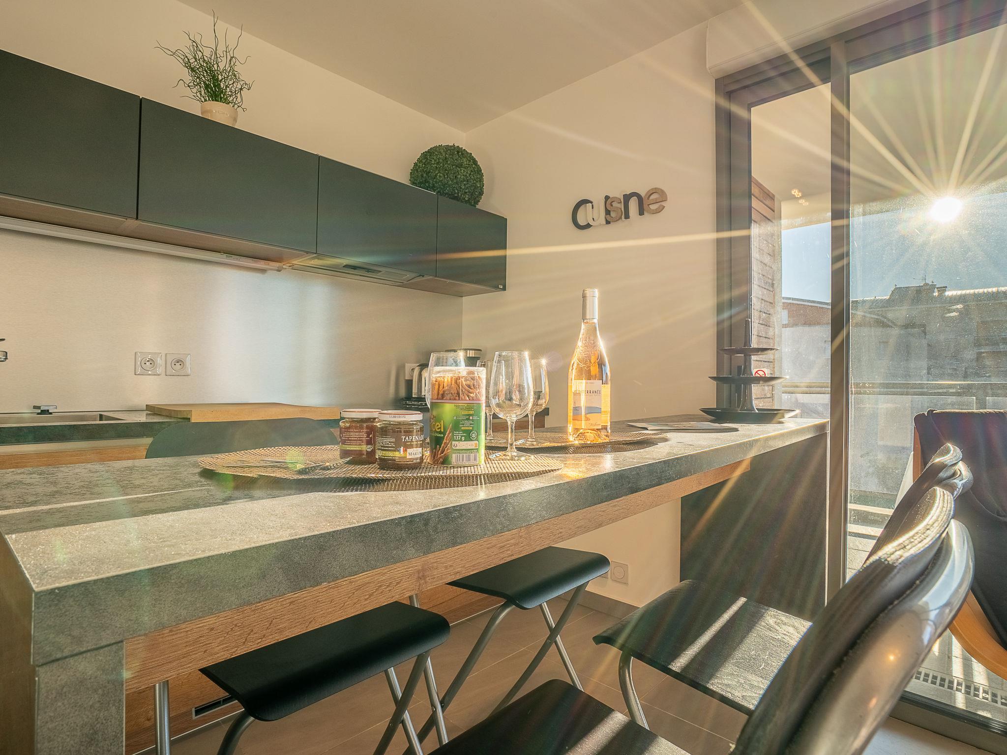 2-room apartment 43 m2 on 2nd floor. Comfortable and modern furnishings: living room with 1 sofabed (140 cm, length 190 cm), TV, hi-fi system and air conditioning. Exit to the terrace. 1 room with 1 french bed (1 x 160 cm, length 200 cm), air conditioning. Open kitchen (oven, dishwasher, 3 ceramic glass hob hotplates, toaster, kettle, freezer, electric coffee machine, combination microwave) with dining table. Shower/WC. Electric heating. Terrace 13 m2. Terrace furniture. Facilities: washing machine, dryer, iron. Internet (WiFi, free). Garage space n 32, height 190 cm, width 270 cm. Please note: non-smokers only. Smoke alarm. 830610937107