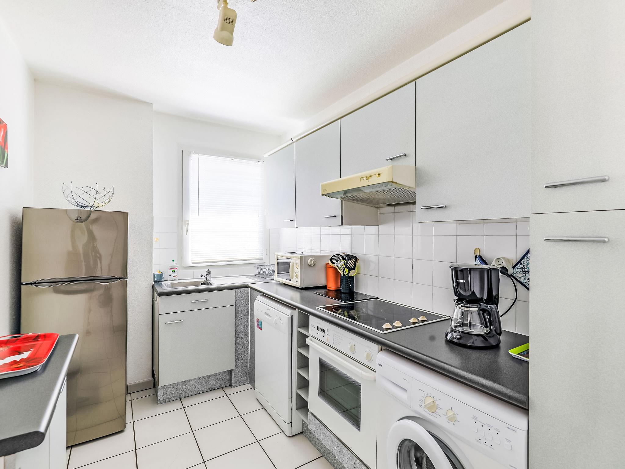 2-room apartment 48 m2 on 3rd floor. Comfortable furnishings: living/dining room with 1 double sofabed (1 x 140 cm, length 190 cm), dining table, TV, electric heating and air conditioning. Exit to the terrace. 1 room with 1 french bed (1 x 140 cm, length 190 cm), air conditioning. Kitchen (oven, dishwasher, 3 ceramic glass hob hotplates, toaster, kettle, microwave, freezer, electric coffee machine, Capsules for coffee machine (SENSEO) extra). Shower, sep. WC. Terrace. Terrace furniture. Beautiful view of the sea and the port. Facilities: washing machine, iron, hair dryer. Internet (WiFi, extra). Garage space n 60, height 185 cm, width 240 cm. Please note: non-smokers only. TV only FR. Smoke alarm.
