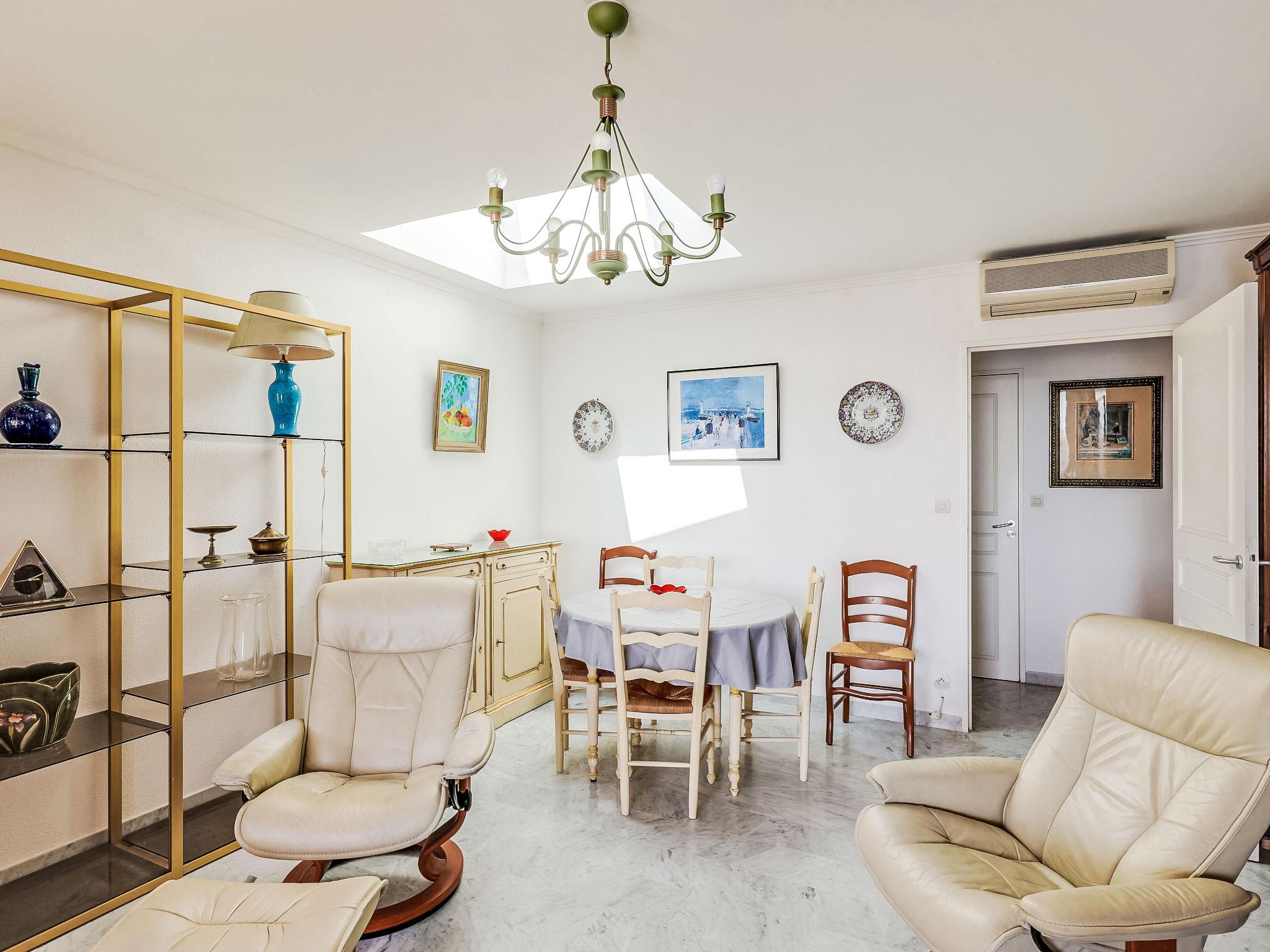 3-room apartment 65 m2 on 4th floor. Living/dining room with 1 double sofabed (1 x 140 cm, length 190 cm), dining table, TV, flat screen, electric heating and air conditioning. Exit to the terrace. 1 room with 1 double bed (1 x 160 cm, length 190 cm), air conditioning. 1 room with 2 beds (90 cm, length 190 cm). Kitchen (oven, dishwasher, 3 induction hot plates, toaster, kettle, microwave, freezer, electric coffee machine). Shower, bidet, sep. WC. Terrace 5 m2. Terrace furniture. View of the port. Facilities: washing machine, iron, hair dryer. Internet (WiFi, free). Garage space n 87, height 180 cm, width 210 cm. Please note: smoke alarm. Offer by a private individual according to Art. 155, IV of CGI.