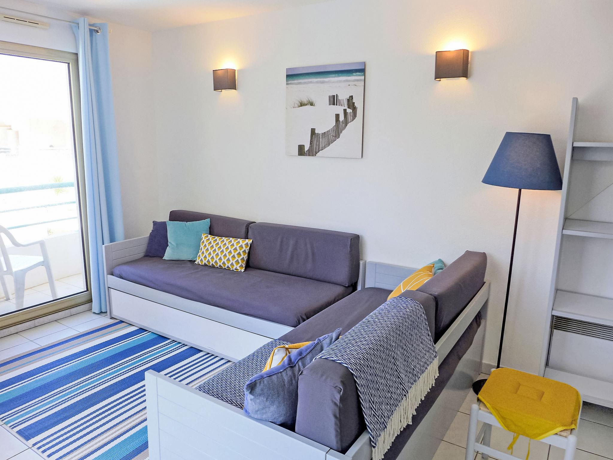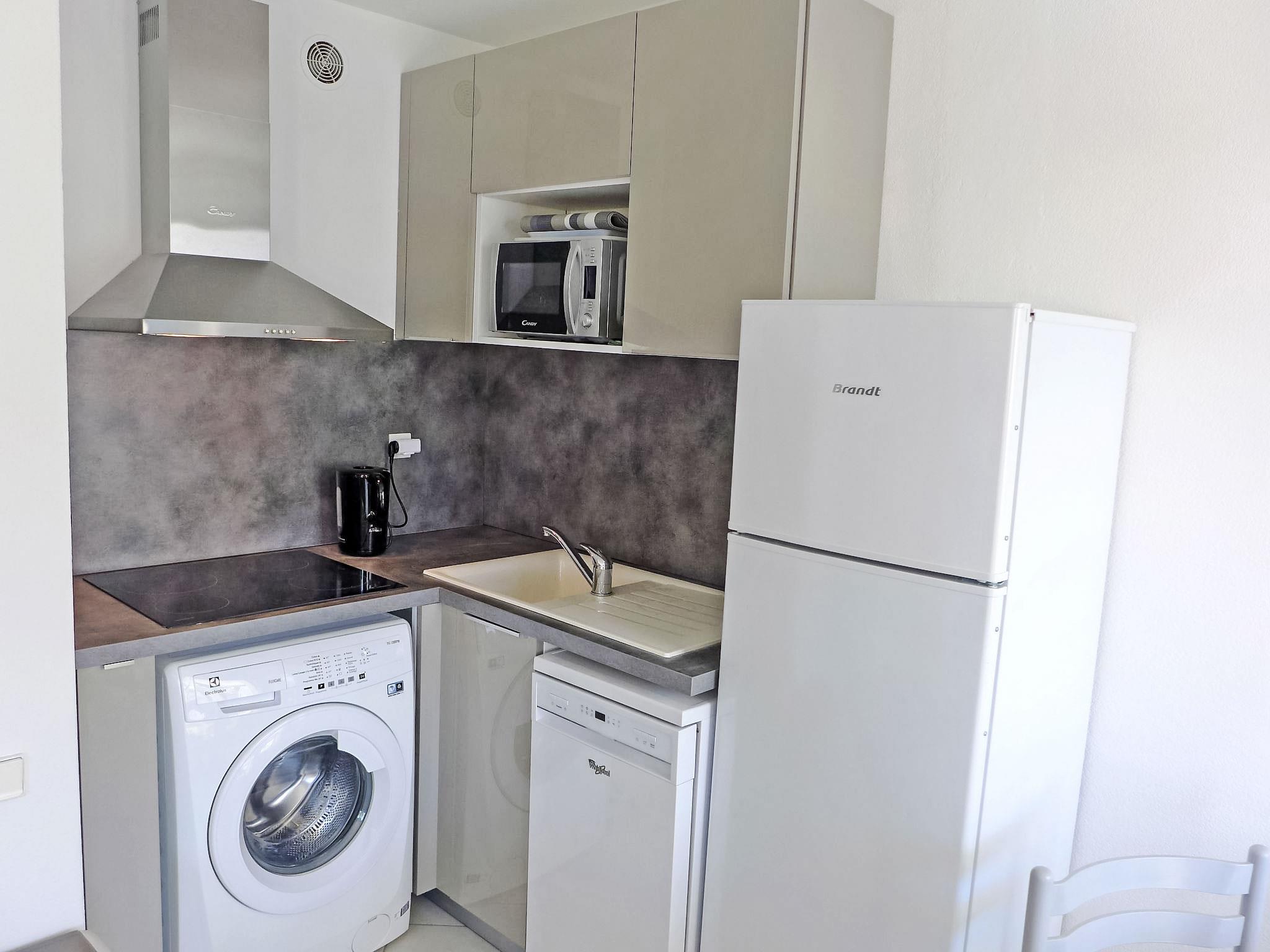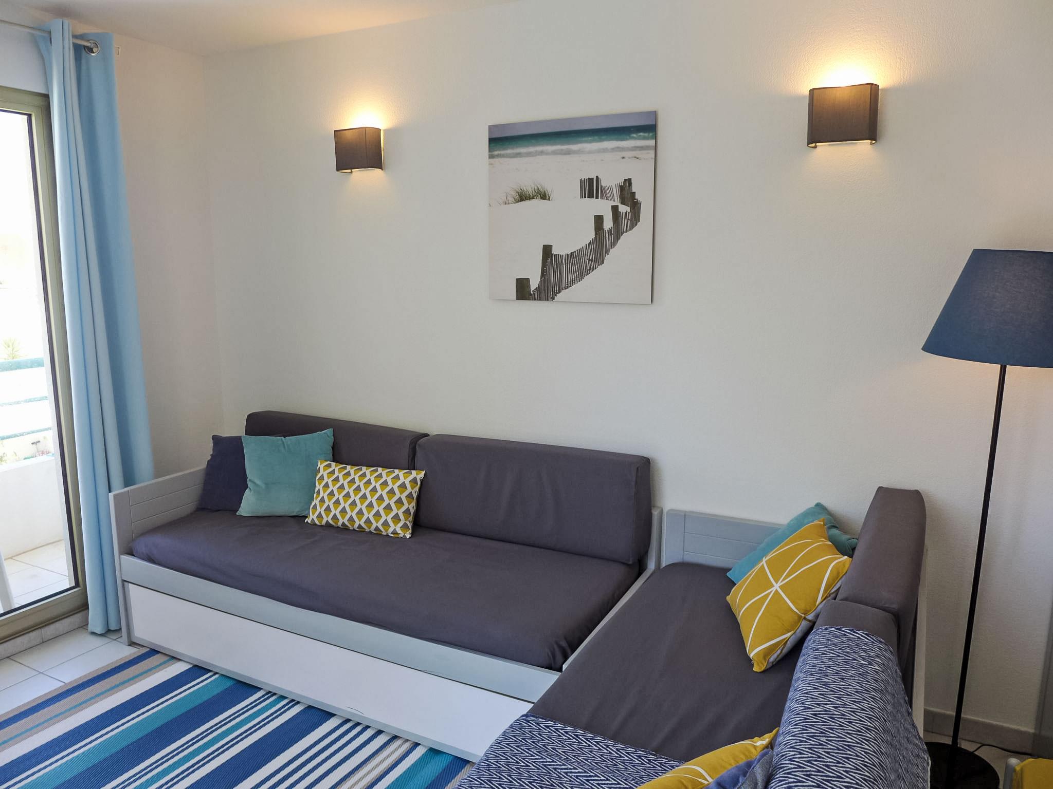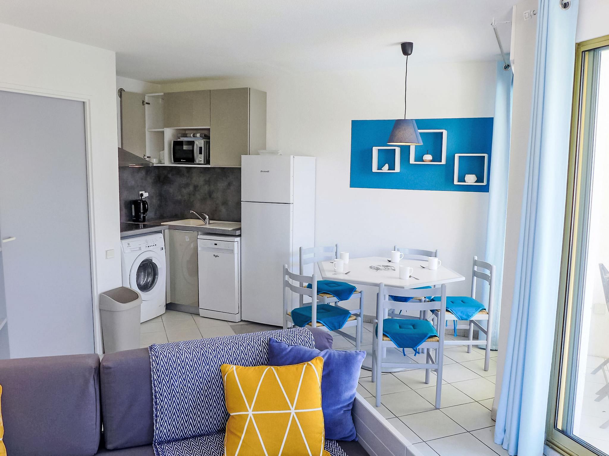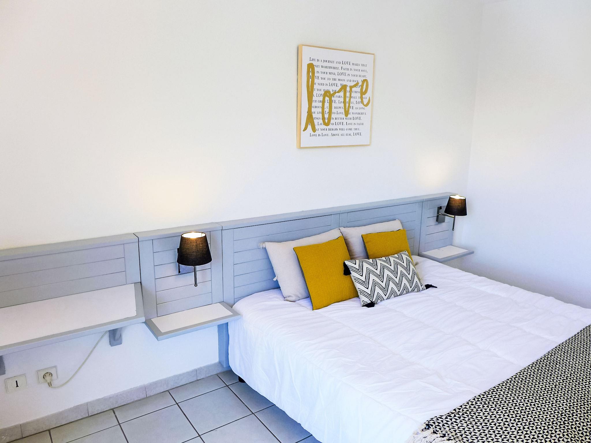 2-room apartment 42 m2 on 3rd floor. Beautiful furnishings: living/dining room with 2 beds (80 cm, length 190 cm), TV and air conditioning. Exit to the balcony. 1 room with 1 double bed (1 x 160 cm). Exit to the balcony. Open kitchen (dishwasher, 4 ceramic glass hob hotplates, toaster, kettle, microwave, freezer, electric coffee machine). Bathroom, sep. WC. Electric heating. Small balcony terrace 5 m2. Terrace furniture. View of the swimming pool and the port. Facilities: washing machine, iron, hair dryer. Internet (WiFi, free). Parking space n 7037 (roofed), height 190 cm, width 220 cm. Please note: non-smokers only. Smoke alarm.
