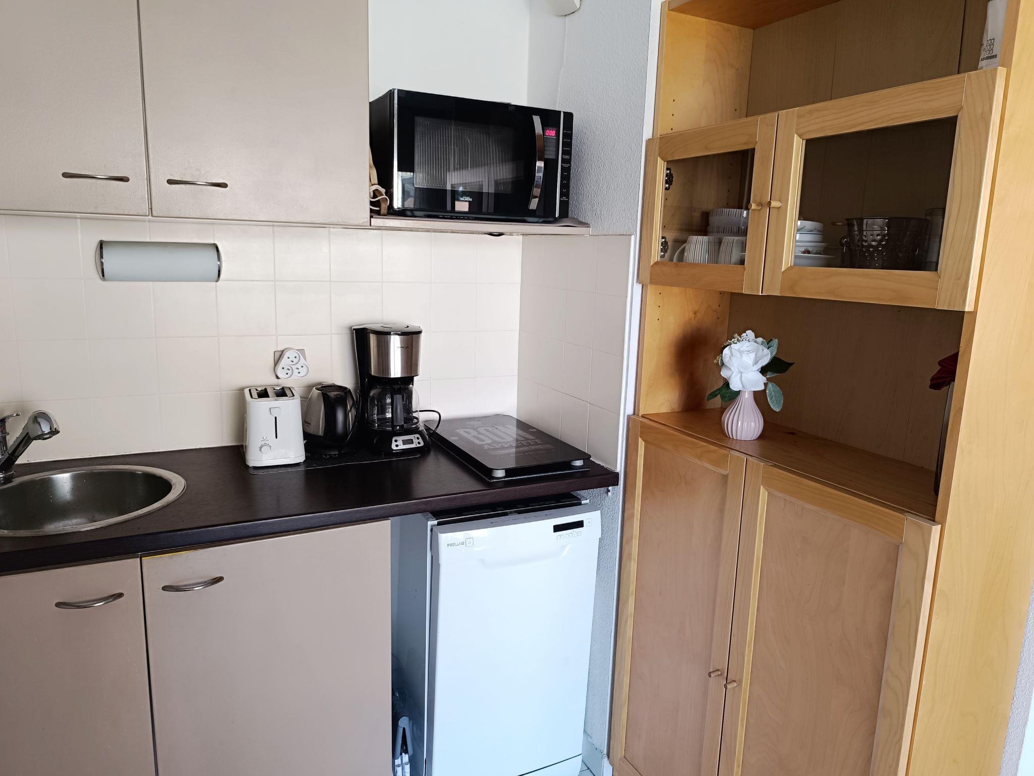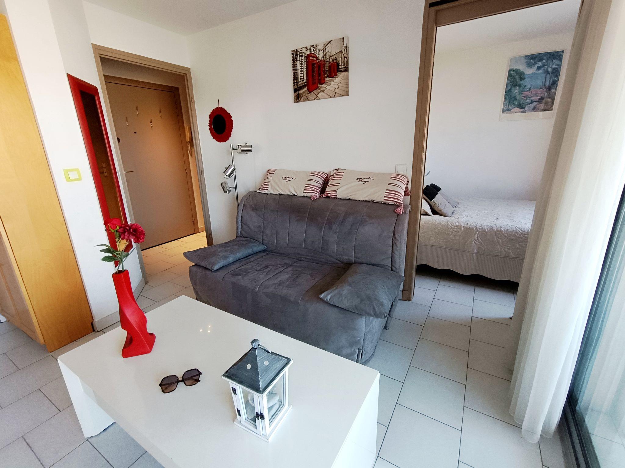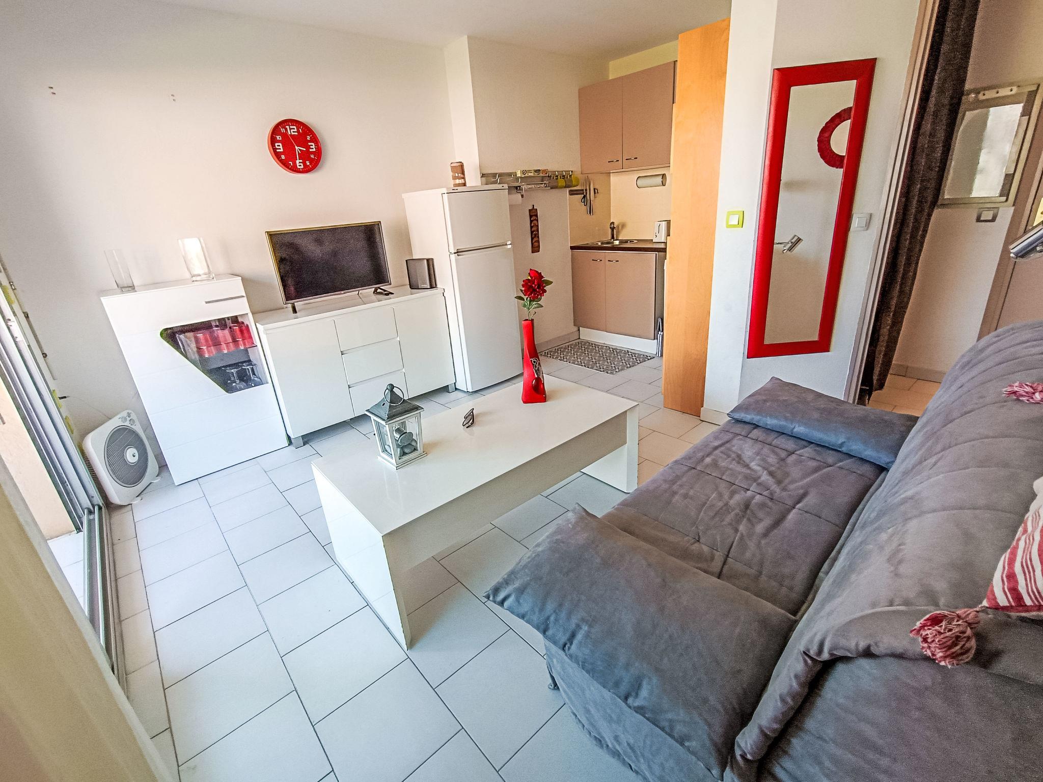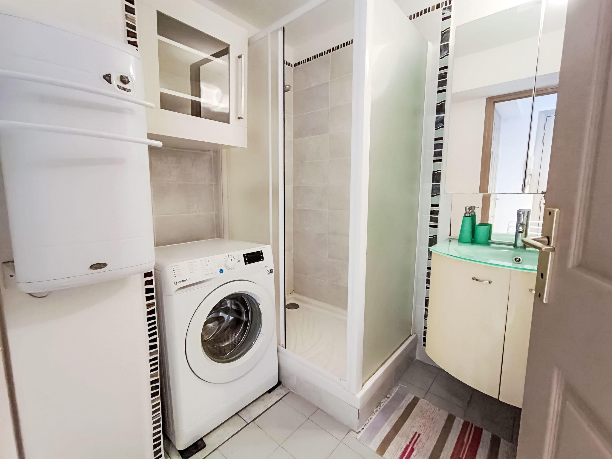 2-room apartment 27 m2 on 3rd floor. Object suitable for 2 adults + 2 children. Living/dining room with 1 double sofabed (1 x 140 cm, length 200 cm), TV, flat screen, electric heating and air conditioning. Exit to the terrace, west facing position. 1 room with 1 french bed (1 x 140 cm, length 190 cm). Kitchenette (dishwasher, 2 induction hot plates, kettle, electric coffee machine). Shower, sep. WC. Electric heating. Terrace 7 m2. Terrace furniture. Facilities: washing machine. Internet (WiFi, free). Parking space n 18 (roofed), height 190 cm, width 205 cm. Please note: non-smokers only. Maximum 1 small pet/ dog allowed. TV only FR. Smoke alarm. Offer by a private individual according to Art. 155, IV of CGI.