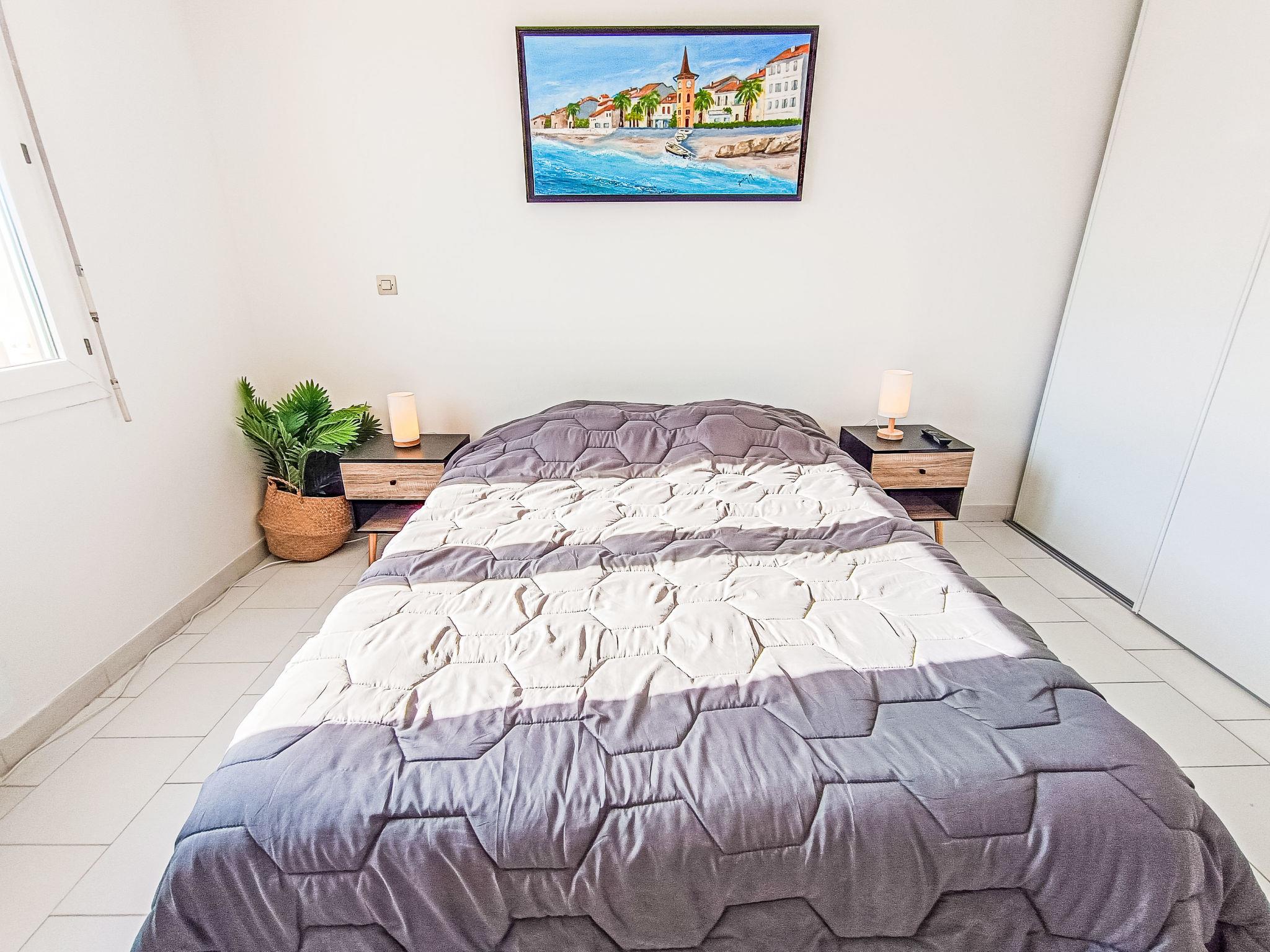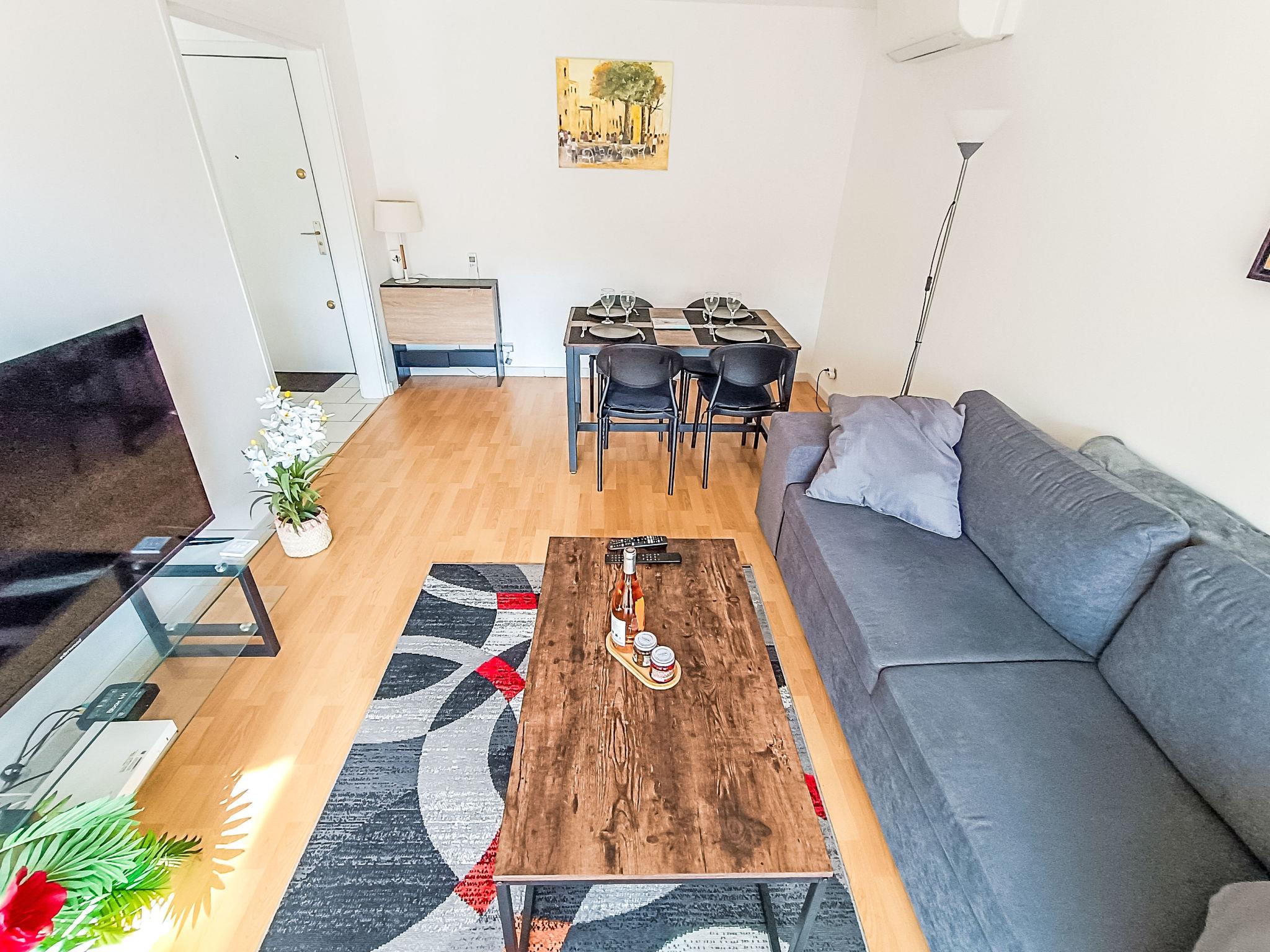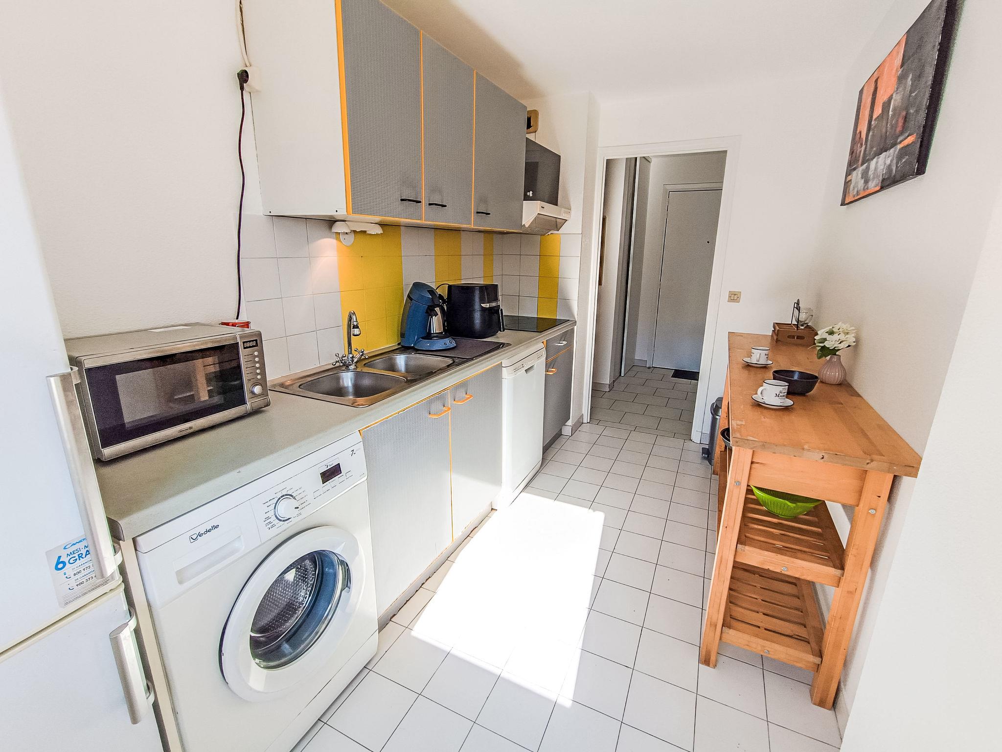 2-room apartment 44 m2 on 1st floor. Living/dining room with 1 sofabed (140 cm, length 190 cm), TV (flat screen), electric heating and air conditioning. Exit to the terrace, west facing position. 1 room with 1 french bed (1 x 140 cm, length 200 cm), TV (flat screen). (dishwasher, 4 ceramic glass hob hotplates, microwave, electric coffee machine, Capsules for coffee machine (Senseo) extra). Exit to the terrace. Bathroom, sep. WC. Electric heating. Terrace 6 m2. Terrace furniture. View of the port. Facilities: washing machine, hair dryer. Internet (WiFi, free). Garage space n 10, height 190 cm, width 235 cm. Please note: non-smokers only. Smoke alarm. Offer by a private individual according to Art. 155, IV of CGI.