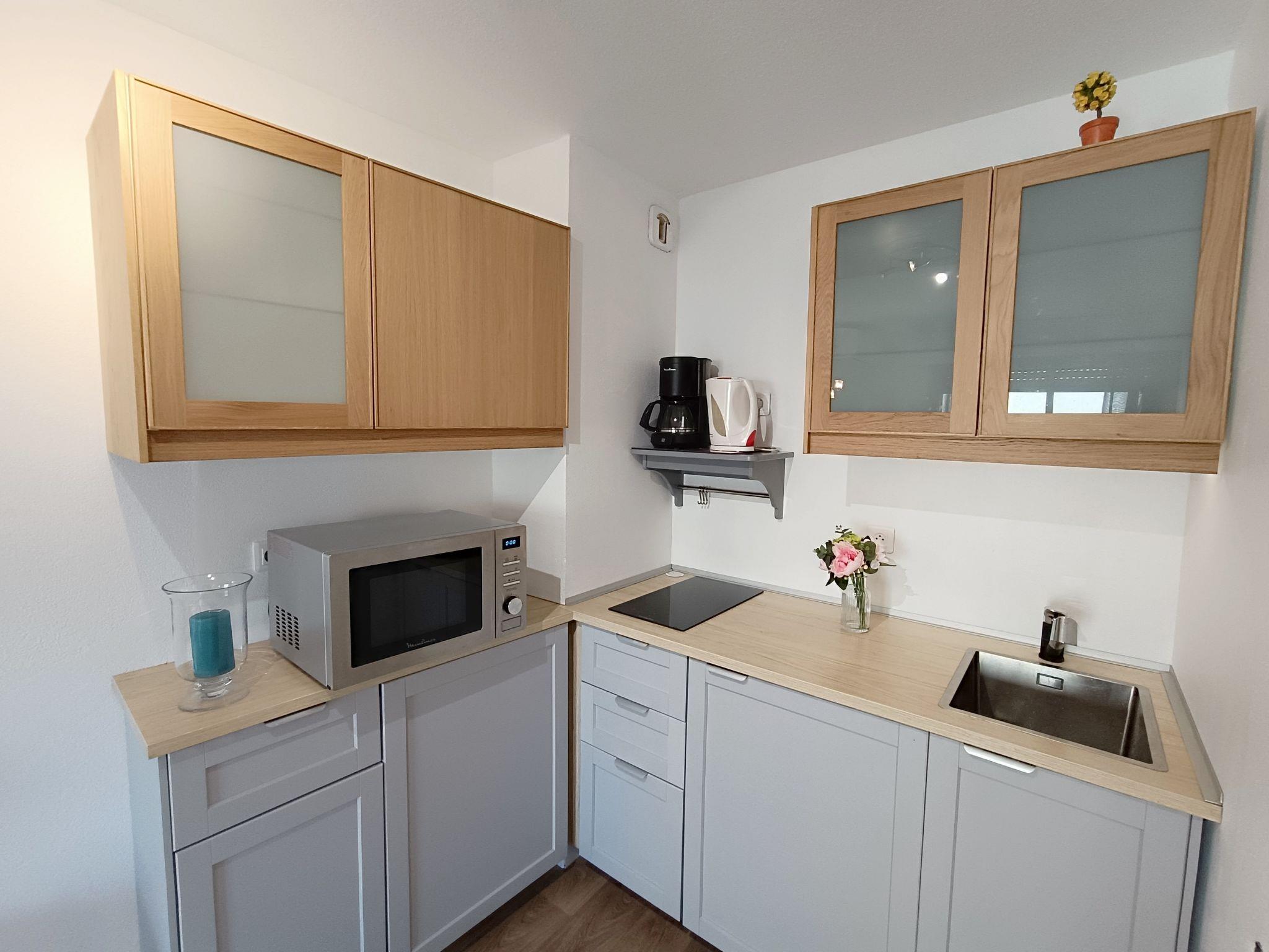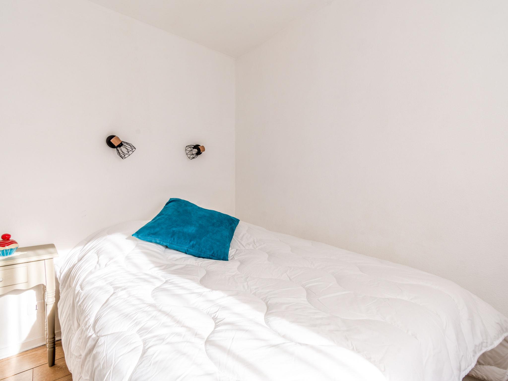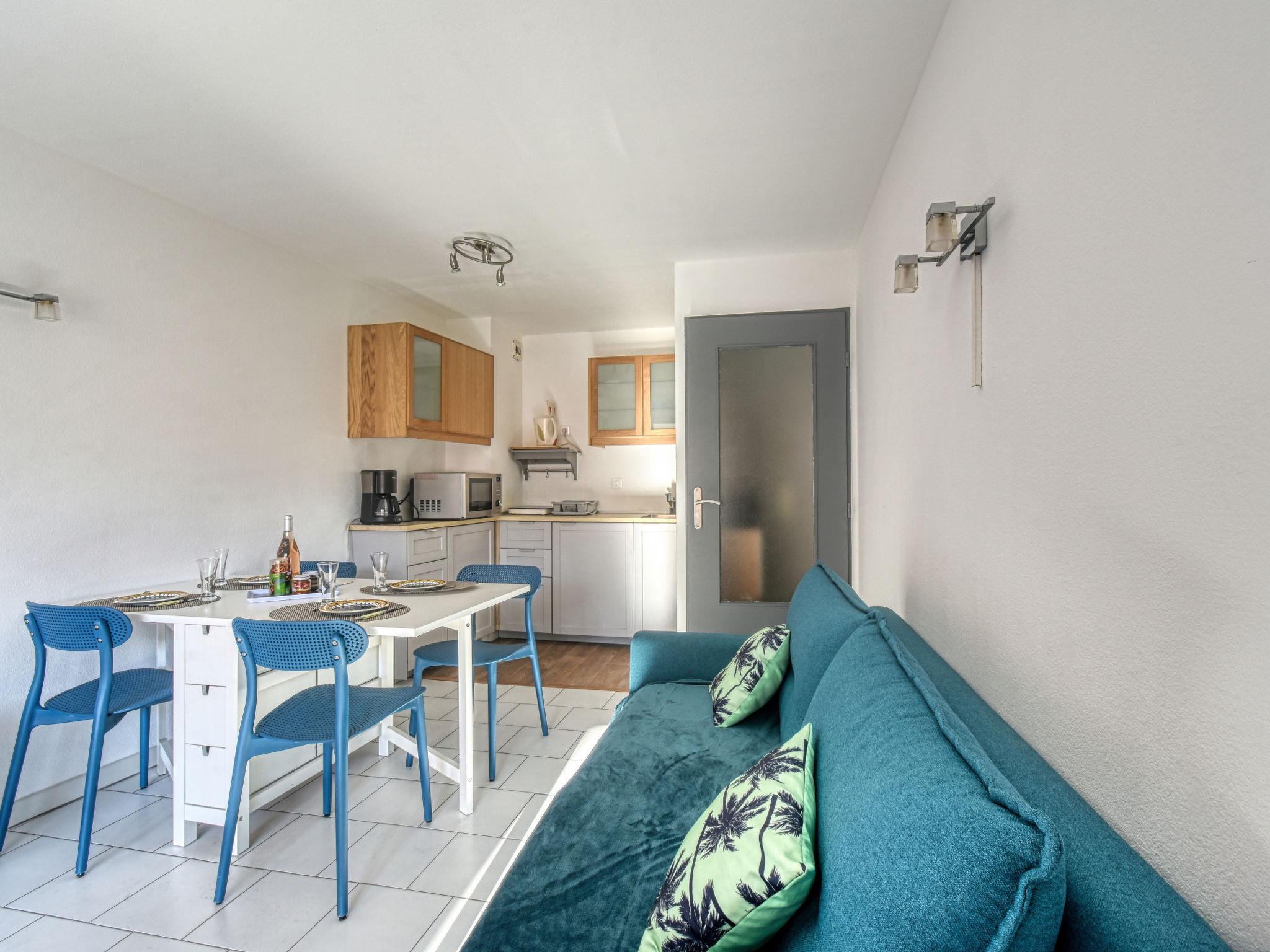 2-room apartment 29 m2 on 3rd floor. Object suitable for 2 adults + 2 children. Renovated in 2020: living/dining room with 1 double sofabed (1 x 140 cm, length 200 cm), dining nook, TV and air conditioning. Exit to the terrace. 1 small room with 1 french bed (1 x 140 cm, length 190 cm). Kitchenette (1 induction hot plates, kettle, electric coffee machine, combination microwave). Shower, sep. WC. Electric heating. Terrace. Terrace furniture. Facilities: washing machine. Internet (WiFi, extra). Parking space n 20 (roofed), height 190 cm, width 205 cm. Please note: non-smokers only. TV only FR. Smoke alarm.