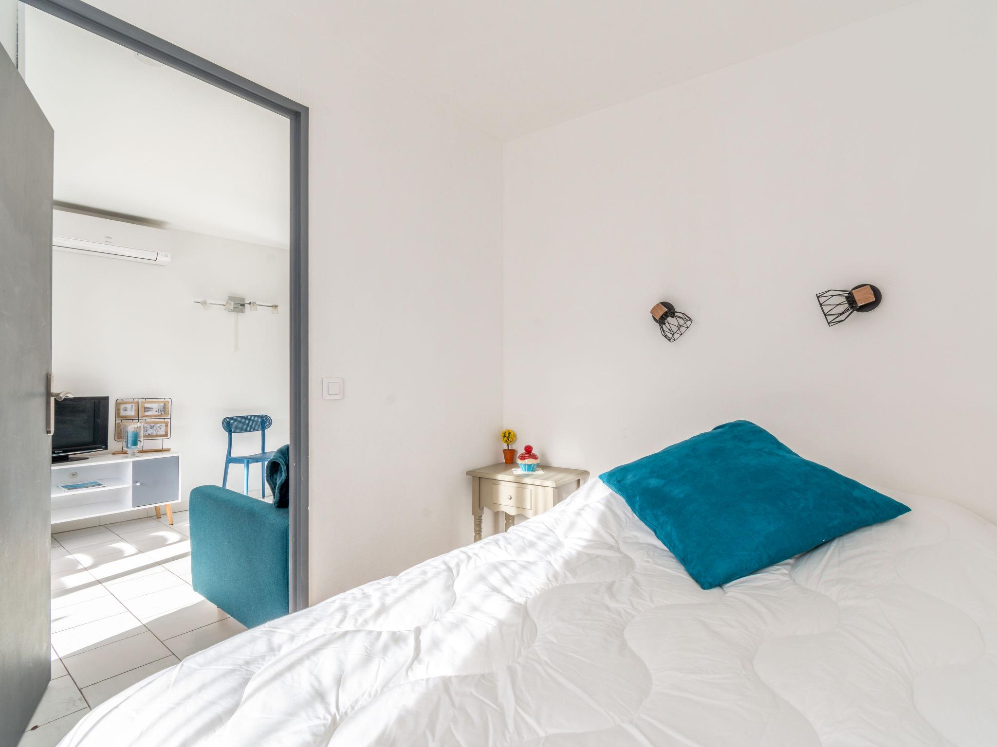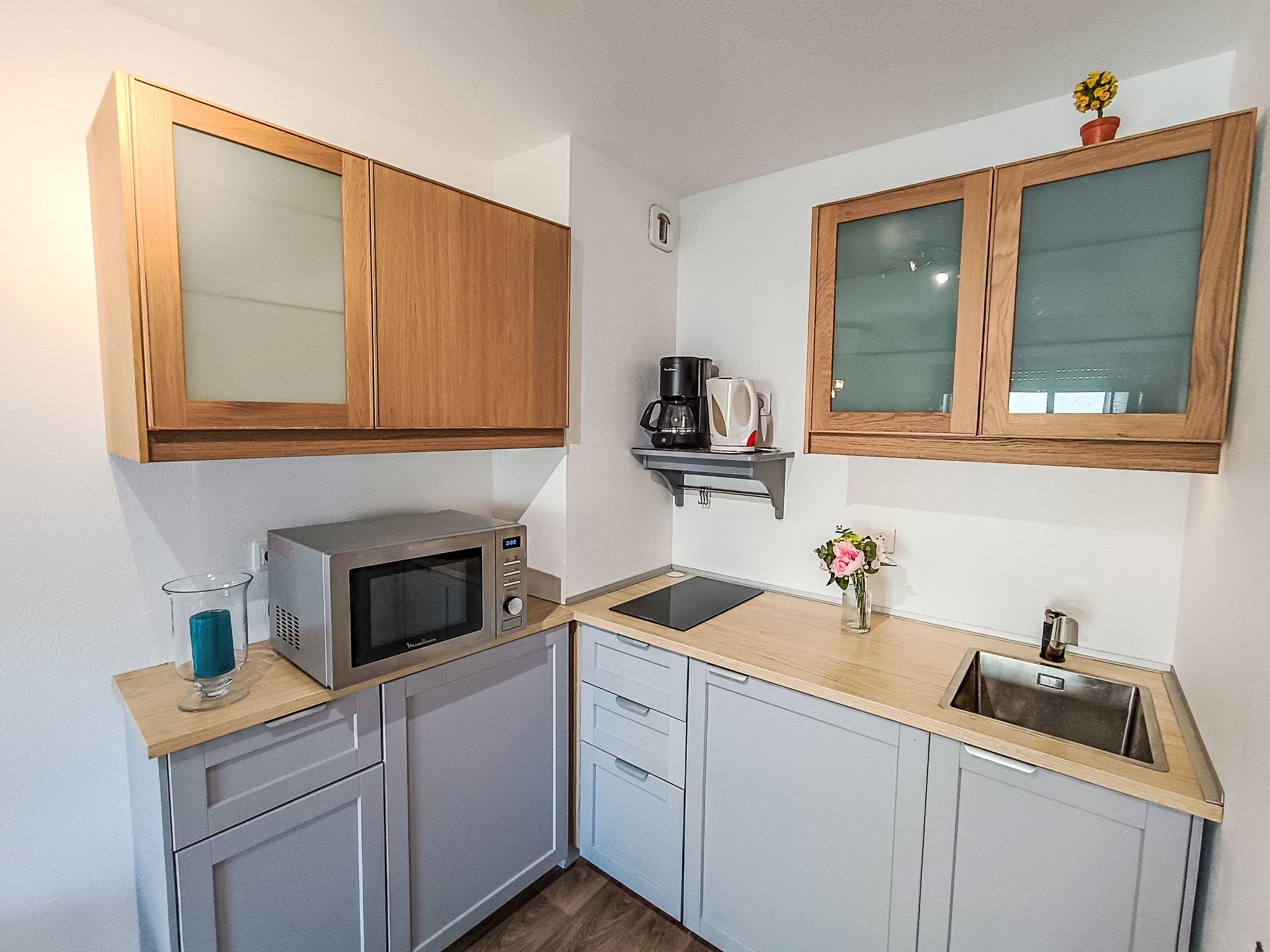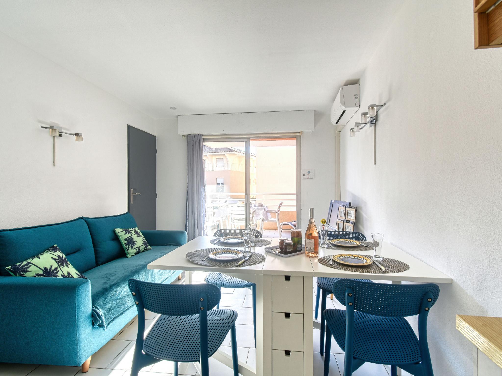 2-room apartment 29 m2 on 3rd floor. Object suitable for 2 adults + 2 children. Renovated in 2020: living/dining room with 1 double sofabed (1 x 140 cm, length 200 cm), dining nook, TV and air conditioning. Exit to the terrace. 1 small room with 1 french bed (1 x 140 cm, length 190 cm). Kitchenette (1 induction hot plates, kettle, electric coffee machine, combination microwave). Shower, sep. WC. Electric heating. Terrace. Terrace furniture. Facilities: washing machine. Internet (WiFi, extra). Parking space n 20 (roofed), height 190 cm, width 205 cm. Please note: non-smokers only. TV only FR. Smoke alarm.
