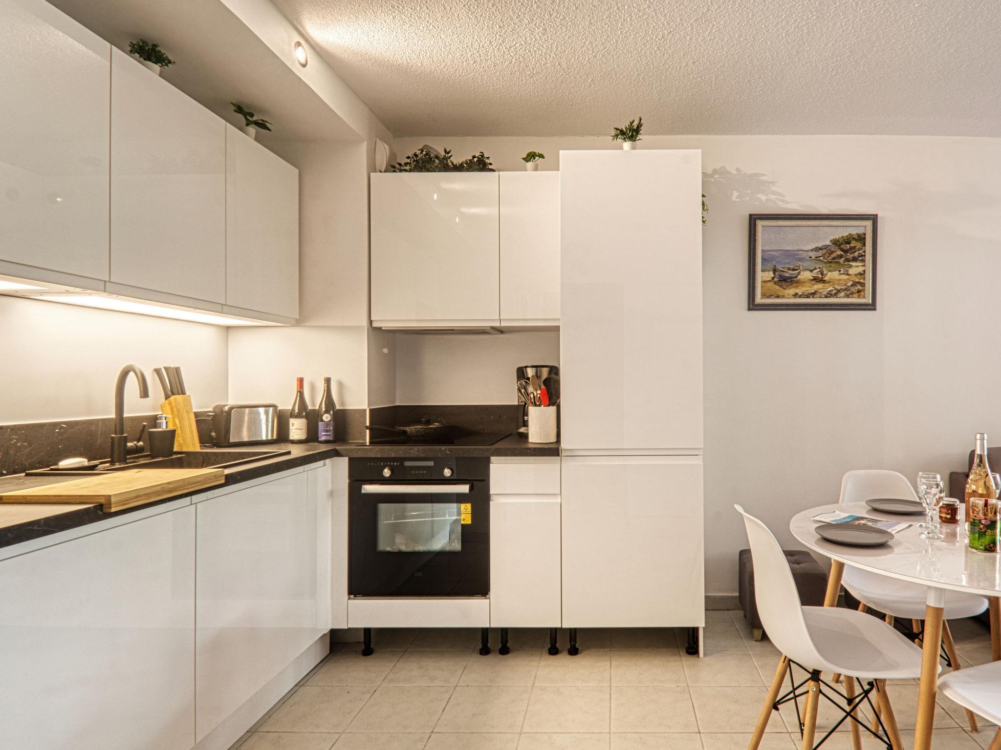 2-room apartment 38 m2, on the ground floor. Renovated in 2023: living room with 1 double sofabed (1 x 140 cm, length 190 cm), flat screen, electric heating, air conditioning and electric shutters. Exit to the terrace. 1 room with 1 french bed (1 x 160 cm, length 200 cm), flat screen. Open kitchen (oven, dishwasher, 4 induction hot plates, toaster, kettle, microwave, freezer, electric coffee machine). Bathroom, sep. WC. Terrace 7 m2. Terrace furniture. View of the garden. Facilities: washing machine, iron, hair dryer. Internet (WiFi, free). Please note: non-smokers only. Smoke alarm. Offer by a private individual according to Art. 155, IV of CGI.