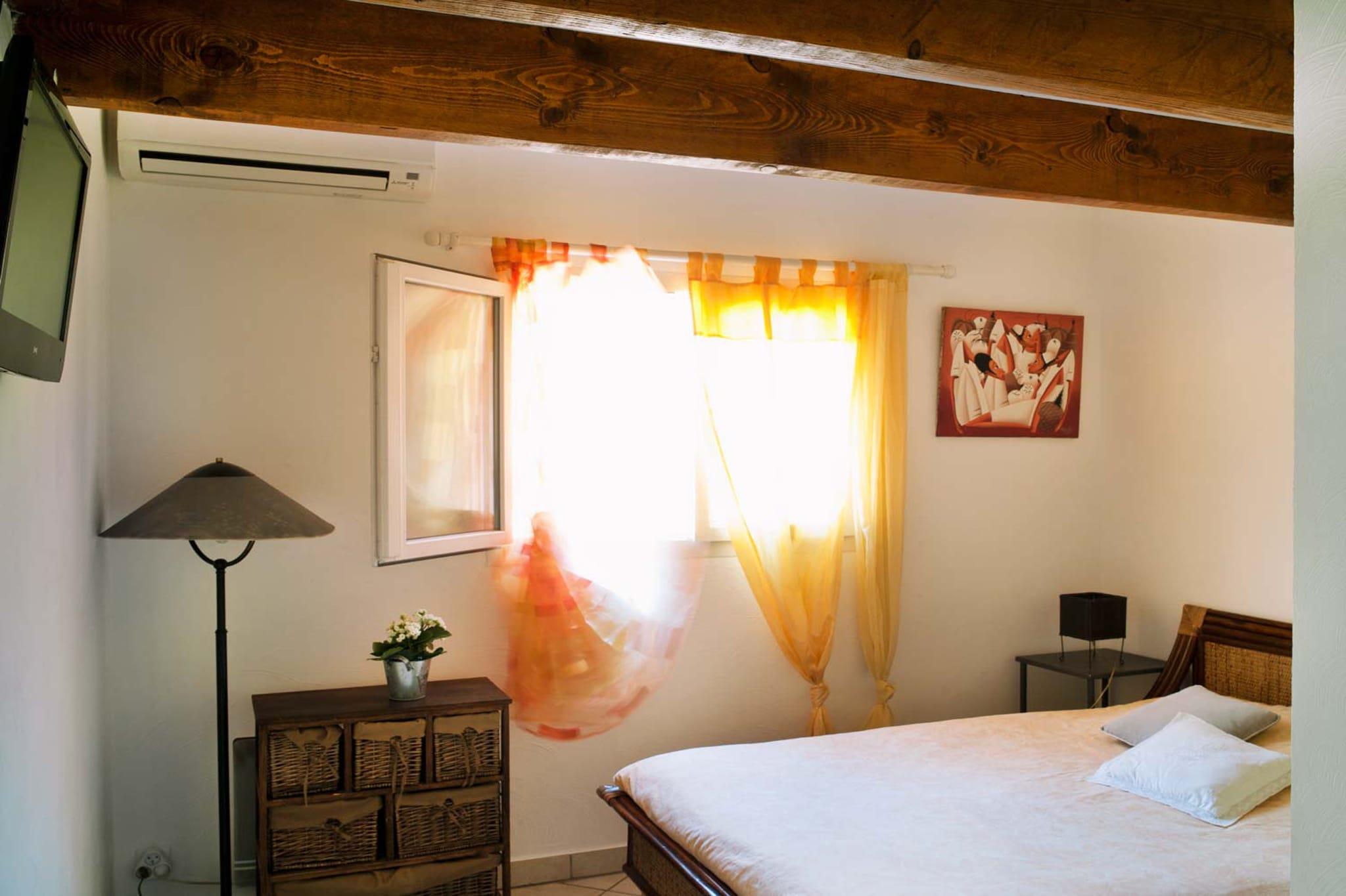 Beliggende i Fréjus er dette rummelige 3-værelses feriehus perfekt til familier eller en lille gruppe venner. Det har en privat swimmingpool og en dejlig have med terrasse og havemøbler, hvor du kan slappe af i solskinnet. Der er gratis WiFi overalt på ejendommen, og en grillopstilling giver jer mulighed for at nyde udendørs måltider sammen. Kun 3 km fra havet og lokale restauranter er dette hjem ideelt beliggende til stranddage og spisning. En fredfyldt sø ligger kun 1 km væk, perfekt til vandreture i naturen eller picnic. Sportsentusiaster kan nyde ridning 5 km eller en kamp på tennisbanen kun 1 km fra hjemmet. Supermarkeder er bekvemt placeret 3 km for alle dine væsentlige ting. Indvendigt er boligen børnevenlig og veludstyret med satellit-tv, hyggelig pejs og moderne køkken med opvaskemaskine. En barneseng og høj stol er til rådighed for familier med små børn. Kæledyr er velkomne, hvilket gør det til en all-round familievenlig tilflugtssted. Den nærmeste lufthavn ligger kun 50 km væk for nem adgang til og fra din feriedestination.