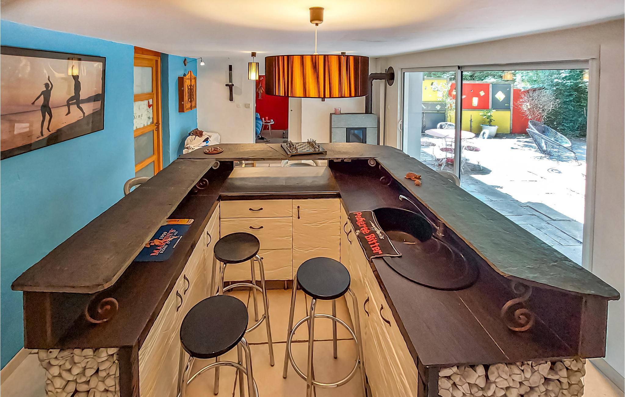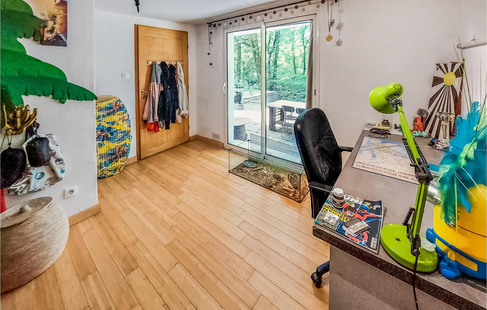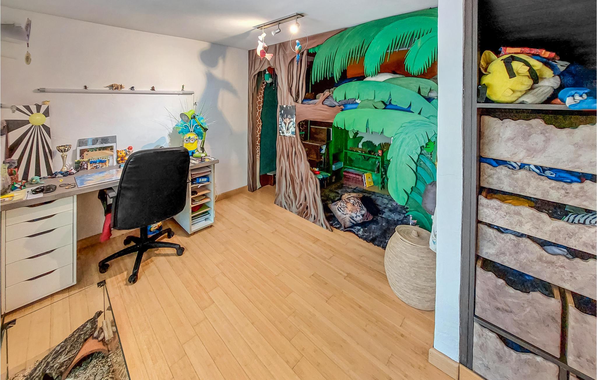 Drømmer I om en sjov familieferie tæt på smuk natur? Så ville dette fantastiske feriehus med en række faciliteter for unge og gamle være det perfekte valg. Dette rummelige feriehus byder jer velkommen til den vestlige del af Lyon i et roligt boligområde. Det farverige interiør strækker sig over to etager og gør et velkendt og livligt indtryk. Udfordr jer selv til jeres yndlings Nintendo-spil, eller se en sjov film i hjemmebiografen. Huset har endda en garderobe og en lille scene, hvor børnene kan klæde sig ud og have det sjovt. Ikke kun inde, men også udenfor huset har mange aktiviteter at byde på. I den rolige private have kan hele familien hygge sig med en omgang basketball eller bordfodbold, og de yngste feriegæster kan svinge eller slippe dampen i legehuset. I kan også nyde godt af det store udekøkken, hvor I også kan tilberede jeres lækkerier udendørs. I bor meget tæt på landsbyens centrum af Francheville le Haut med små butikker og et supermarked. På 20 minutter i bil kan I nå det centralt beliggende Place Bellecour i Lyon.