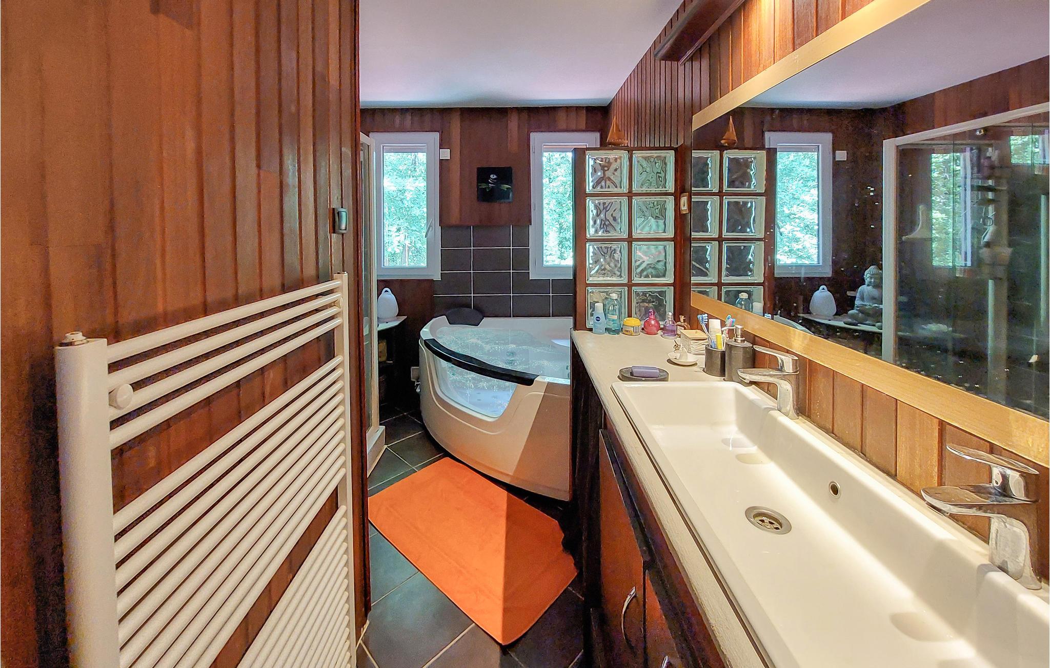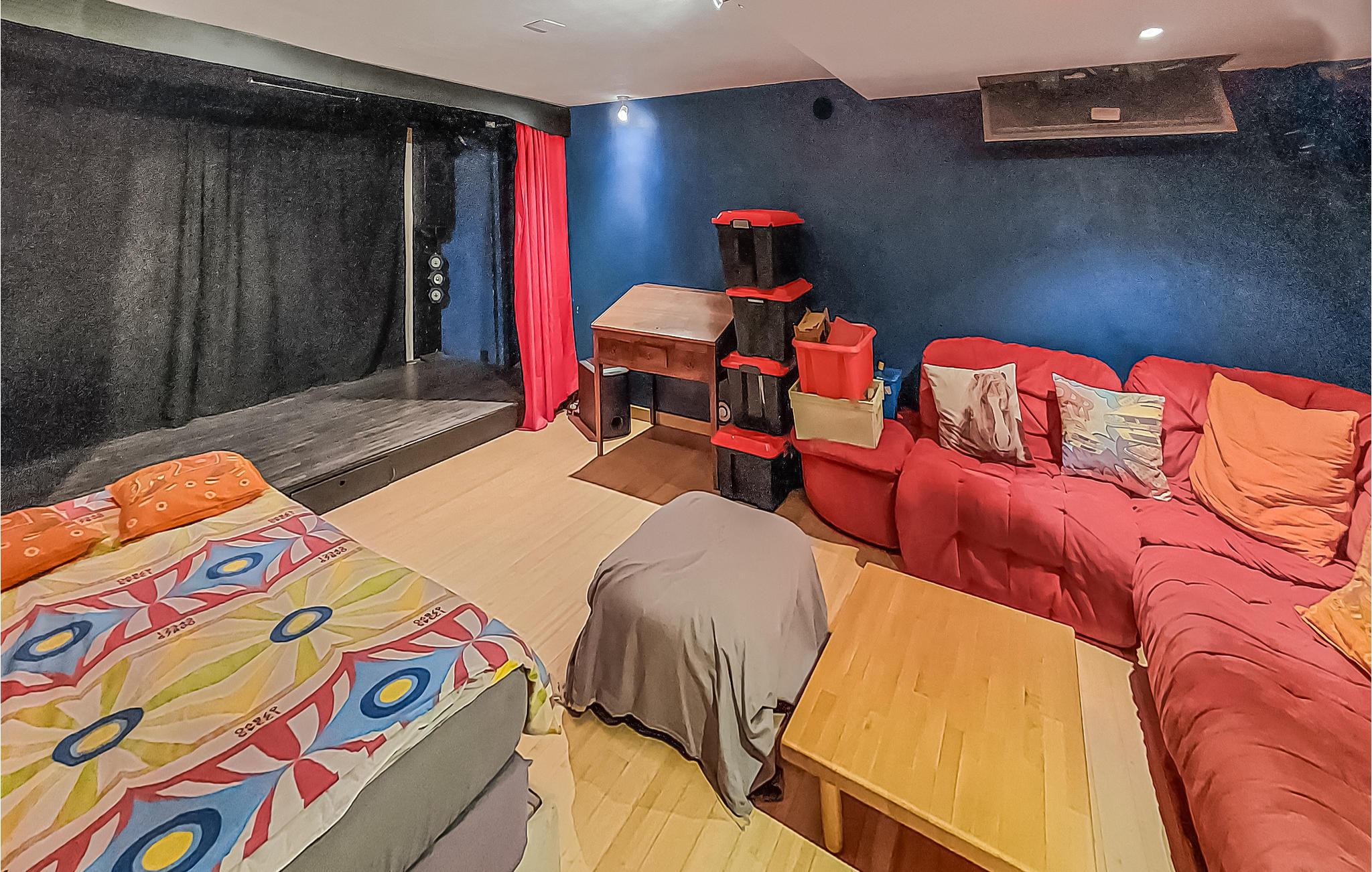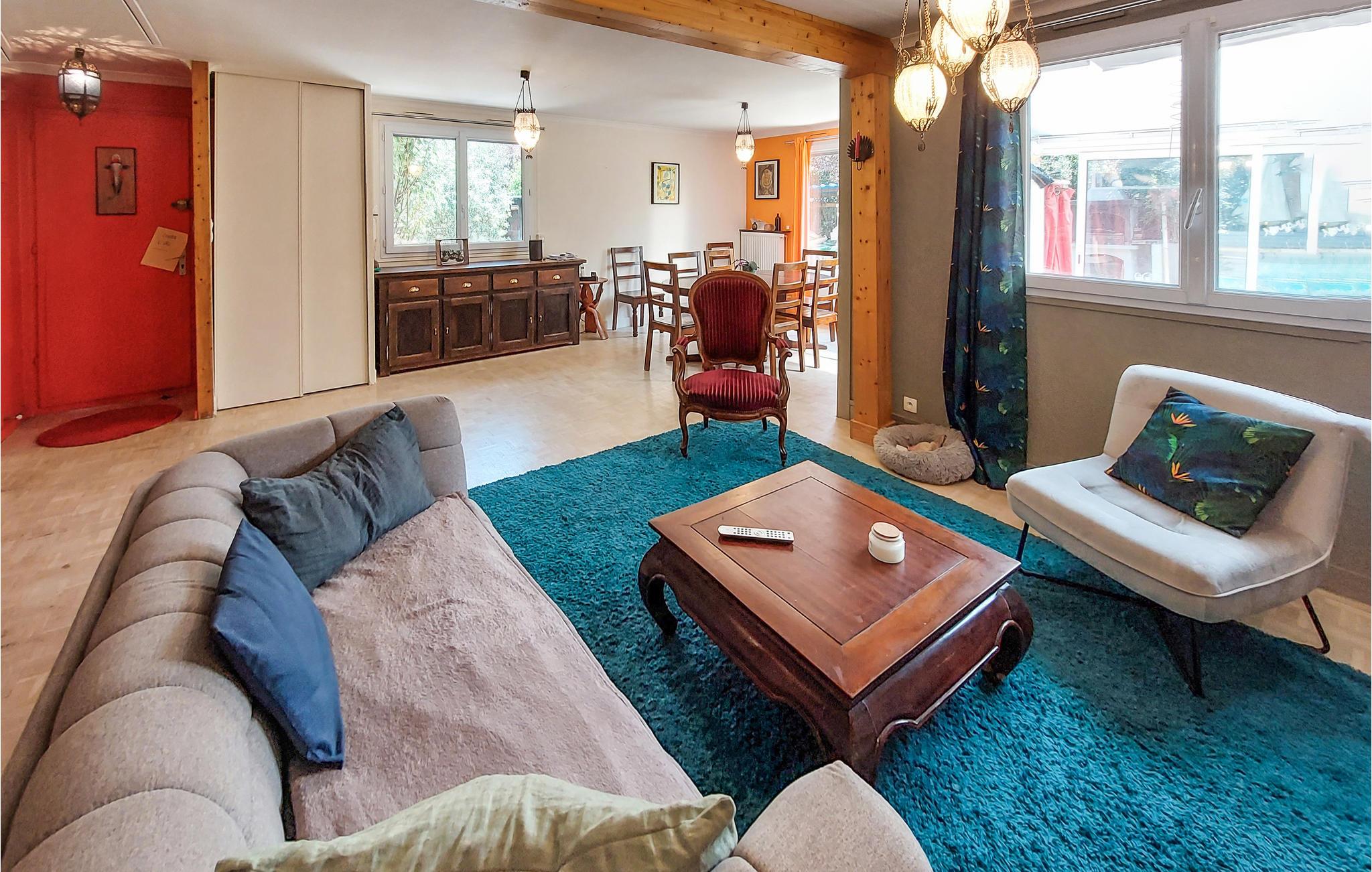 Drømmer I om en sjov familieferie tæt på smuk natur? Så ville dette fantastiske feriehus med en række faciliteter for unge og gamle være det perfekte valg. Dette rummelige feriehus byder jer velkommen til den vestlige del af Lyon i et roligt boligområde. Det farverige interiør strækker sig over to etager og gør et velkendt og livligt indtryk. Udfordr jer selv til jeres yndlings Nintendo-spil, eller se en sjov film i hjemmebiografen. Huset har endda en garderobe og en lille scene, hvor børnene kan klæde sig ud og have det sjovt. Ikke kun inde, men også udenfor huset har mange aktiviteter at byde på. I den rolige private have kan hele familien hygge sig med en omgang basketball eller bordfodbold, og de yngste feriegæster kan svinge eller slippe dampen i legehuset. I kan også nyde godt af det store udekøkken, hvor I også kan tilberede jeres lækkerier udendørs. I bor meget tæt på landsbyens centrum af Francheville le Haut med små butikker og et supermarked. På 20 minutter i bil kan I nå det centralt beliggende Place Bellecour i Lyon.