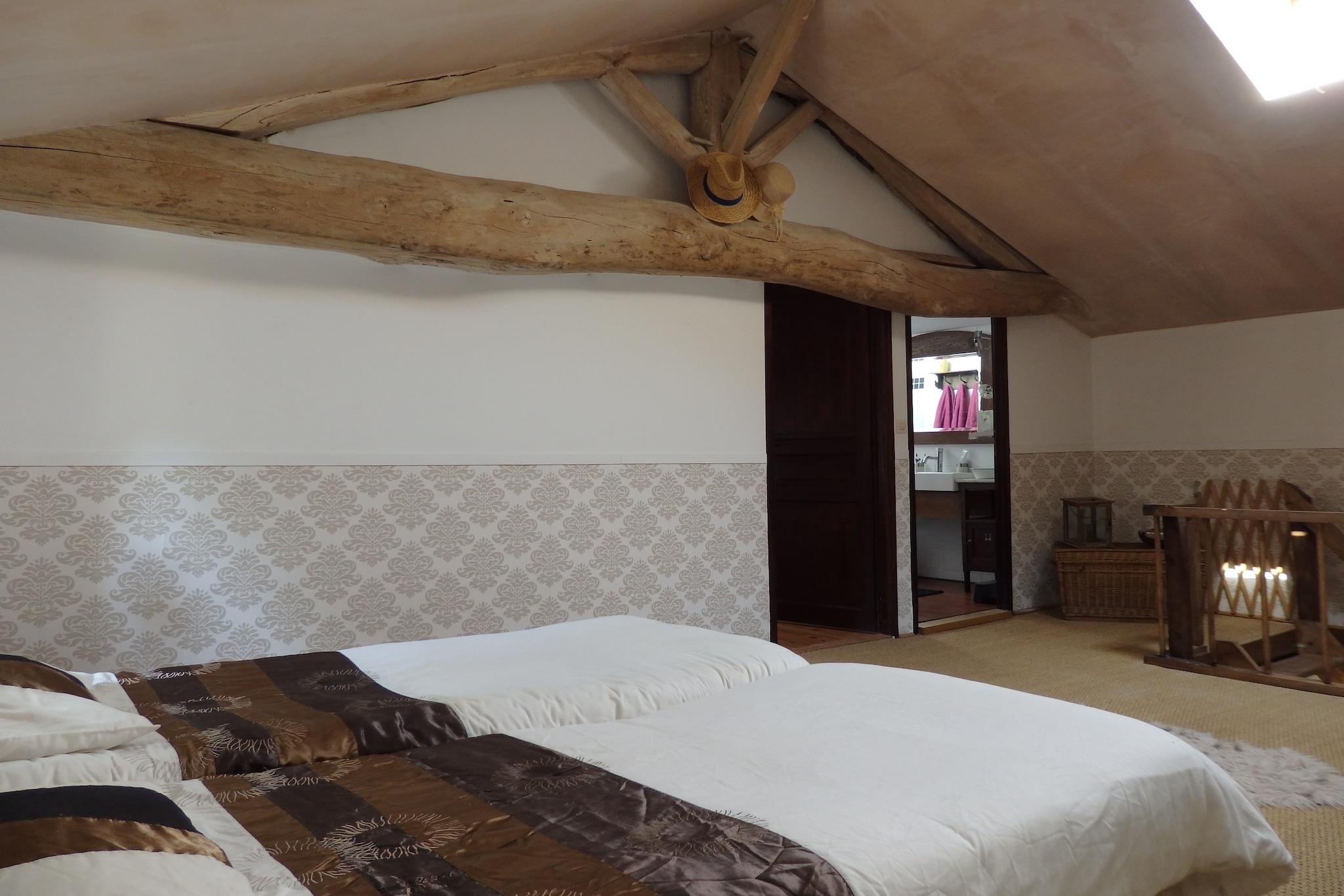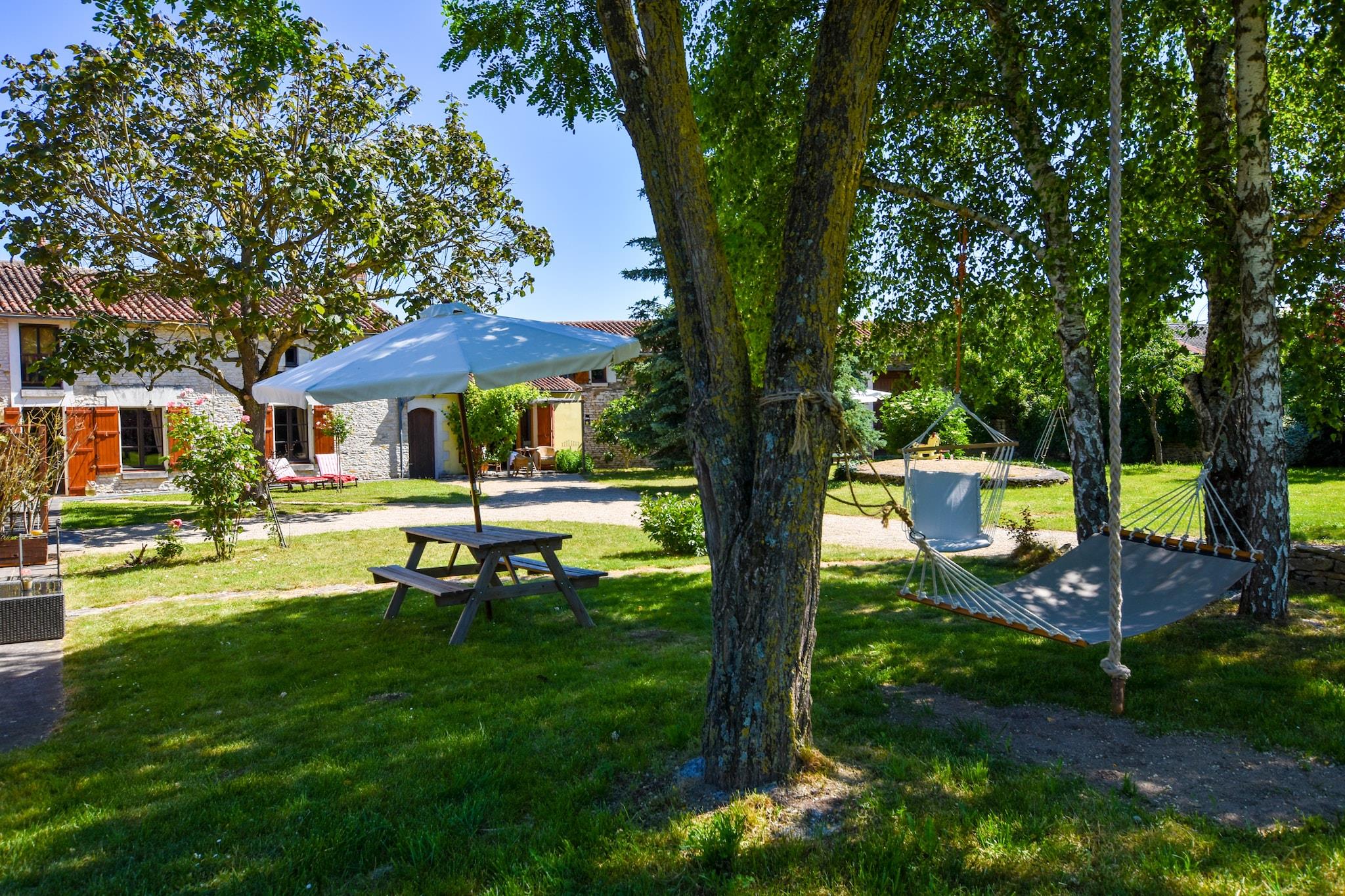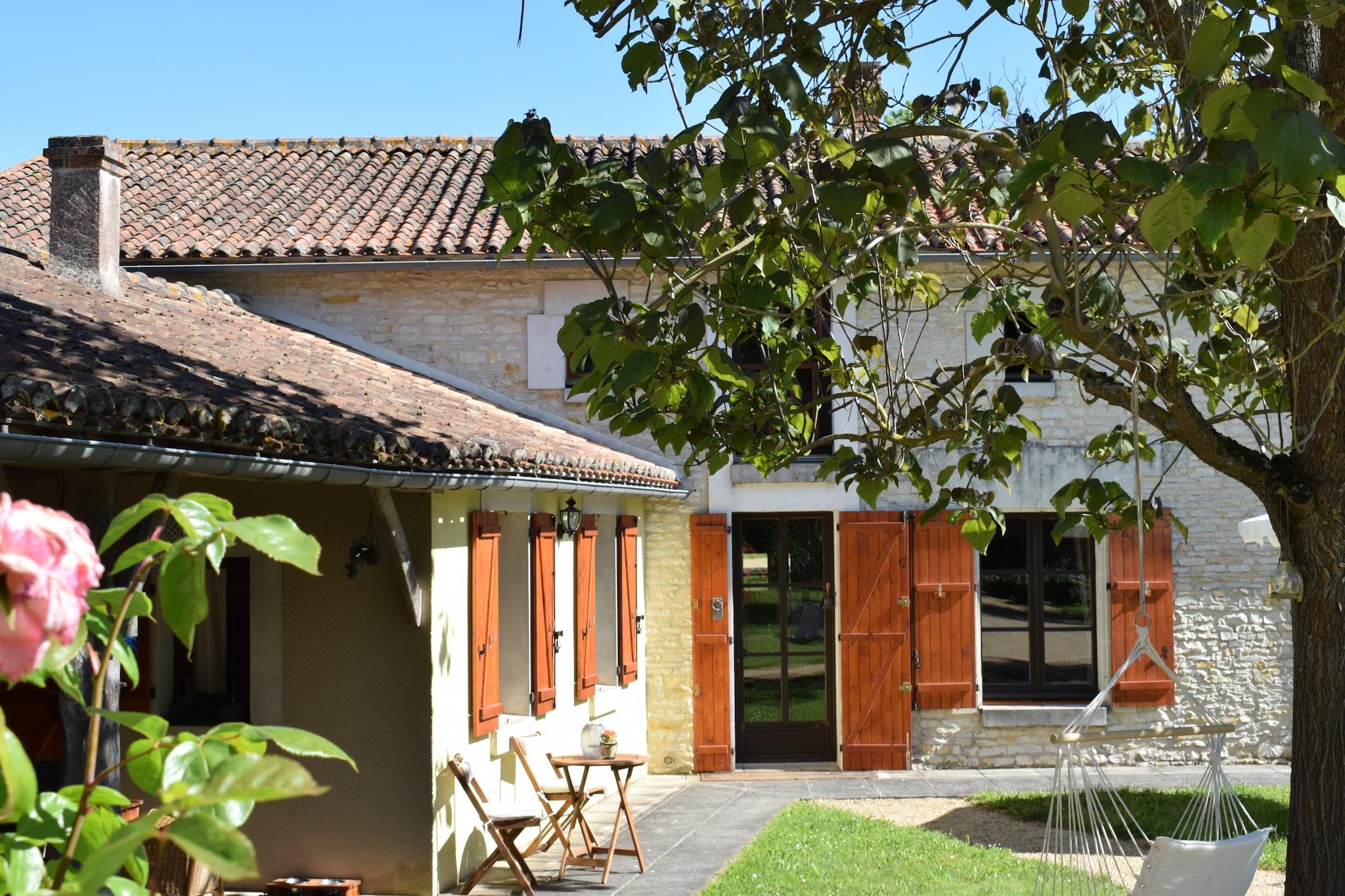 Denne stengård er ideel til en afslappende ferie med familie og/eller venner. Autentiske detaljer som træbjælker, naturstensvægge og en gammel pejs kombineres med moderne bekvemmeligheder som moderne badeværelser, rummeligt køkken, WiFi og en rummelig overdækket terrasse.Ved 4 km finder du en skov, hvor du kan tage smukke ture . En flod løber 5 km fra huset, og en rekreativ sø med strand ligger 10 km derfra. 150 m fra huset finder I en økologisk have, hvor I kan få frugt og grønt. Besøg også de smukke slotte og vingårde i Loire, Futuroscope, Puy de Fou og Les Trois Moutiers.Terrassen har et opholdsområde og havemøbler. I den fælles have er der legeplads og haven er helt indhegnet Huset kan kun opvarmes med brændeovn. I vintermånederne (oktober til april) betaler du ekstra for dette; dette er inkluderet i de serviceomkostninger, som du betaler forud. Ejendommen opvarmes ikke på anden måde. Brændeovnen giver tilstrækkelig opvarmning til hele boligen.