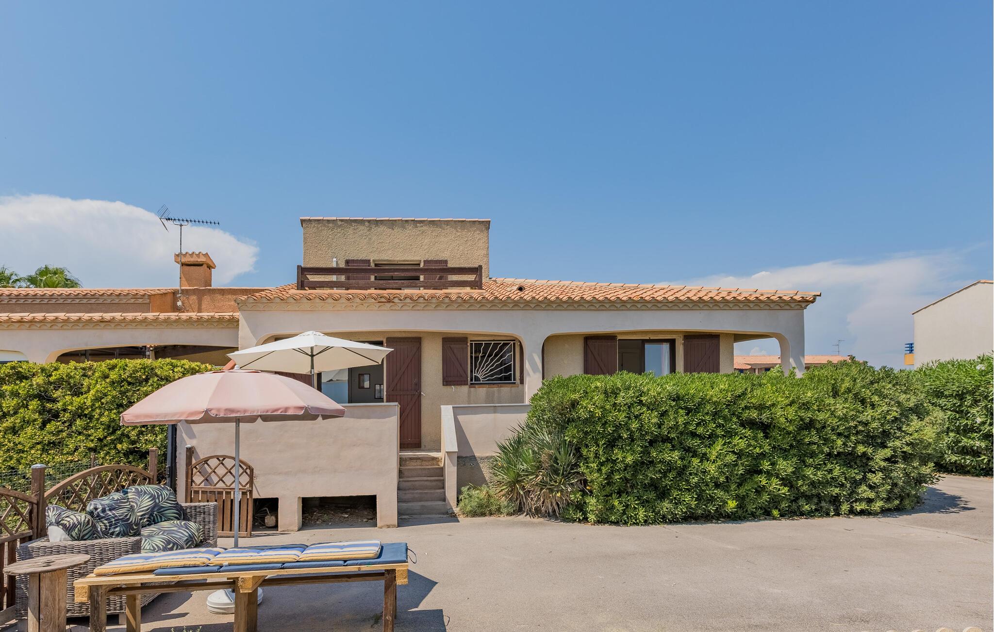 Dette lyse og indbydende feriehus ligger i et roligt kvarter lige ved den smukke sandstrand. Her har I masser af plads til hyggelige måltider med venner eller familie og kan nyde middelhavsklimaet fuldt ud.