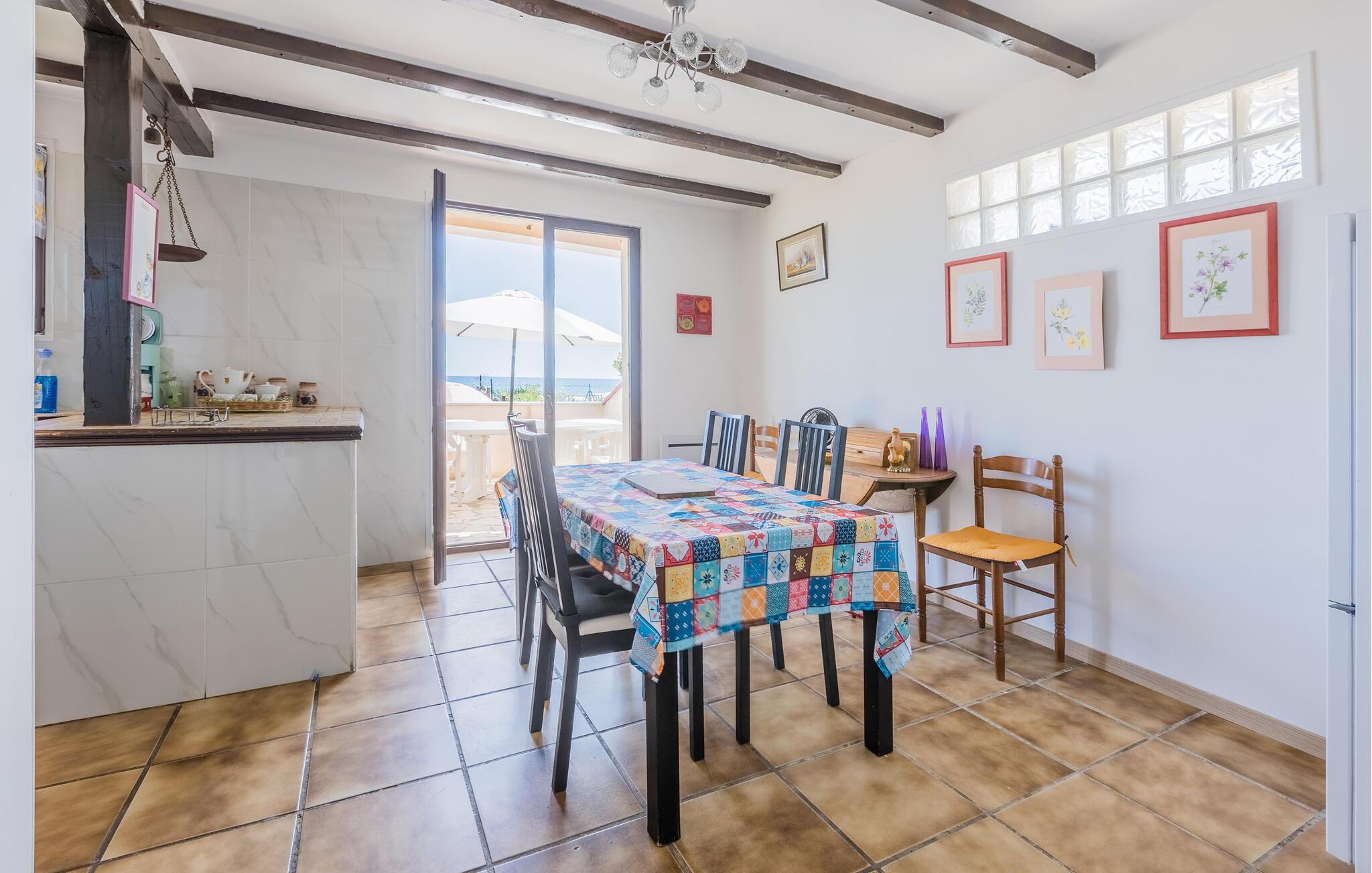 Tilbring en solrig ferie i dette komfortable feriehus med havudsigt og direkte adgang til stranden.