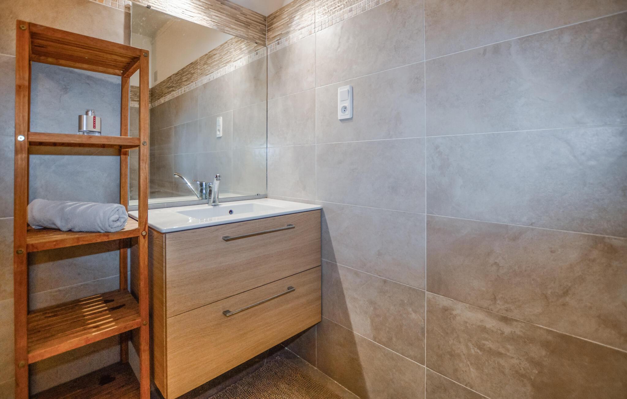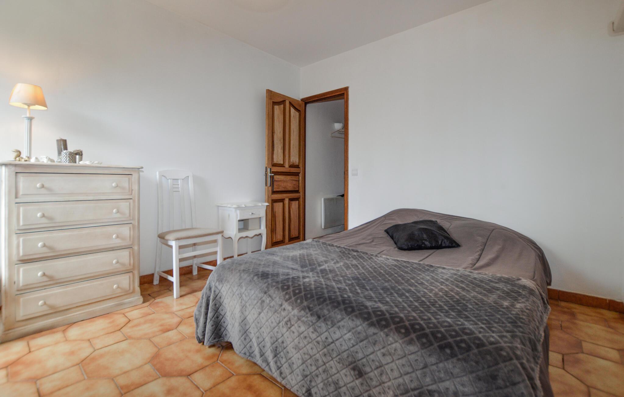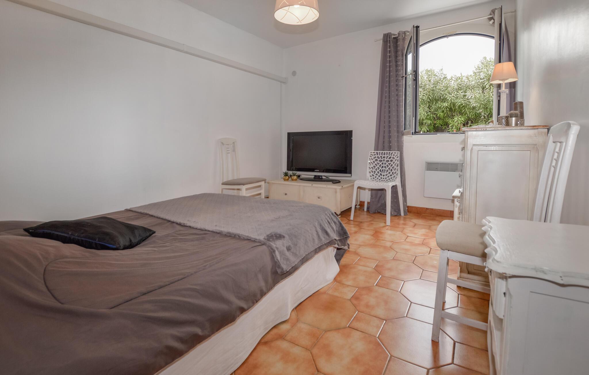 Velkommen til denne velholdte lejlighed i stueetagen, hvor I kan føle jer hjemme under en solrig ferie nær Korsikas maleriske nordøstkyst. Fremstil middelhavsretter i det rummelige køkken, planlæg aktiviteterne ved det runde spisebord, og gør det behageligt for jer til en hyggelig spilleaften på den rummelige sofa.