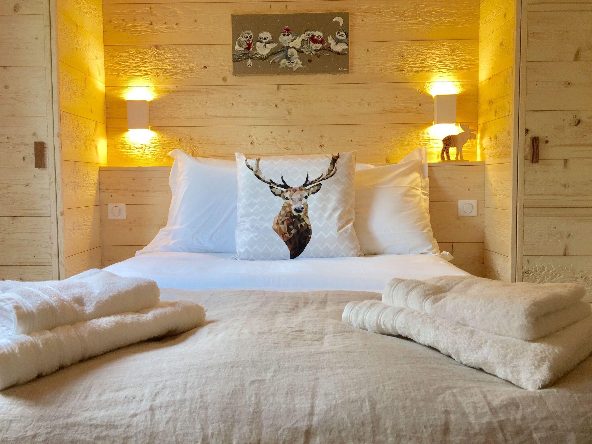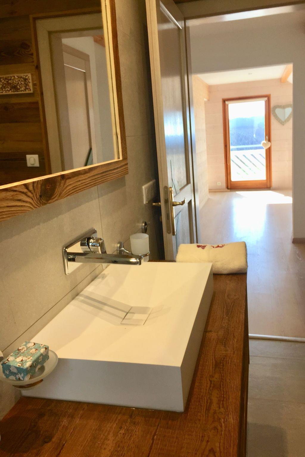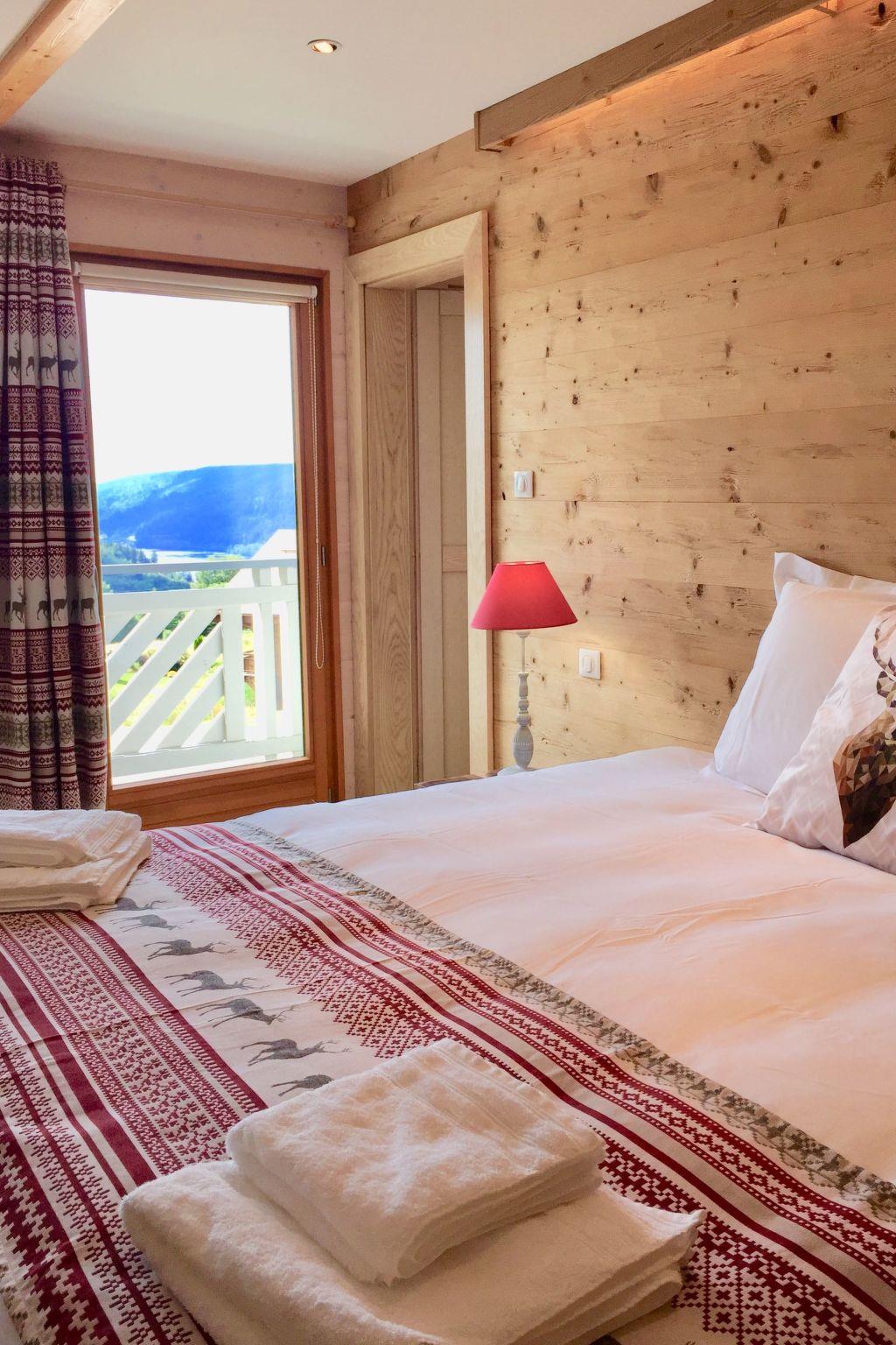 Whole chalet 140 m², top-of-the-range 4-star classification: Ground floor: Fully-equipped open-plan kitchen. A large living room with a fireplace A dining room with a view of the lake. WI-FI Bedroom 1 "Chouettes" with double bed 140x200 and en-suite shower room (shower-vacuum-dryer-towels...).Upstairs: -Room 2 with double bed 160x200, TV and DVD player and large Dressing room -Room 3 with double bed 180x200 or 2 twin beds 90x200 (on request) - lake view -On the mezzanine: 3 beds 90x200 for teenagers and screen with DVD player - games-books - lake view For babies: cot, high chair and wooden playpen available (on request) The BEDDING in all rooms is NEW and VERY HIGH-END. -1 bathroom with basin, bath, towel rail, WC, washing machine, tumble dryer, hairdryer, magnifying mirror Relaxation area: -A large SAUNA -An outdoor area with sun loungers (two sunny terraces) Facilities: -Fully equipped open-plan kitchen: 2 coffee makers (classic and Senséo) 1 teapot 1 toaster Crockery/cutlery 2 ovens : classic and microwave 1 ceramic hob 1 extractor fan 1 dishwasher 1 fridge/freezer 1 Alpage raclette machine and a classic raclette machine 2 fondue machines (1 traditional fondue pot and 1 electric fondue machine) -Dining room: 1 table seating 9 people 1 high chair for babies -Living room: 2 large, cosy, top-of-the-range sofas A fireplace (wood-burning) 1 full-connected HD television -Wifi -garage/ski room/ski boot dryer.
