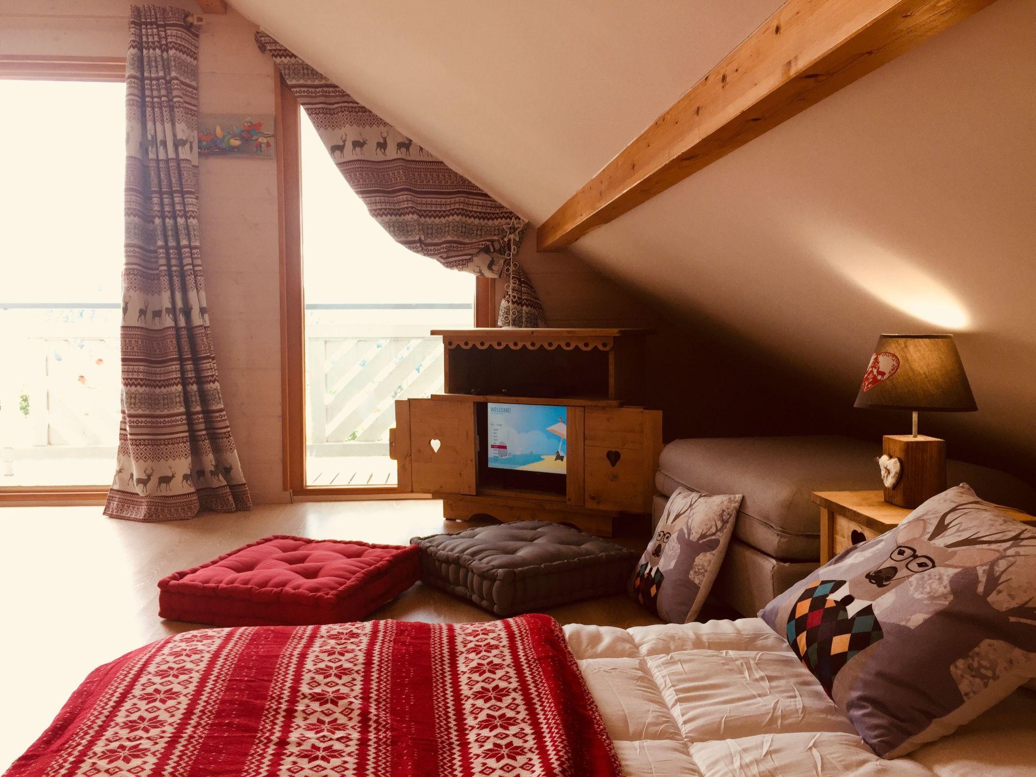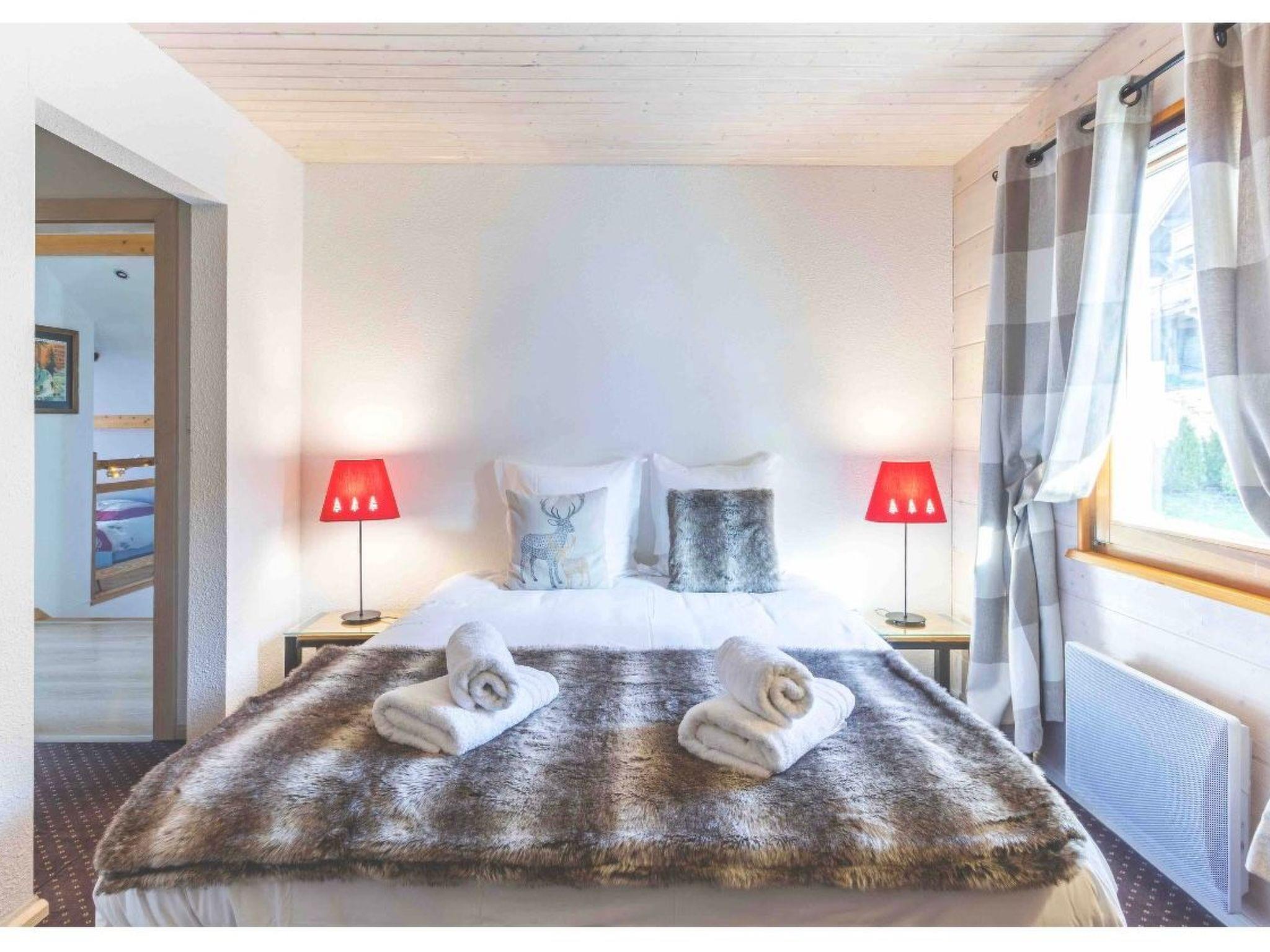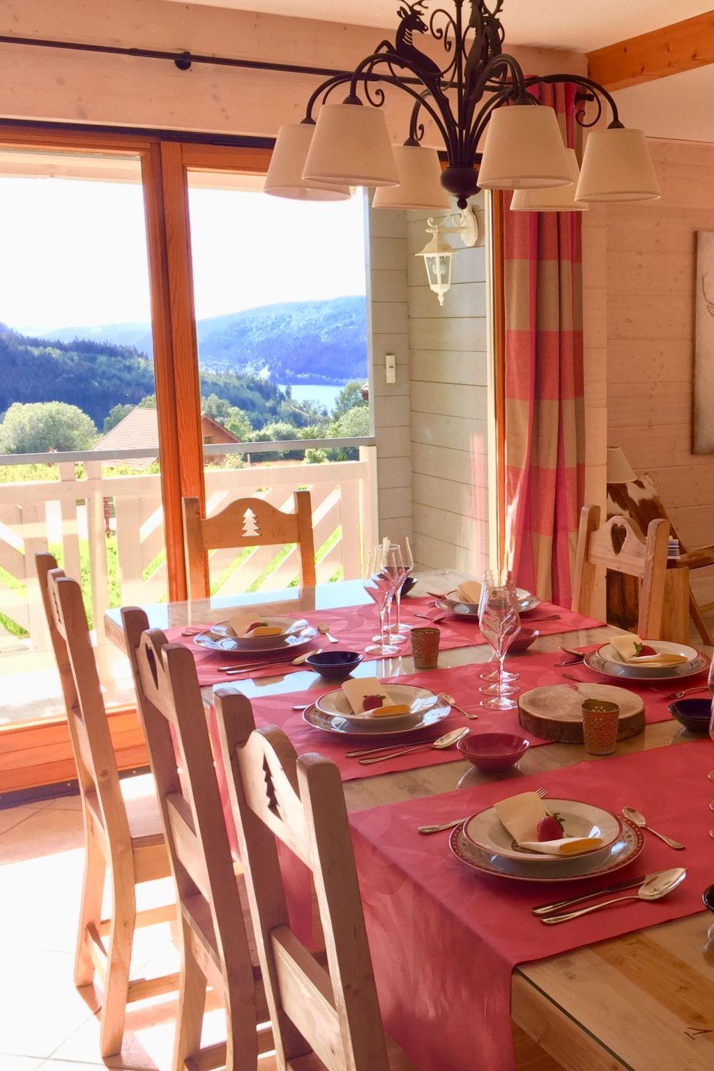 Whole chalet 140 m², top-of-the-range 4-star classification: Ground floor: Fully-equipped open-plan kitchen. A large living room with a fireplace A dining room with a view of the lake. WI-FI Bedroom 1 "Chouettes" with double bed 140x200 and en-suite shower room (shower-vacuum-dryer-towels...).Upstairs: -Room 2 with double bed 160x200, TV and DVD player and large Dressing room -Room 3 with double bed 180x200 or 2 twin beds 90x200 (on request) - lake view -On the mezzanine: 3 beds 90x200 for teenagers and screen with DVD player - games-books - lake view For babies: cot, high chair and wooden playpen available (on request) The BEDDING in all rooms is NEW and VERY HIGH-END. -1 bathroom with basin, bath, towel rail, WC, washing machine, tumble dryer, hairdryer, magnifying mirror Relaxation area: -A large SAUNA -An outdoor area with sun loungers (two sunny terraces) Facilities: -Fully equipped open-plan kitchen: 2 coffee makers (classic and Senséo) 1 teapot 1 toaster Crockery/cutlery 2 ovens : classic and microwave 1 ceramic hob 1 extractor fan 1 dishwasher 1 fridge/freezer 1 Alpage raclette machine and a classic raclette machine 2 fondue machines (1 traditional fondue pot and 1 electric fondue machine) -Dining room: 1 table seating 9 people 1 high chair for babies -Living room: 2 large, cosy, top-of-the-range sofas A fireplace (wood-burning) 1 full-connected HD television -Wifi -garage/ski room/ski boot dryer.