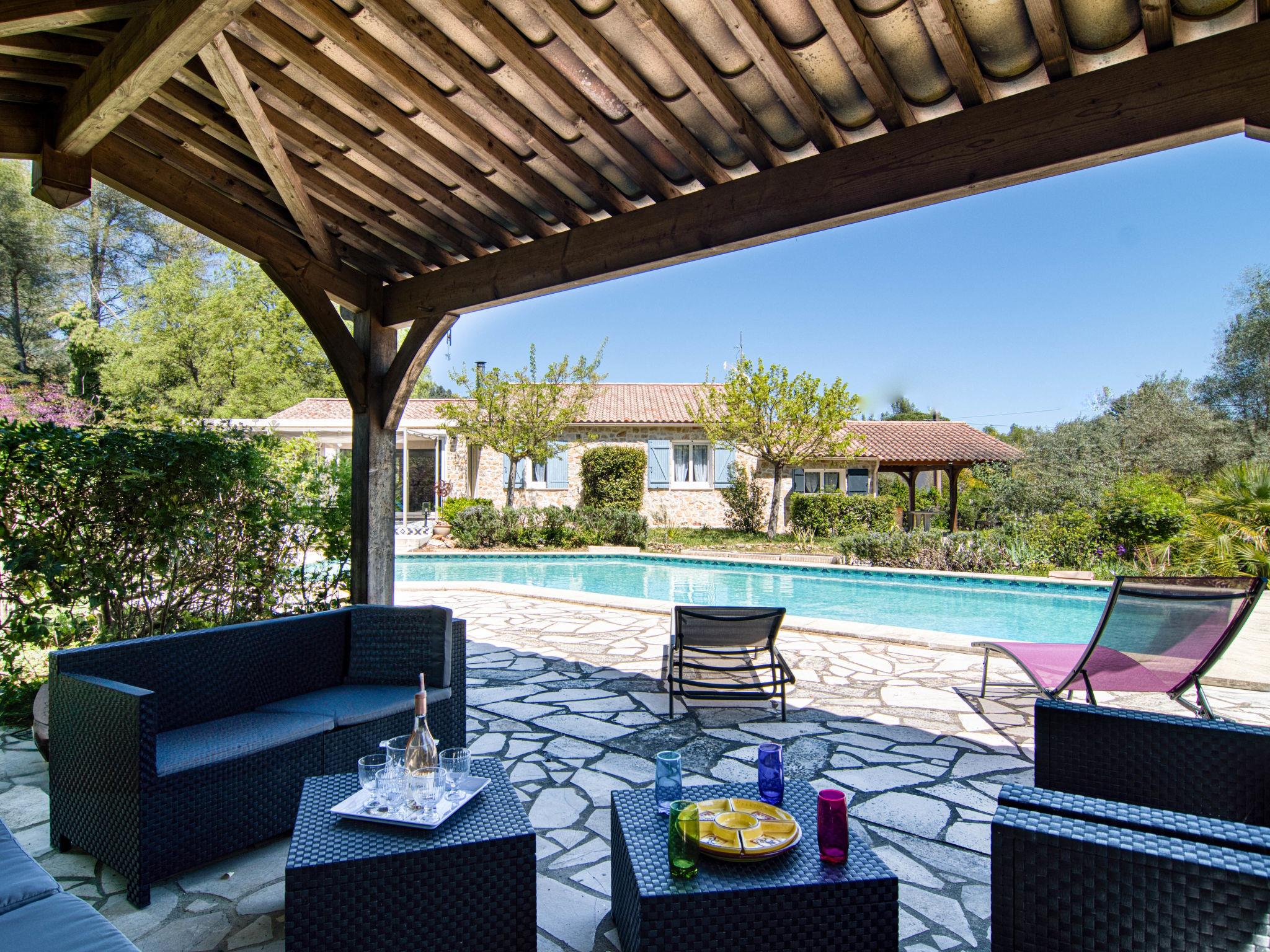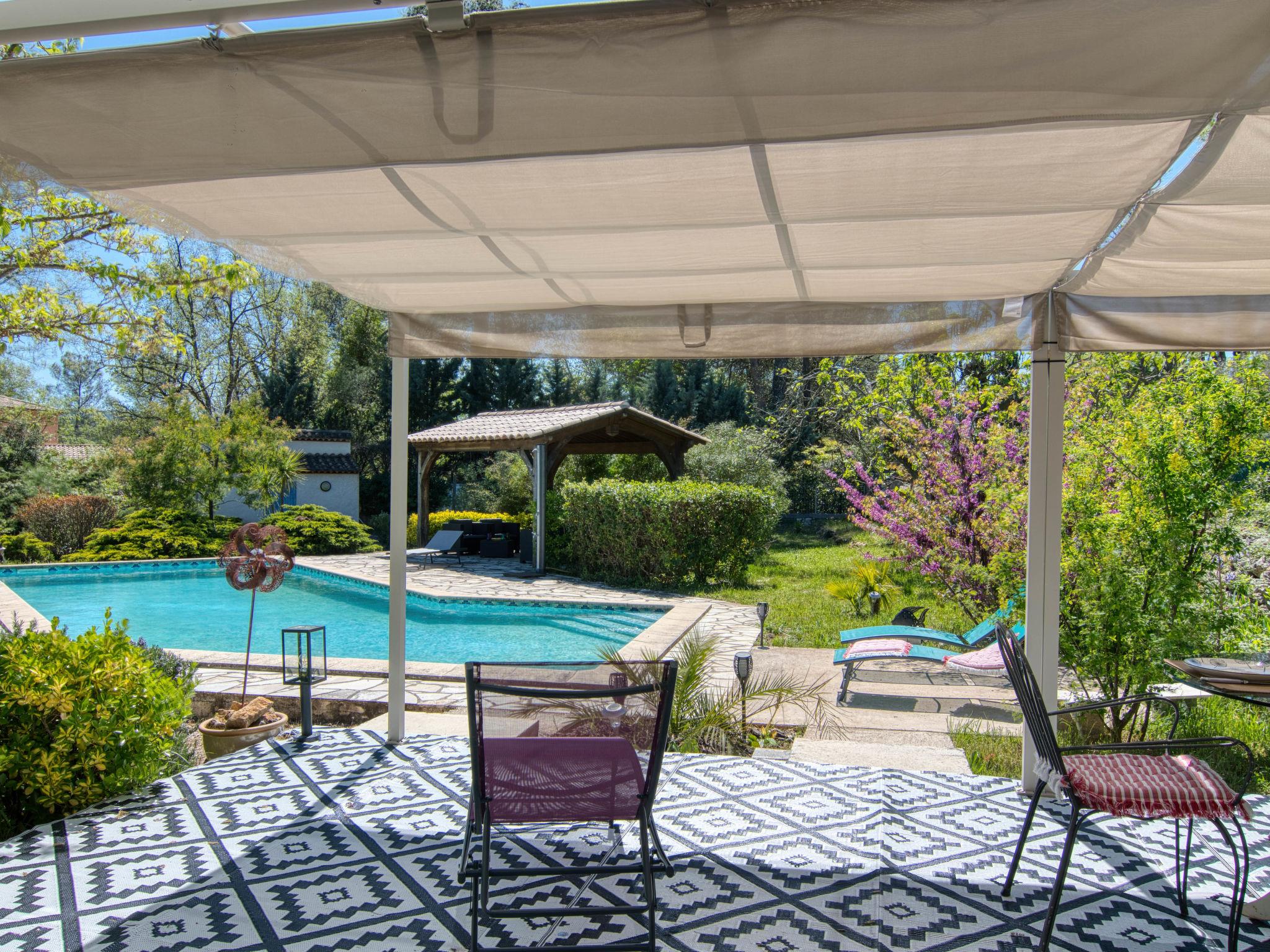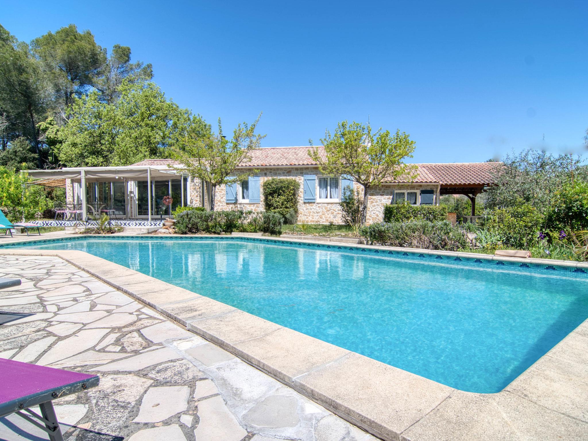 Beautiful single-family house. 1.8 km from the centre of Gareoult, 17 km from the centre of Brignoles, 38 km from the centre of Hyeres, in the residential district, 38 km from the sea, 38 km from the beach. Private: well-kept garden 2'000 m2 (fenced), swimming pool (12 x 4 m, depth 100 - 180 cm, seasonal availability: 01.Apr. - 25.Oct.) with alarm system and salt-electrolysis pool-cleaning system. Unconventional pool shape. Outdoor shower. In the house: table tennis. Parking on the premises. Shop 2 km, grocery 3 km, supermarket 7 km, restaurant 2 km, bar 2 km, bakery 1.8 km, café 2 km, bus stop 2 km, railway station "Puget-Ville" 16 km, sandy beach "Le Pradet" 38 km. Golf course (18 hole) 23 km. Nearby attractions: Presqu'île de Giens, Hyeres, Cassis, Calanques de Cassis, Ile des Embiez, Fort de Six Fours. Hiking paths: Parc régional de La Sainte Beaume. Please note: car recommended. The owner does not accept any youth groups.
