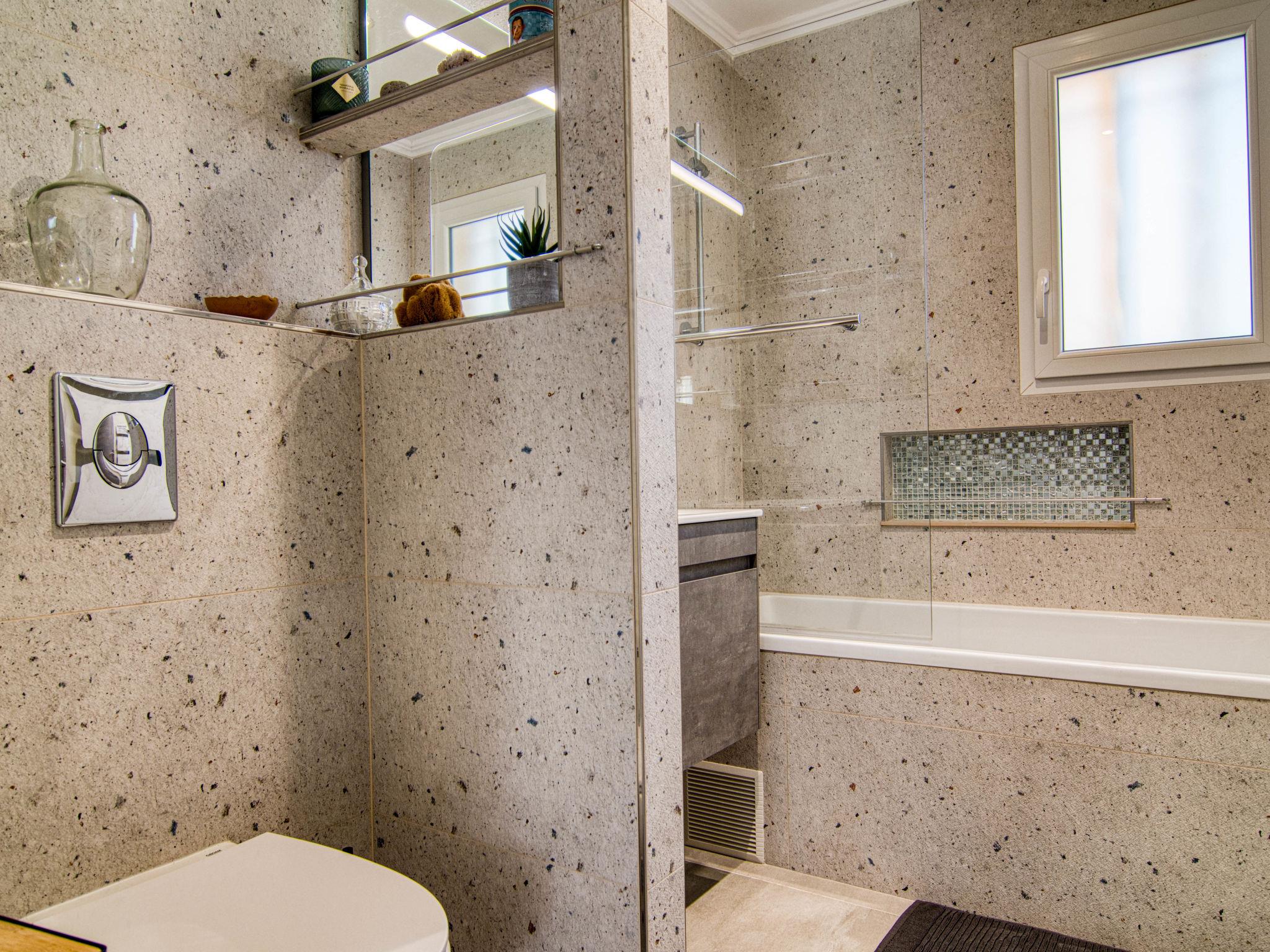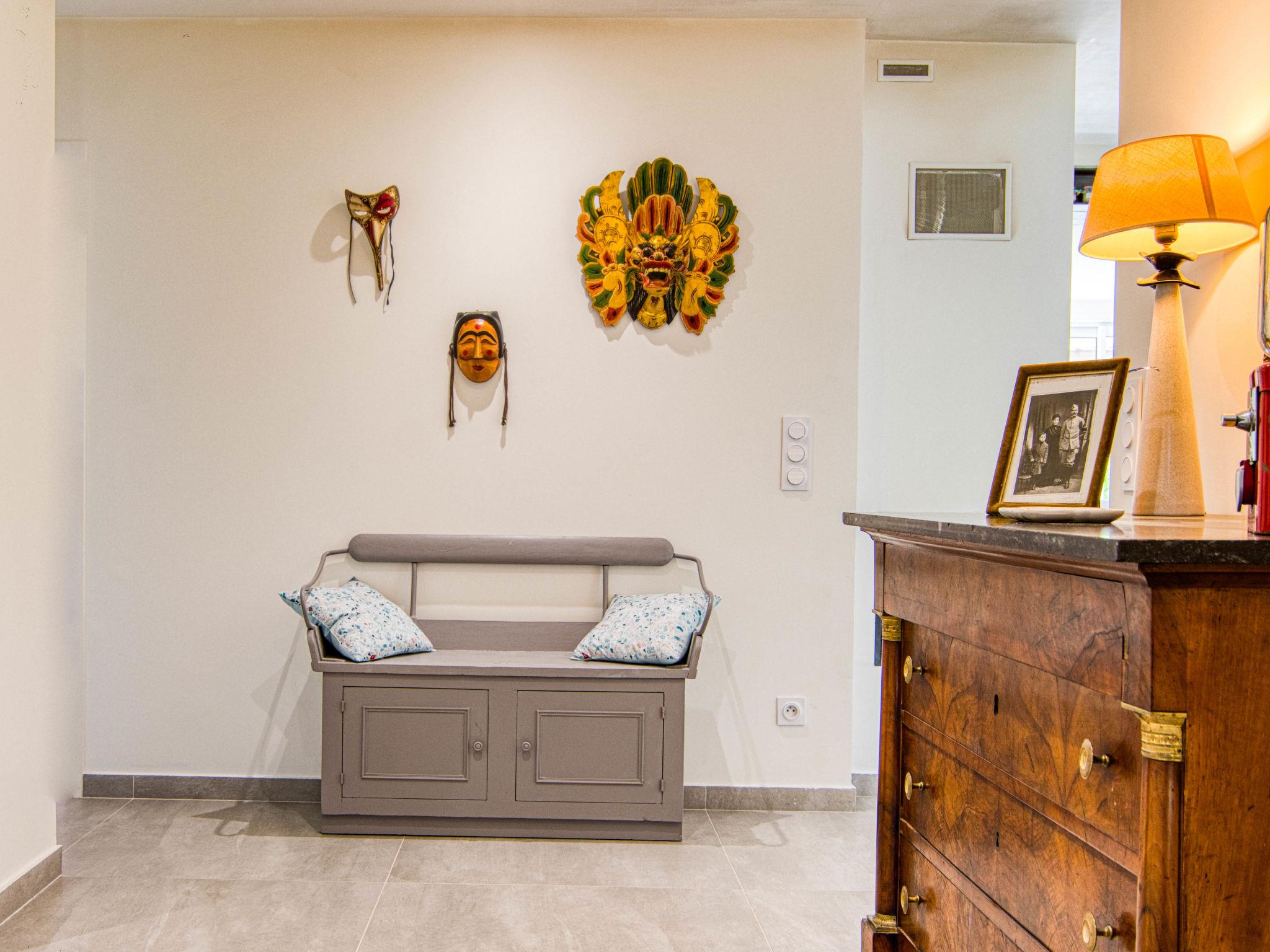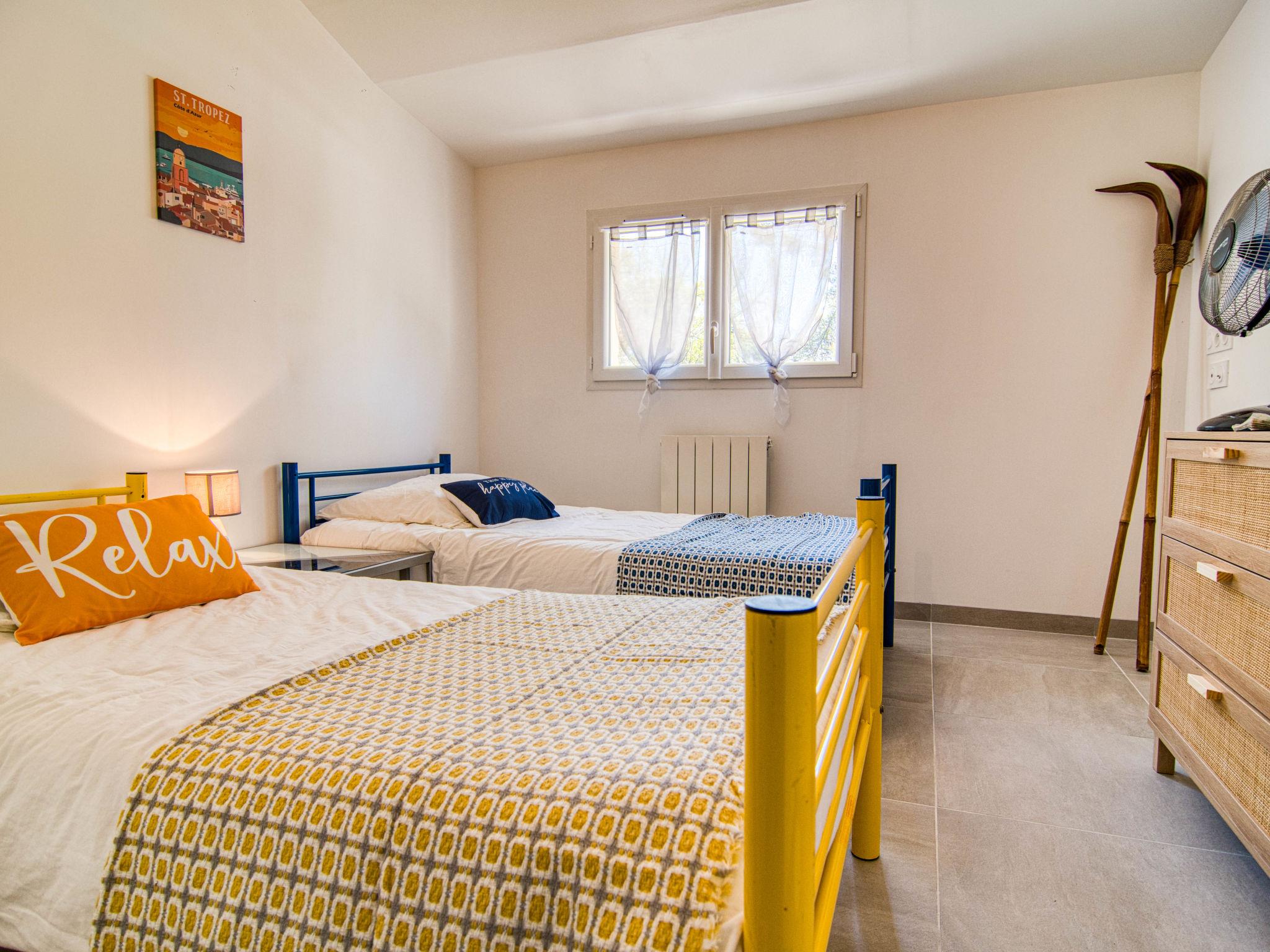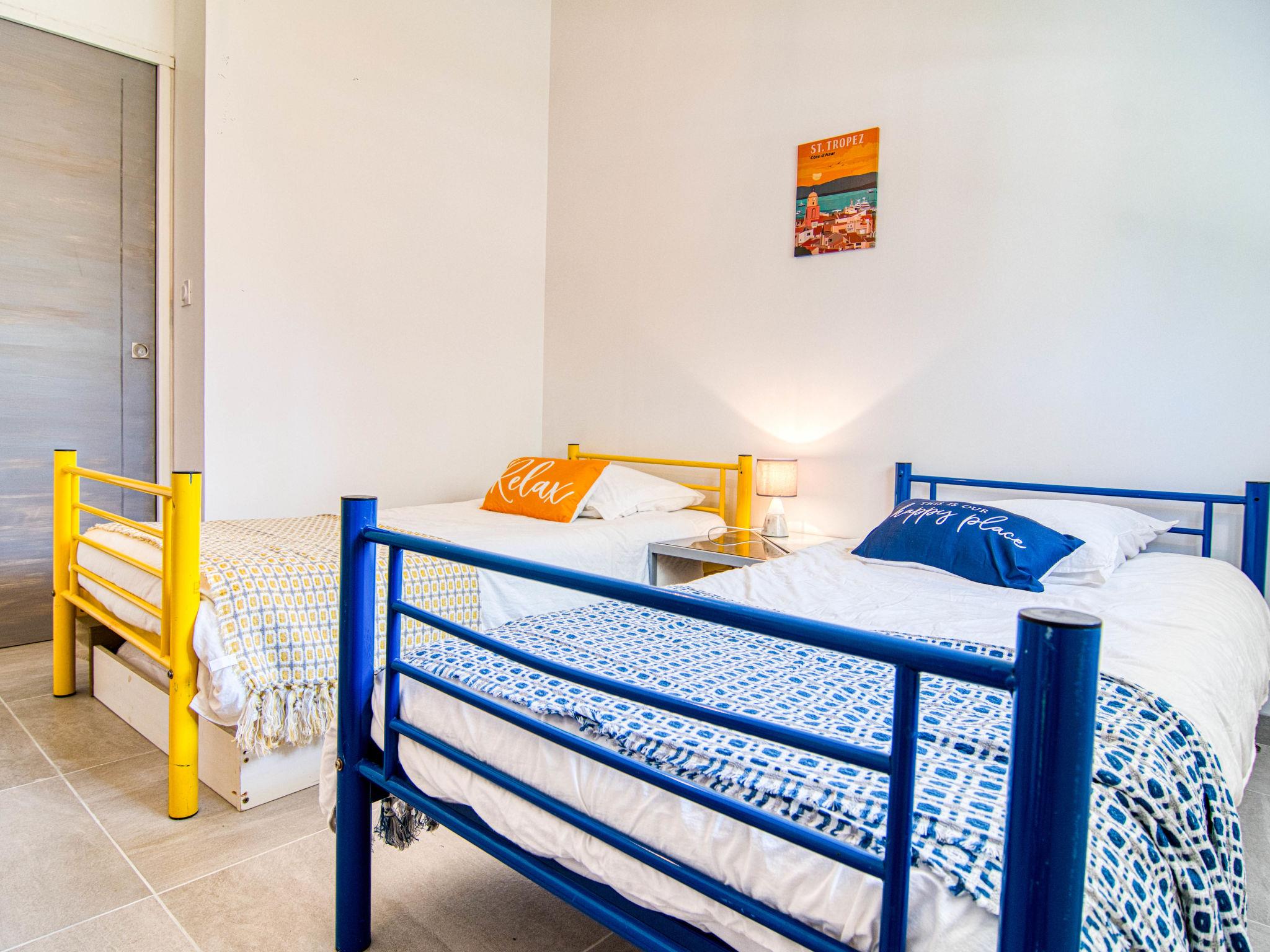 "Villa Azurine", 4-room villa 145 m2. Comfortable and beautiful furnishings: large living/dining room with open-hearth fireplace (only for decoration), dining table and TV (flat screen), air conditioning. Exit to the terrace. Open office with 1 double sofabed (140 cm, length 190 cm), air conditioning. 1 room with 1 french bed (160 cm, length 200 cm), shower. 1 room with 1 french bed (160 cm, length 190 cm). 1 room with 2 beds (90 cm, length 200 cm). Kitchenette (oven, dishwasher, 4 ceramic glass hob hotplates, toaster, kettle, microwave, electric coffee machine, cooking island). Bath/WC, sep. WC. Terrace furniture, barbecue, deck chairs (4). Facilities: washing machine, baby cot for up to 3 year olds. Internet (WiFi, free). Please note: suitable for families. Non-smoking house. Smoke alarm. Offer by a private individual according to Art. 155, IV of CGI. 83064000078AF