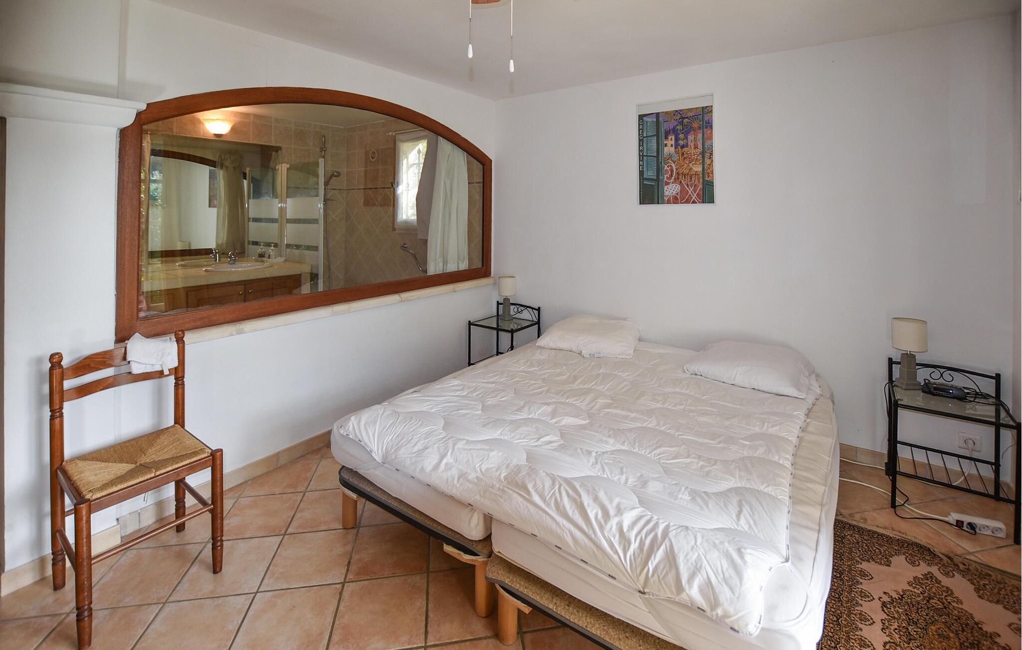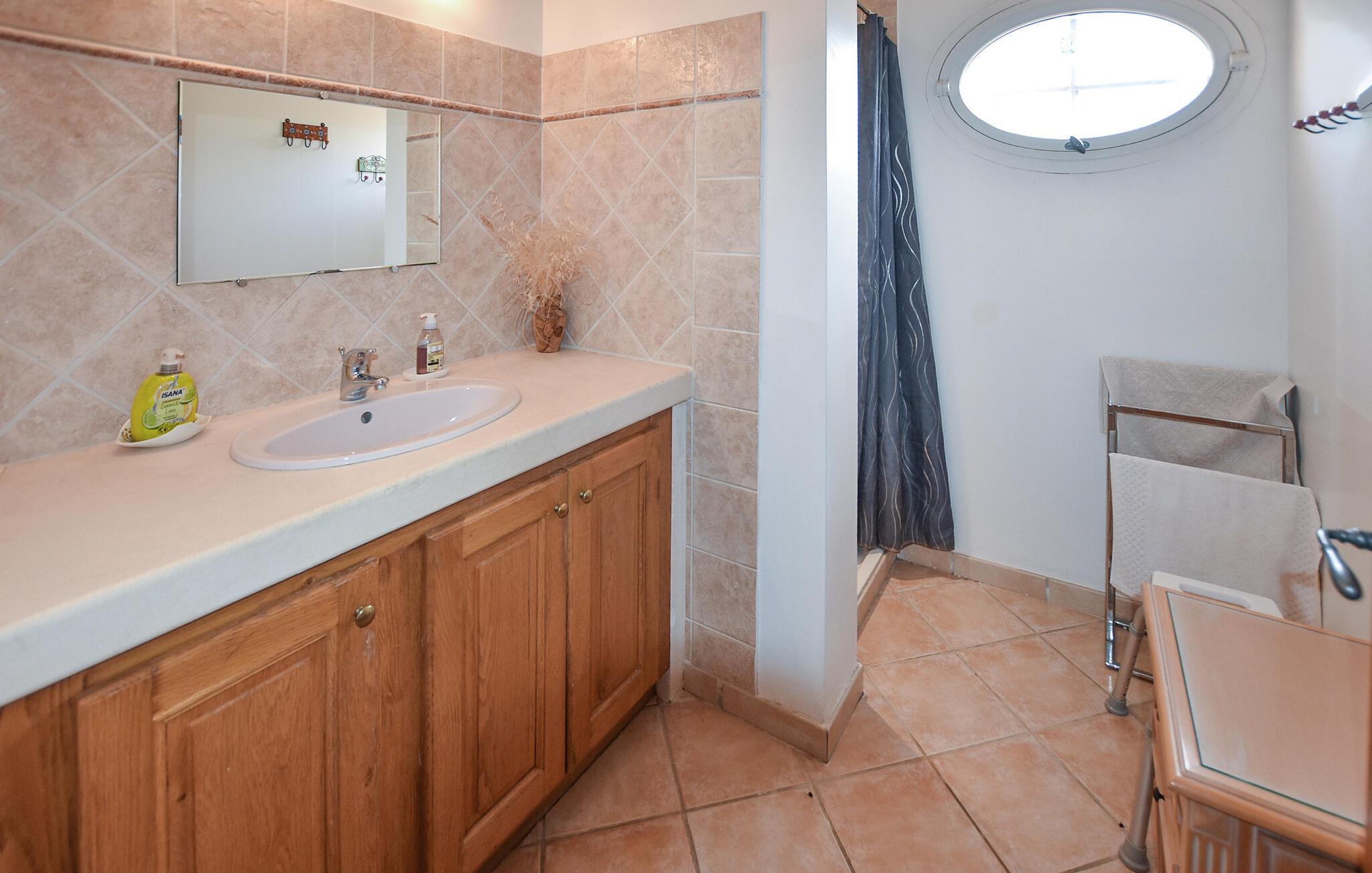Nyd en afslappende ferie i dette rummelige feriehus i en fredelig beliggenhed. Dette charmerende feriehus byder jer velkommen til hjertet af Luberon Regional Naturpark og inviterer jer til at tilbringe afslappende og varierede dage med hele familien. Tilbered lækre måltider sammen og planlæg jeres udflugter til harmoniske måltider i den lyse spisestue med udsigt over de omkringliggende grønne områder. Efter en lang dag kan I slappe af i den hyggelige stue, nyde et brætspil eller blot nyde den behagelige atmosfære med et glas vin. Den fuldt indhegnede, skovklædte grund tilbyder jeres børn masser af plads til at lege udenfor. Spil bordtennis, udfordr hinanden på bocciabanen, og nyd den fredelige atmosfære under hyggelige grillaftener. Cykl gennem duftende lavendelmarker og vinmarker, slentr gennem de smalle gader i Roussillon og Gordes, og prøv lokale specialiteter på traditionelle restauranter. Vandr gennem skjulte kløfter, besøg de berømte okkerbrud i Roussillon, og slentr gennem historiske markeder og kunstgallerier. Fuldend jeres rejseplan med en afslappende picnic ved en af de små søer.