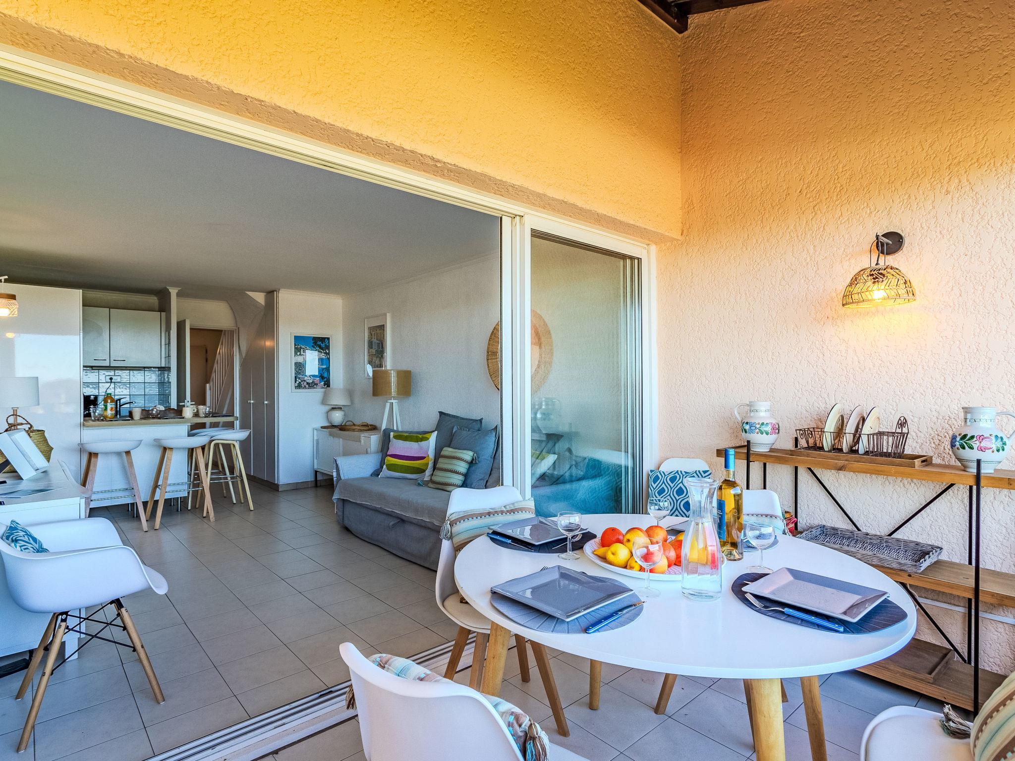 "Les Marines de Gassin 14", 3-room maisonette 45 m2 on 3rd floor. Partly renovated in 2022, cosy furnishings: living/dining room with TV (flat screen). Exit to the terrace. 1 small room with 1 x 2 bunk beds (80 cm, length 190 cm). Kitchenette (mini-oven, dishwasher, 4 ceramic glass hob hotplates, toaster, kettle, electric coffee machine, Capsules for coffee machine (Nespresso) extra). Bathroom, sep. WC. Upper floor: 1 room with 1 french bed (140 cm, length 200 cm). Shower, sep. WC. Electric heating. 2 terraces 16 m2, east facing position. Terrace furniture. Beautiful view of the sea. Facilities: washing machine, iron, hair dryer. Internet (WiFi, extra). Parking space n 294. Please note: non-smokers only. 1 small pet/ dog allowed. Smoke alarm. Offer by a private individual according to Art. 155, IV of CGI. 83065000695JM