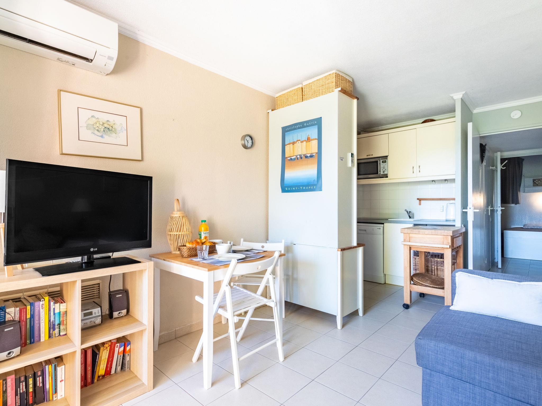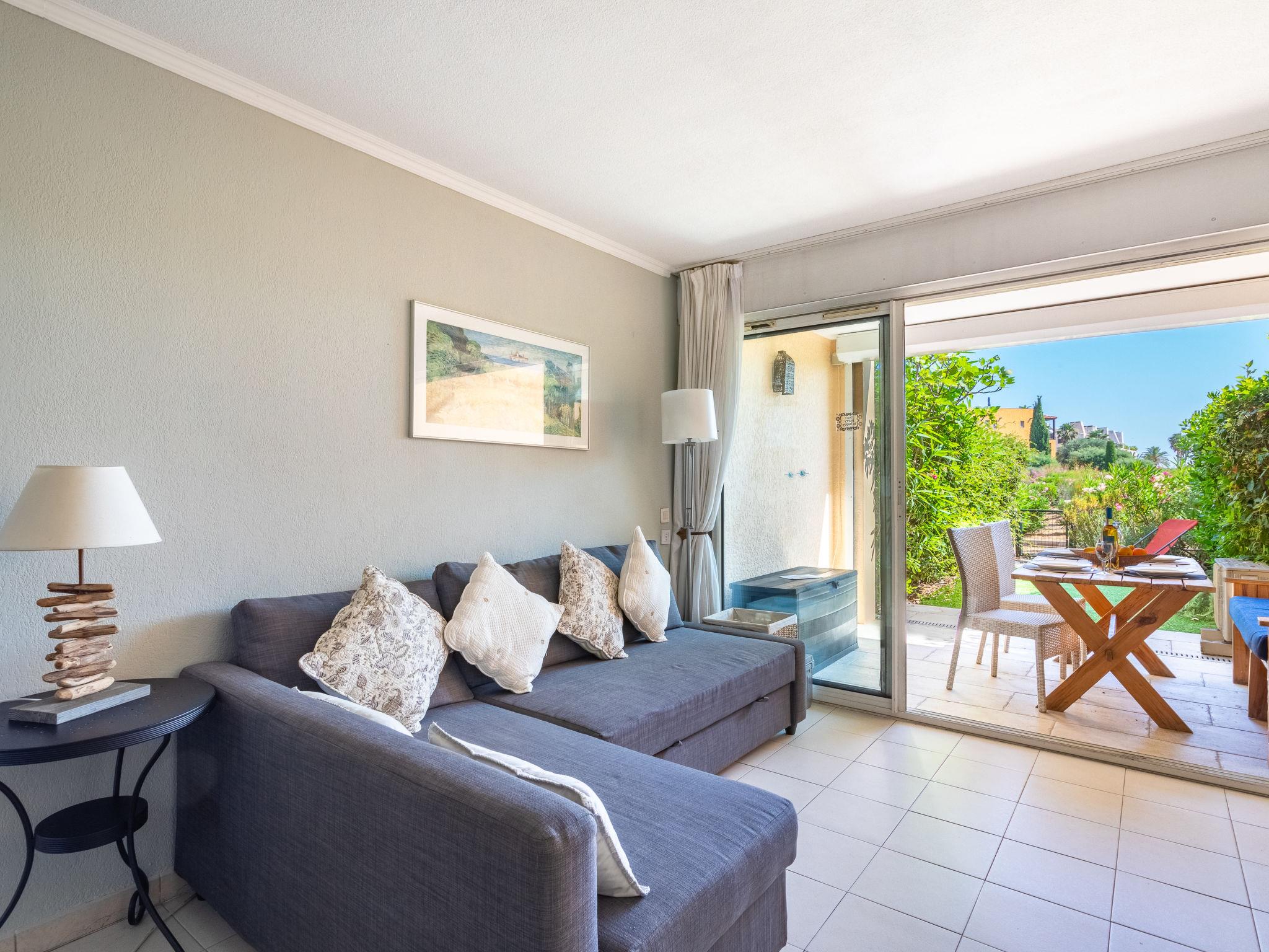 "Les Marines de Gassin 9", 2-room apartment 35 m2, on the ground floor. Simple and comfortable furnishings: living/dining room with 1 sofabed (140 cm, length 190 cm), TV (flat screen), air conditioning. Exit to the garden, to the terrace. 1 room with 2 beds (90 cm, length 190 cm). Kitchenette (4 hot plates, oven, dishwasher, toaster, kettle, electric coffee machine). Shower/WC. Electric heating. Terrace 15 m2, garden 9 m2. Terrace furniture, deck chairs (2). Facilities: washing machine. Internet (WiFi, extra). Parking space n 161. Please note: smoke alarm. 83065000152SO