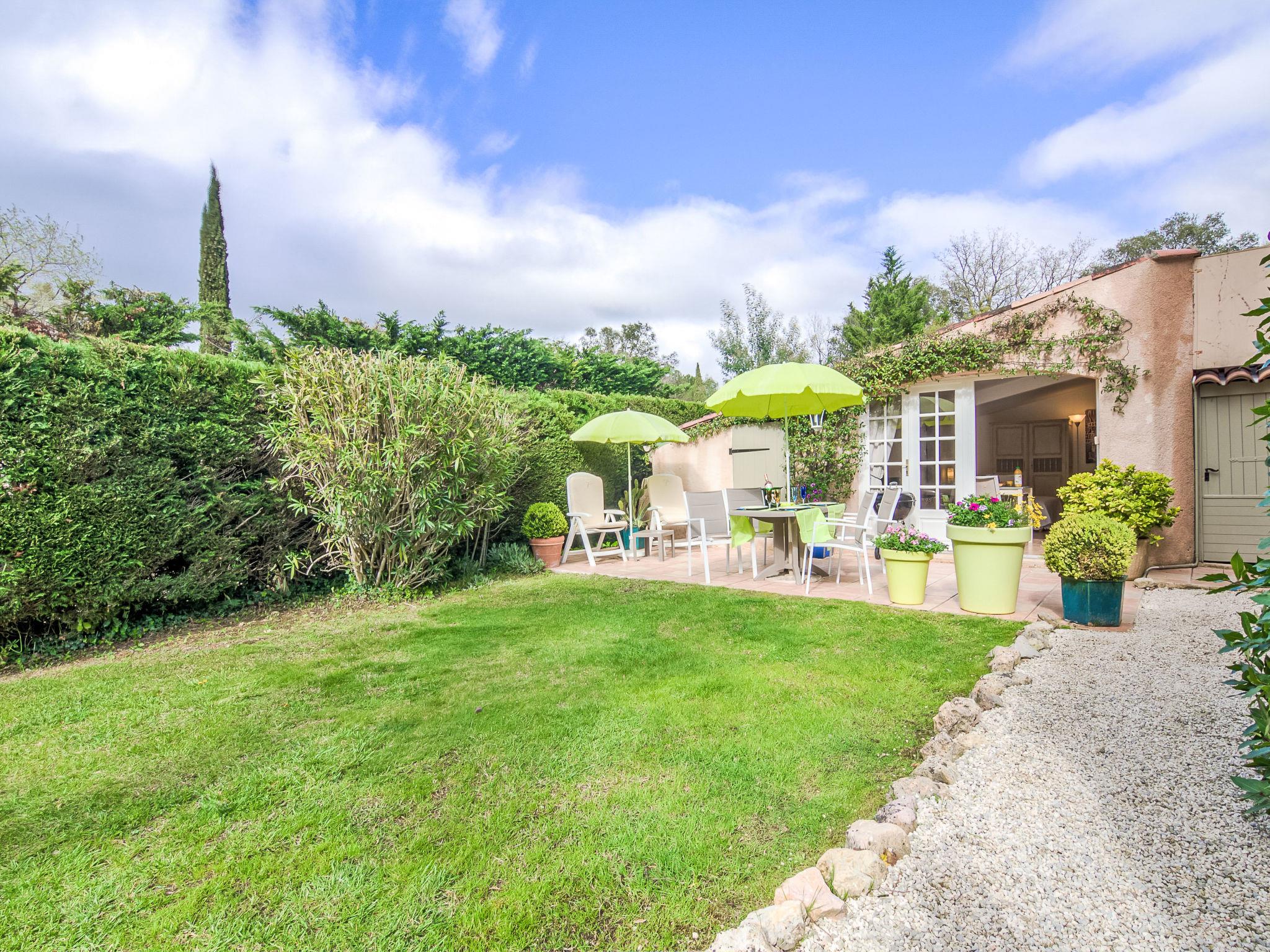 Small terraced house "Le Mimosa St Laurent". In the residential district, 4 km from the sea, 4 km from the beach. Private: garden 200 m2 (fenced) with lawn, parking (for 2 cars) on the premises. Shop 2 km, grocery 1.5 km, supermarket 2 km, restaurant 2 km, bus stop "Le Pierredon" 800 m, sandy beach "Marines de Gassin" 4 km. Sports harbour 4 km, golf course (18 hole) 4.5 km, sailing school 4 km, tennis 500 m, minigolf 4 km. Nearby attractions: Parc d'attractions Azur Park 4 km, Saint Tropez 8 km, Sainte Maxime 12 km, Plages de Pampelonne 15 km, Cannes 84 km, Nice 110 km. Well-known lakes can easily be reached: Le Lac de Sainte Croix 89 m. Hiking paths: Le Massif de l'Esterel 50 km. Please note: car recommended.