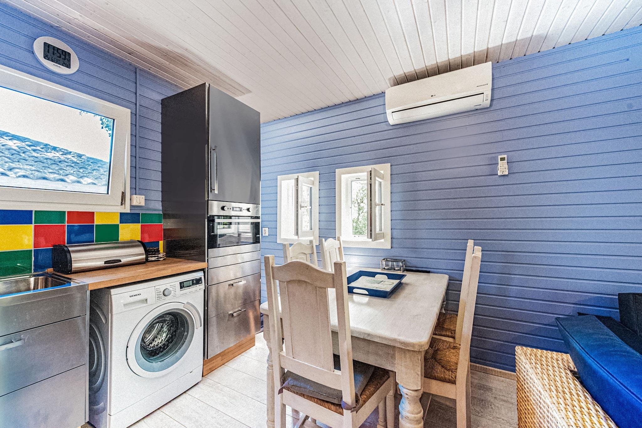 Stueetage: (Stue(enkeltsovesofa(90 x 200 cm), Fjernsyn(fladskærm, parabol, Hollandske TV-kanaler), sofahjørne, DVD-afspiller, CD-afspiller, varme(elektrisk), klimaanlæg), åbent køkken(elkedel, brødrister, komfur(Komfur med fire kogeplader, glaskeramisk), kaffemaskine(kaffetragt, kaffepude), combi-mikroovn, opvaskemaskine , køle-fryseskab, vaskemaskine), soveværelse(dobbeltseng(160 x 200 cm), klimaanlæg), soveværelse(2x enkeltseng(90 x 200 cm), klimaanlæg), badeværelse(bruser, håndvask, toilet), badeværelse(bruser, håndvask, toilet)) rejseseng, varme, klimaanlæg, terrasse(privat), have(privat, indhegnet, oplyst), havemøbler, parkering, liggestole, swimmingpool(deles med andre gæster), barnestol
