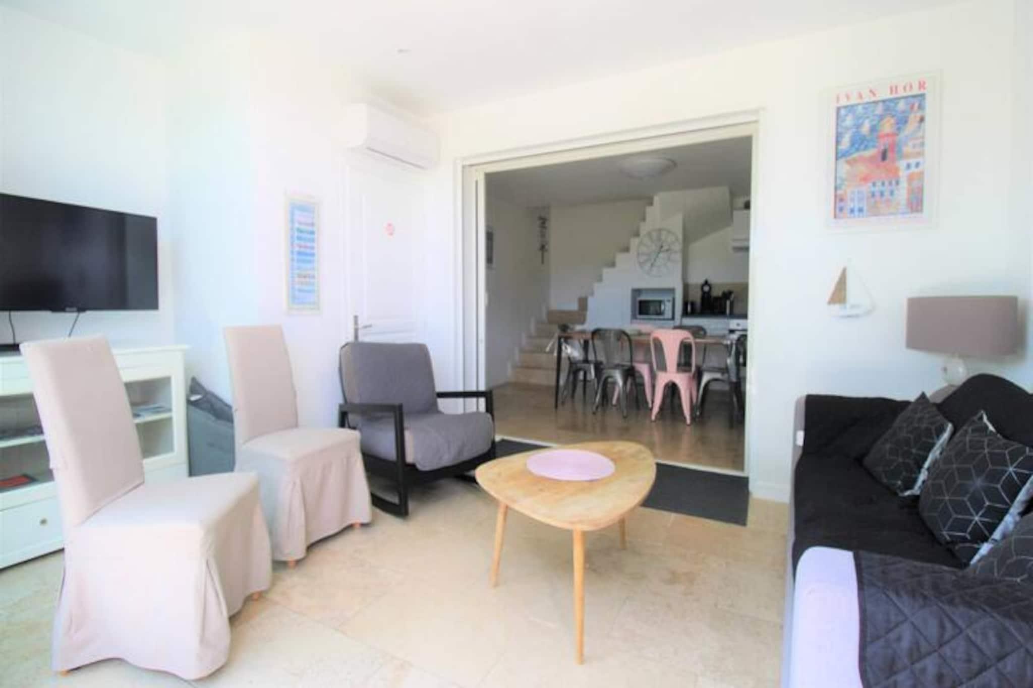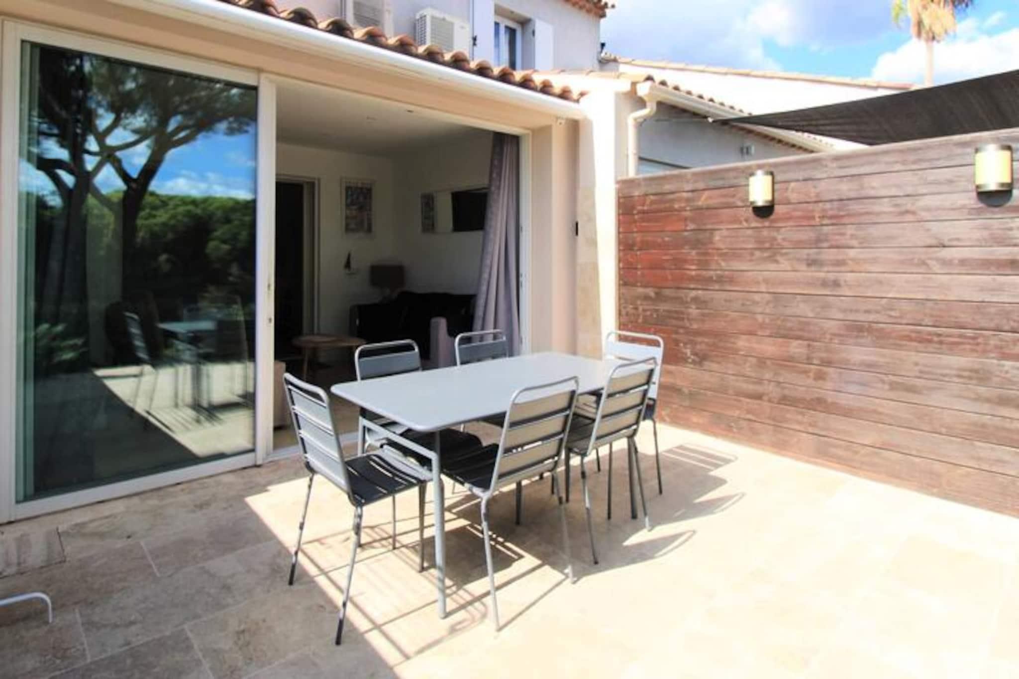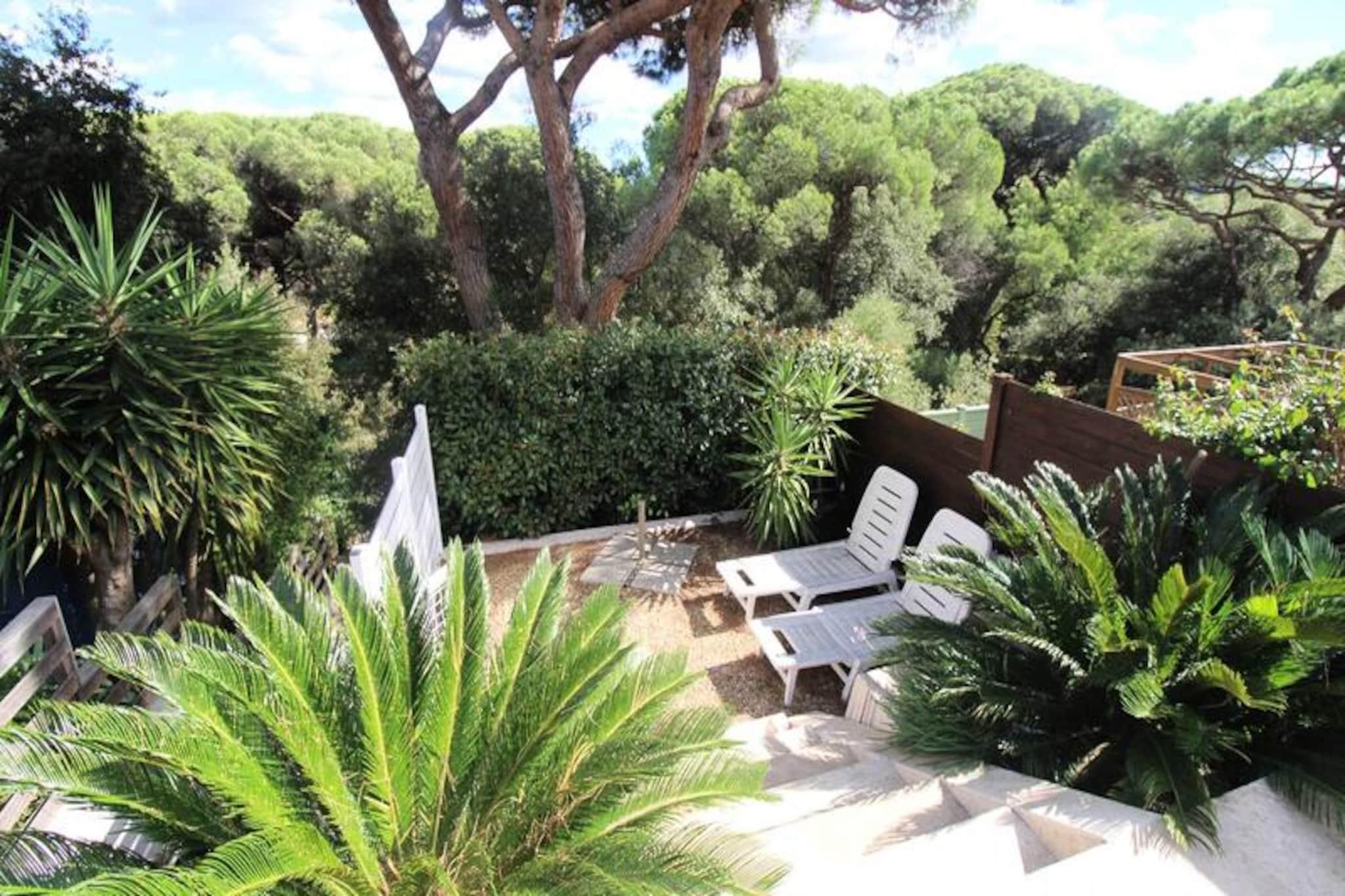 Flugt til et fredfyldt feriehus beliggende i hjertet af en prestigefyldt bolig omgivet af en frodig fyrreskov. Denne fuldstændig renoverede T3-mazet tilbyder et hyggeligt tilflugtssted med en dobbeltseng i hovedsoveværelset, to enkeltsenge i et skrånende overværelse og en sovesofa i stueetagen. Denne ejendom er perfekt egnet til familier eller grupper af venner og tilbyder et kæledyrsfrit og roligt miljø. Gæsterne kan nyde to fælles swimmingpools, en tennisbane og en privat terrasse med havemøbler, ideel til udendørs afslapning. Beliggende kun 8 km fra den pulserende by Saint-Tropez og 11 km fra det charmerende Sainte-Maxime, giver dette feriehus nem adgang til uberørte strande kun 3 km væk. Udforsk nærliggende caféer, lokale markeder og butikker, bekvemt placeret inden for 1,5 km, og sikrer, at du har alt, hvad du behøver for et mindeværdigt ophold. Området byder på masser af muligheder for sightseeing, spisning og udendørs eventyr. Ejendommen er designet til din komfort og inkluderer et fuldt udstyret amerikansk køkken med moderne apparater såsom induktionskomfur, ovn, mikroovn og opvaskemaskine. Gæsterne kan også drage fordel af faciliteter såsom gratis Wi-Fi, aircondition, fladskærms-tv og vaskemaskine. Et brusekabine og mørklægningsgardiner sikrer afslappende morgener, mens en privat parkeringsplads tilføjer bekvemmeligheden.
