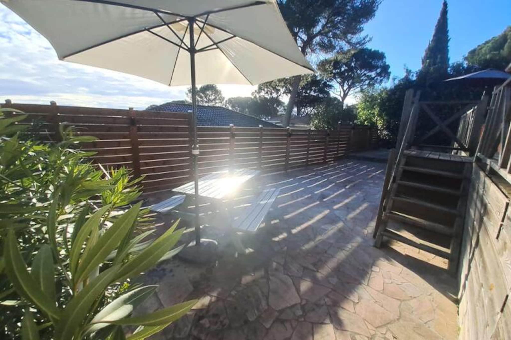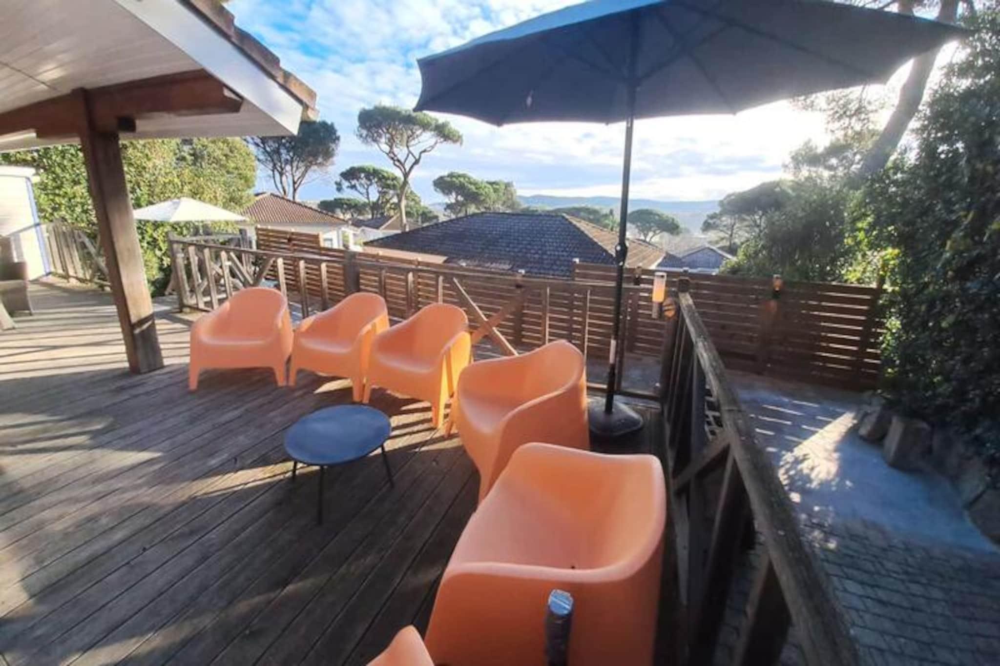 I hjertet af en fredfyldt 15 hektar stor skovbevokset ejendom, kun 7 km fra Saint-Tropez' glamour, ligger Parc Oasis – et roligt tilflugtssted, der tilbyder den perfekte balance mellem afslapning og Riviera-charme. Omgivet af frodigt grønt og middelhavsflora inviterer denne bolig dig til at slappe af og nyde solen, mens du nyder den fantastiske lagunelignende swimmingpool. Uanset om du søger en fredelig flugt eller en base for at udforske den pulserende Côte d'Azur, er Parc Oasis din ideelle feriedestination. Denne charmerende træhytte på 66 m², designet til komfortabelt at rumme op til seks gæster, kombinerer rustik charme med moderne bekvemmeligheder. Den airconditionerede stue giver en kølig pause efter en dag i solen, mens det fuldt udstyrede åbne køkken giver mulighed for dejlige hjemmelavede måltider. Hytten har et soveværelse med en dobbeltseng, et andet soveværelse med to enkeltsenge og et ekstra soveværelse med to enkeltsenge. To badeværelser sikrer rigelig plads og privatliv for alle gæster. Gå ud på terrassen, der er møbleret til din komfort, og nyd den fredelige atmosfære i denne unikke ejendom. Faciliteterne inkluderer opvaskemaskine, vaskemaskine, ovn, mikrobølgeovn, komfur, køleskab med fryser, kaffemaskine, elkedel, brødrister, tv, aircondition og Wi-Fi. Parkering er bekvemt placeret foran hytten. Beliggenheden er perfekt til at udforske regionens højdepunkter: De ikoniske strande ved den franske riviera ligger kun 3 km væk, mens de charmerende byer Saint-Tropez (7 km) og Sainte-Maxime (10 km) er inden for rækkevidde. Butikker og lokale markeder ligger kun 6 km væk, hvilket gør det nemt at fylde op med friske råvarer og regionale delikatesser. Uanset om du slapper af ved poolen, slentrer gennem ejendommens frodige grund eller udforsker de pulserende kystbyer i nærheden, tilbyder Parc Oasis en uforglemmelig flugt til Côte d'Azurs skønhed og elegance.