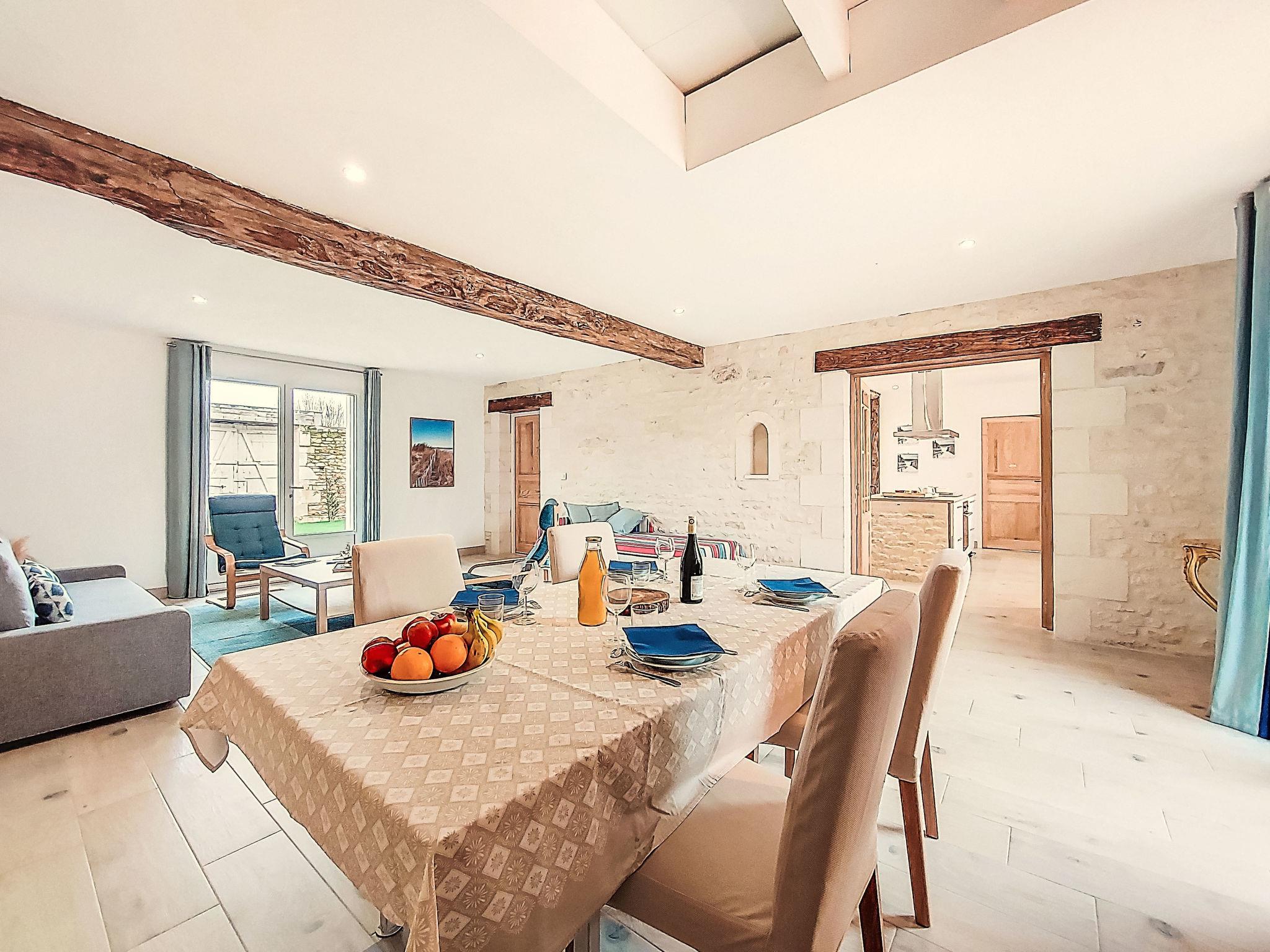 "Ile d'Aix", 2-room house 90 m2. Object suitable for 2 adults + 2 children. Fully renovated in 2024, very beautiful furnishings: living/dining room with 1 bed (90 cm, length 190 cm), 1 sofabed (160 cm, length 200 cm). Exit to the garden. 1 large room with 1 double bed (160 cm, length 200 cm), shower/WC and TV. Kitchen (oven, dishwasher, 3 ceramic glass hob hotplates, toaster, kettle, microwave, freezer, electric coffee machine, Capsules for coffee machine (SENSEO) extra, cooking island). Electric heating. Terrace furniture, barbecue (portable), deck chairs (2). Facilities: washing machine, iron, children's high chair, baby cot, hair dryer. Internet (WiFi, free). Parking. Please note: non-smoking house. Smoke alarm. Bed layout is flexible. There are more sleeping options available than the maximum number of people allowed which may, however, not be exceeded. Offer by a commercial proprietor according to Art. 155, IV, CGI