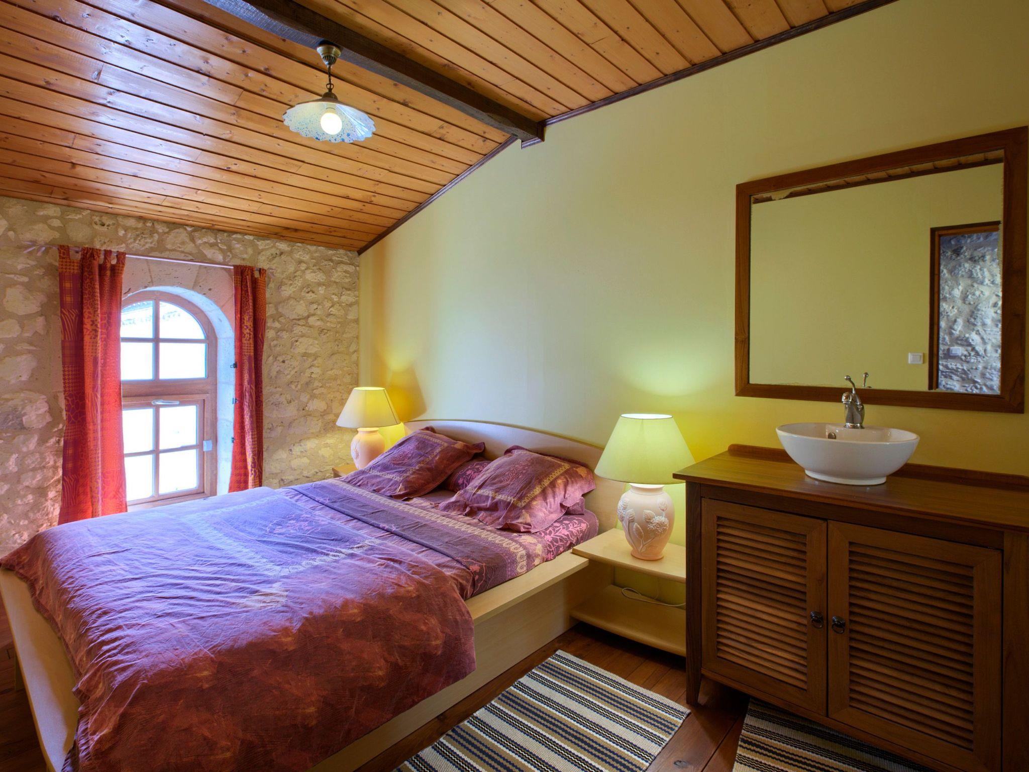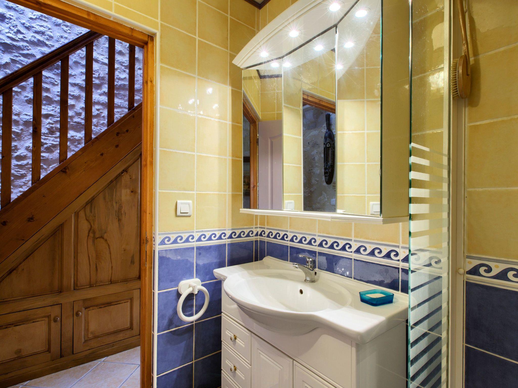 The stone house, renovated in 2013, sleeps up to five people on approximately 65 m² and two floors. On the ground floor there is an air-conditioned living room with a sitting area and a TV with digital television, a dining area and an open-plan kitchen. It is fully equipped with a gas cooker, oven, dishwasher, fridge with freezer compartment, microwave, toaster, kettle and coffee machine. There is also a utility room with washing machine and tumble dryer. On the first floor there are three bedrooms, two with a double bed (160 x 200 and 140 x 200 cm) each, one with a single bed (90 x 190 cm) and a small study. The bathroom has a shower, washbasin and toilet. All rooms are heated with electric radiators. Wireless internet is available.