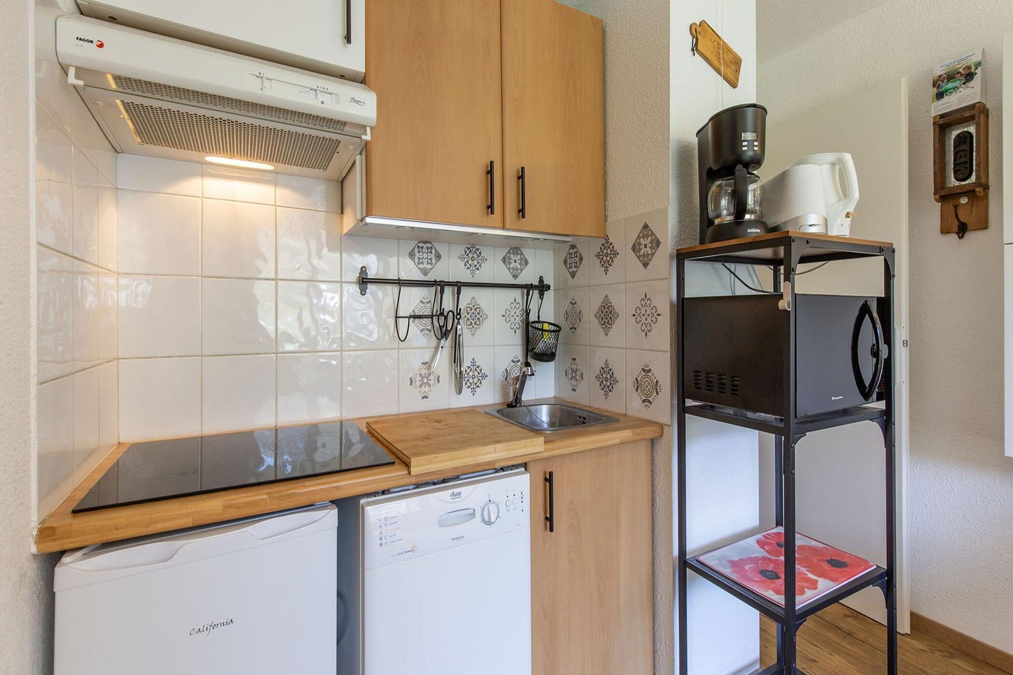 Højt oppe i bjergene ligger denne charmerende 26 m² store lejlighed på tredje sal med elevator, perfekt til en hyggelig bjergferie. Den er designet til at rumme op til 4 gæster og kombinerer komfort, varme og praktisk funktionalitet, hvilket gør den ideel for par, familier eller venner, der ønsker at nyde en forfriskende alpin ferie omgivet af betagende natur. Indvendigt tilbyder studiet alt, hvad du behøver for et behageligt ophold. Den lyse stue har en sovesofa til to personer, mens kabinen med køjesenge er perfekt til børn eller ekstra gæster. Træd ud på altanen for at nyde den friske bjergluft og den smukke udsigt, mens du nyder din morgenkaffe. Det fuldt udstyrede køkken har køleskab, mikroovn, opvaskemaskine, raclette-maskine, kaffemaskine, brødrister og kedel – perfekt til at tilberede solide måltider efter en dag på pisterne. Badeværelset har badekar, håndklædetørrer og separat toilet. Der er også WiFi, et skiskab og alt nødvendigt sengetøj. Gæsterne har adgang til et vaskerum og en pool i den tilstødende bolig i sommermånederne, og der er privat parkering på stedet (afhængigt af tilgængelighed). Kun 500 meter fra skiløjperne og det livlige centrum ligger alt, hvad du har brug for, lige ved hånden – butikker, restauranter og hyggelige steder at slappe af efter en dag i det fri. Om vinteren kan du nyde skiløb, snowboarding eller kælkning lige uden for døren. Når sneen smelter, forvandles regionen til et paradis for vandre-, mountainbike- og paraglidingentusiaster. Og for at smage på det lokale køkken serverer de nærliggende bjergrestauranter lækker raclette, fondue og regionale specialiteter, der perfekt indfanger ånden i Pyrenæerne.