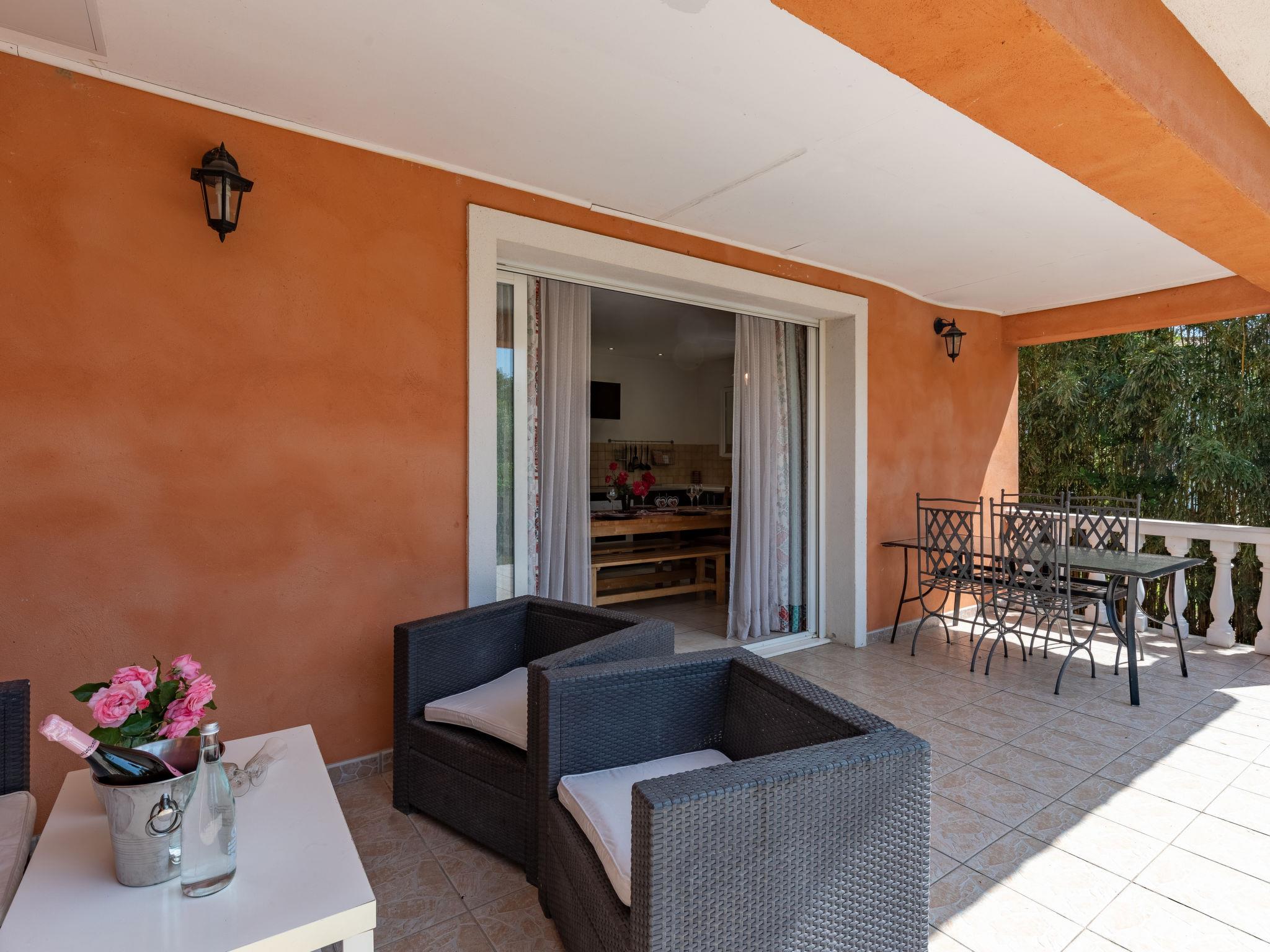 "Gelormini", 4-room terraced house 100 m2. Practical and beautiful furnishings: living/dining room with dining table and satellite TV. Exit to the terrace. 1 room with 1 french bed (160 cm), shower. 1 room with 1 french bed. 1 room with 1 x 2 bunk beds, 1 sleeping facility. Open kitchen (4 hot plates, oven, dishwasher, toaster, kettle, microwave, electric coffee machine). Bath/WC, sep. WC. Electric heating, air-conditioning. Terrace roofed. Terrace furniture, barbecue. View of the swimming pool and the garden. Facilities: washing machine, children's high chair. Internet (WiFi, free). Please note: non-smokers only.