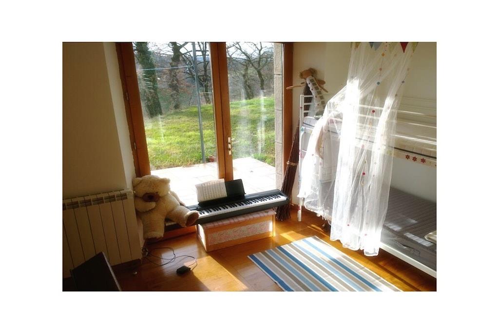 Landstedet ligger alene på en bakke, omgivet af enge og skove. Det er hyggeligt og utroligt smukt, da det er blevet restaureret med stor sans for detaljer. Detaljer som stenmurene og de smukke trægulve giver huset en landlig og hyggelig atmosfære. 2 hektar jord omkring huset er lige til jer, et spabad midt på en eng inviterer jer til at køle af, eller hvad med at tælle stjerneskud i det varme vand om aftenen? Om morgenen lægges der friske æg på grunden. Til børnene er der cykler, gynger og reb at klatre i. Flere vandrestier starter lige uden for døren, som kan udforskes til fods eller på cykel. Landstedet er dejligt roligt og beliggende i en blind vej. Det ligger lige uden for landsbyen La Salesse (14 indbyggere, 300 meter fra landstedet), som I nemt kan nå til fods.