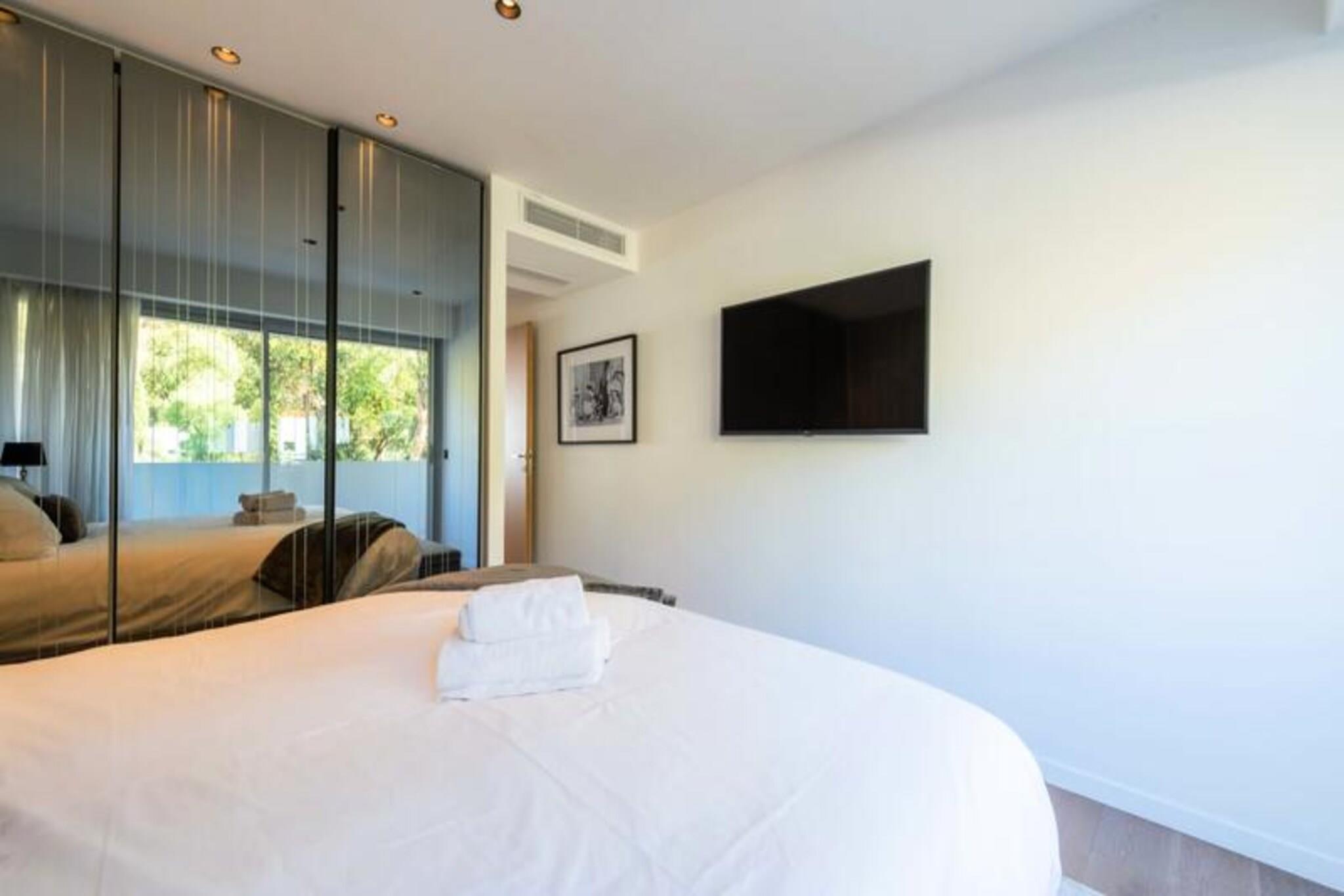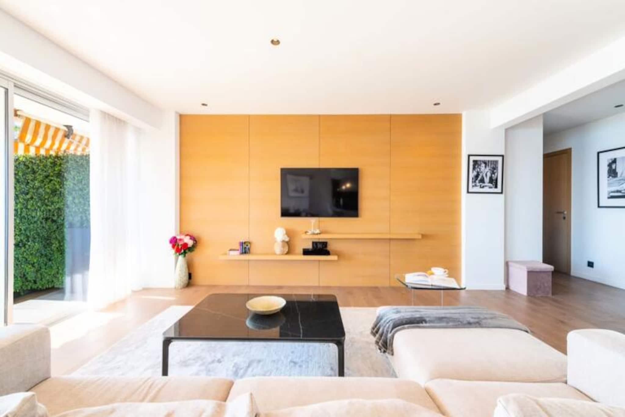 Forestil dig at vågne op til den blide lyd af bølger og den gyldne glød fra middelhavssolen, der strømmer ind gennem dine vinduer. Denne elegante lejlighed, der ligger på tredje sal i en prestigefyldt residens, tilbyder et roligt tilflugtssted med betagende havudsigt og direkte adgang til den franske rivieras uberørte strande. Omgivet af frodige, skovklædte grunde kombinerer denne ejendom ro med glamouren ved Côte d'Azur, kun få øjeblikke fra Cannes og dens ikoniske attraktioner. Træd indenfor og oplev et lyst, åbent opholdsrum, hvor moderne design møder tidløs elegance. Den sydvendte stue, udsmykket med træ-, sten- og læderdetaljer, flyder problemfrit over i et fuldt udstyret køkken og spiseplads. Franske døre fører til en rummelig terrasse, perfekt til udendørs spisning eller blot til at nyde panoramaudsigten over Middelhavet og residensens velplejede park. Lejligheden har tre luksuriøse soveværelser, hver med eget badeværelse med bruser og adgang til en sammenhængende balkon, hvilket sikrer privatliv og komfort for alle gæster. Moderne bekvemmeligheder såsom WiFi, smart-tv'er og reversibel aircondition forbedrer dit ophold. Selve residensen er en oase af luksus med swimmingpool, tennisbane og 24/7 sikkerhed. En privat sti fører direkte til en afsides strand, mens sandstrandene i Golfe-Juan kun ligger en kort køretur væk. Udforsk den pulserende Port Camille Rayon, nyd gourmetmad langs La Croisette, eller slentre i de charmerende gader i Le Suquet. For golfentusiaster er der baner i verdensklasse inden for rækkevidde. Uanset om du søger afslapning, eventyr eller en smag af den franske rivieras sofistikerede atmosfære, tilbyder denne lejlighed den perfekte base for en uforglemmelig ferie. Lad Middelhavets charme betage dig, mens du skaber minder for livet.